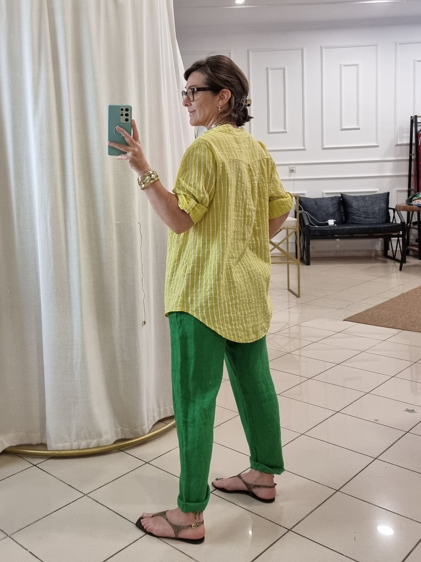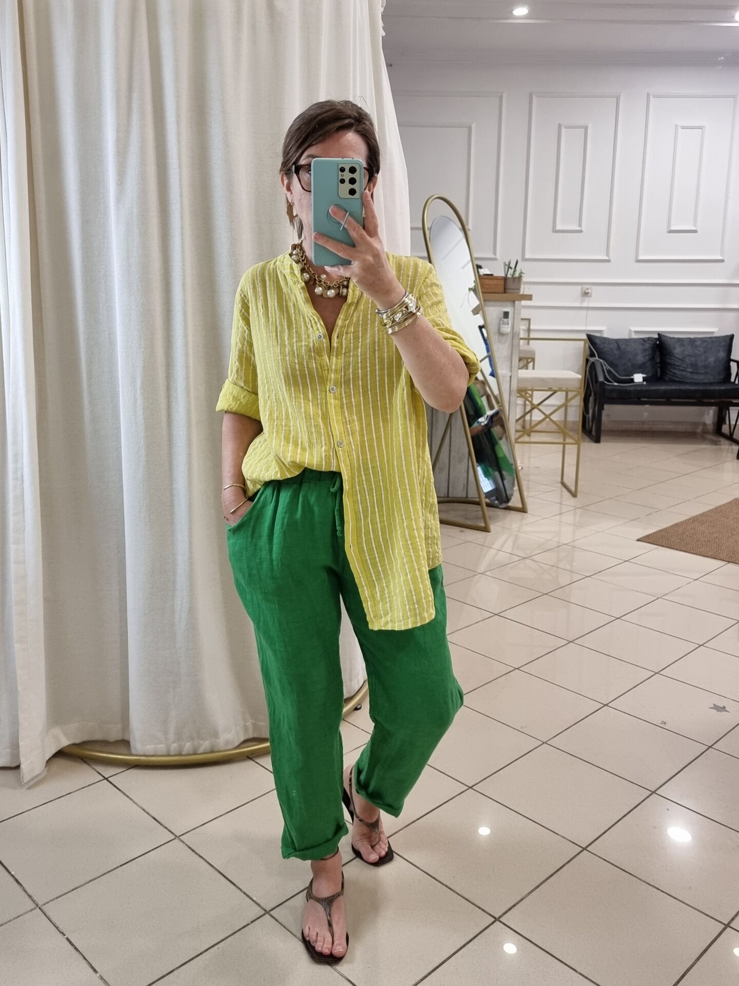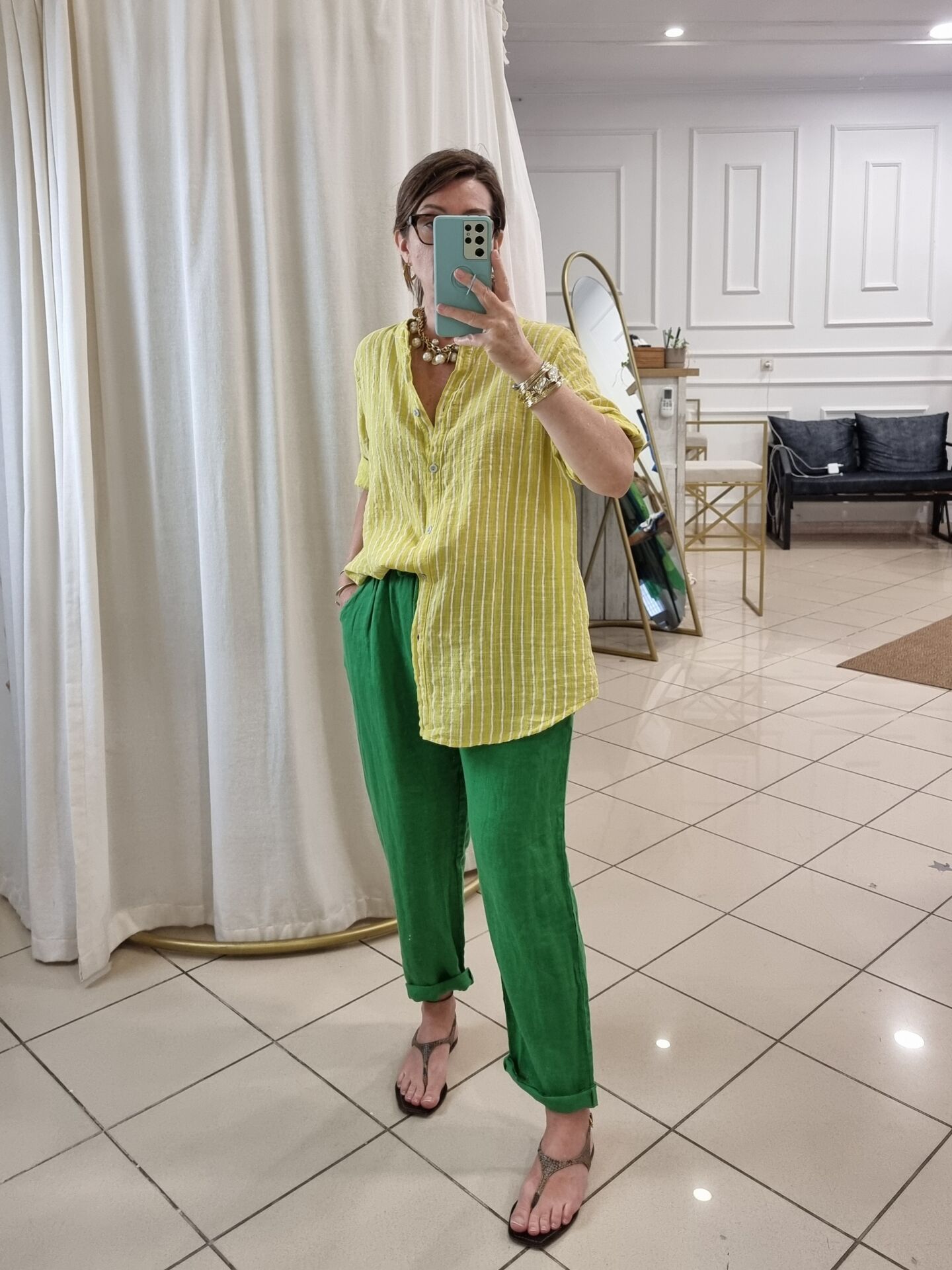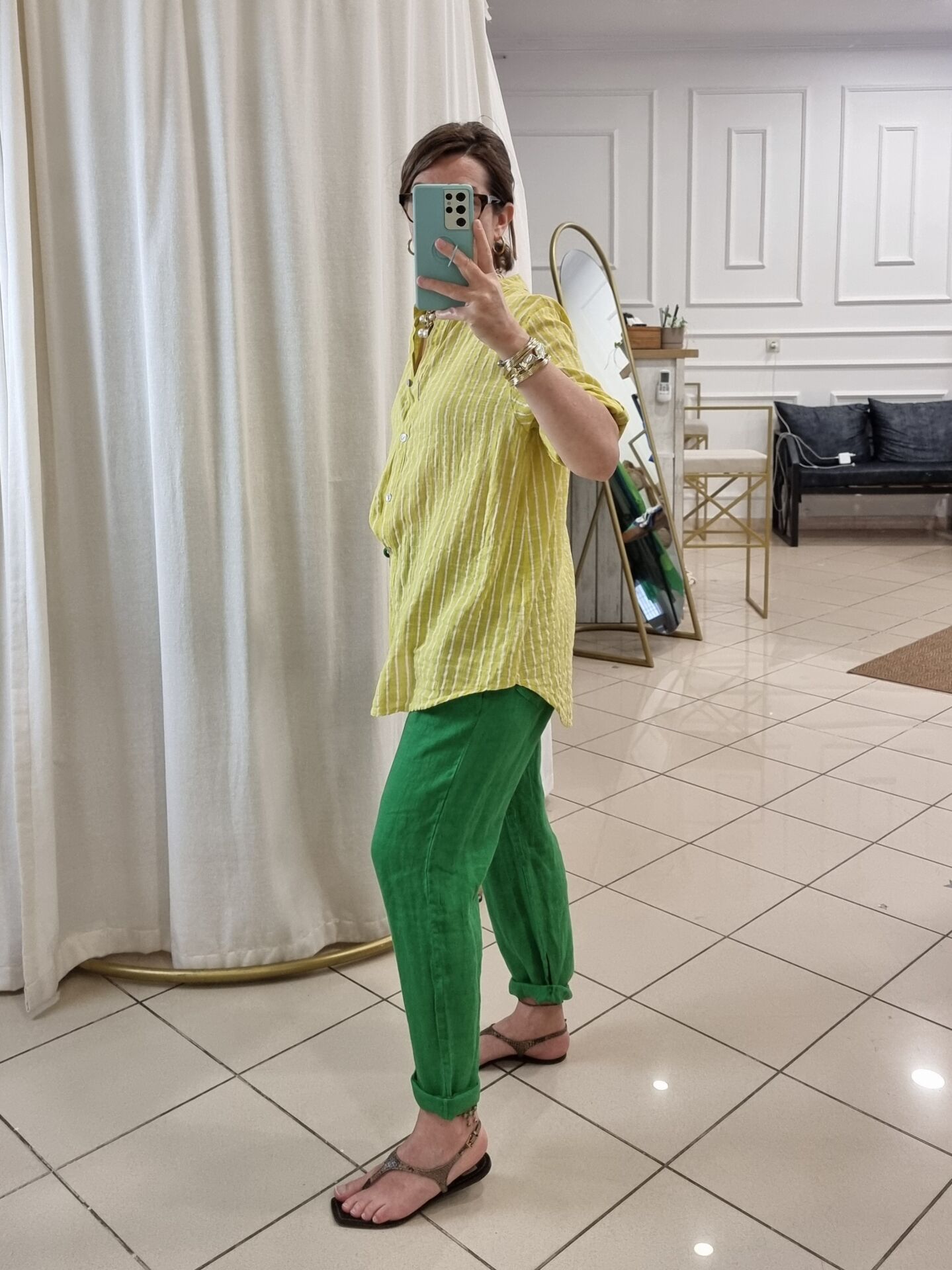 %100 keten kumaşıyla nefes alan yapıya sahip bu fıstık yeşili İtalyan pantolon, yaz aylarında aradığınız hafiflik ve ferahlığı bir arada sunuyor. Bol kesimi sayesinde rahat bir hareket alanı sağlarken, doğal tonuyla doğadan ilham alan bir stil vadediyor. Hem sade kombinlere enerji katmak hem de farklı renklerle dinamik görünümler oluşturmak isteyenler için zamansız bir parça. Beli lastikli yapısı gün boyu konfor sunarken, cepli tasarımı pratikliği elden bırakmıyor. Renk ve dokusuyla fark yaratmak isteyen kadınlar için ideal.
