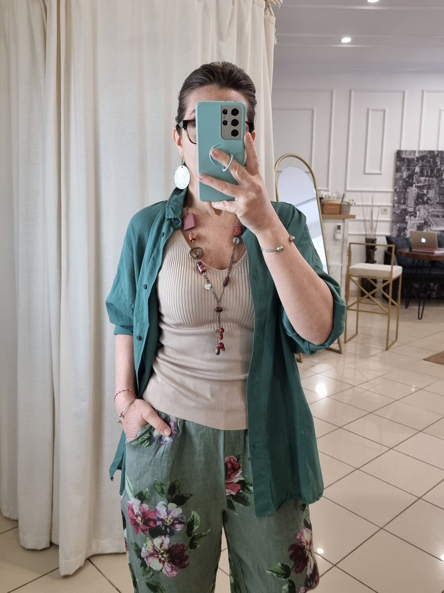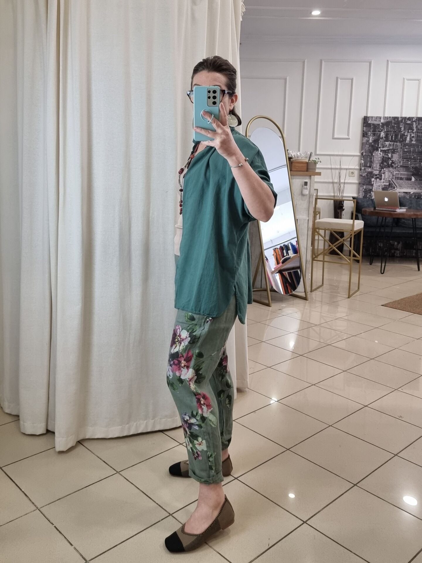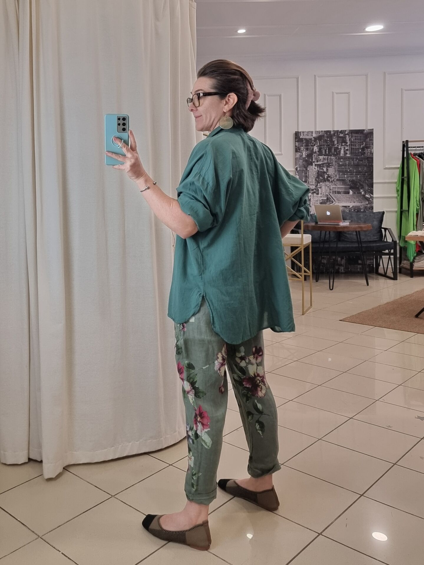 Doğal pamuklu yapısı sayesinde nefes alabilen bu gömlek, özellikle mevsim geçişlerinde ideal bir tercih sunar. Yumuşak ve hafif dokusu sayesinde gün boyu konfor sağlar. Bol kesimi, hareket özgürlüğü sunarken düz kesim eteği ve yan yırtmaç detayı ile hem salaş hem şık bir duruş yakalanır. Rahatlığı ve sade şıklığı bir arada sunan bu gömlek, hem klasik pantolonlarla hem de jean’lerle kolayca kombinlenebilir. Yeşilin zamansız tonu ise her gardıropta yer bulabilecek kadar uyumlu.