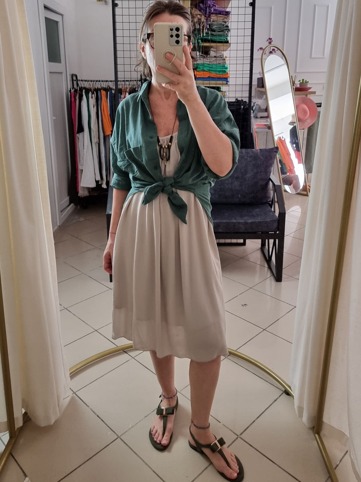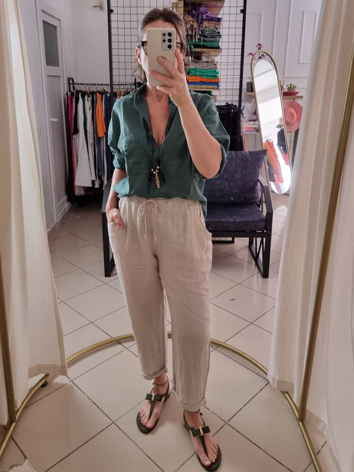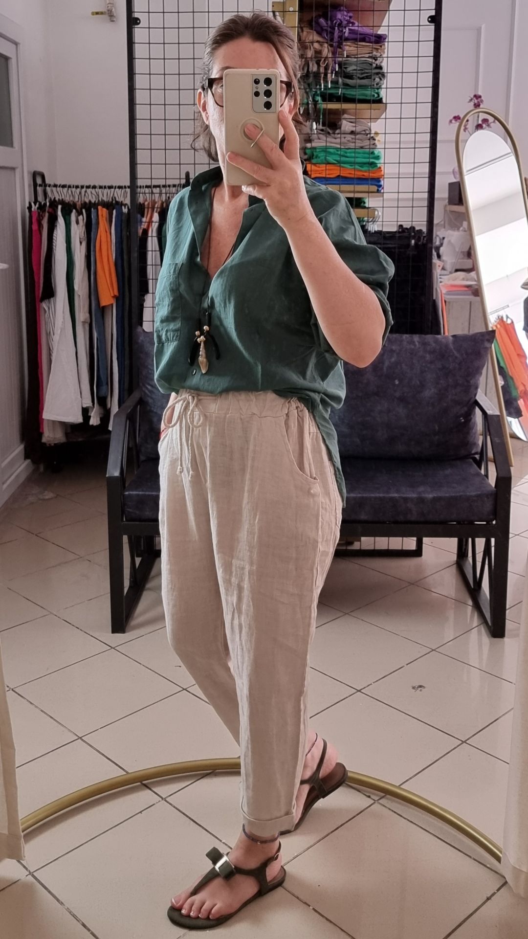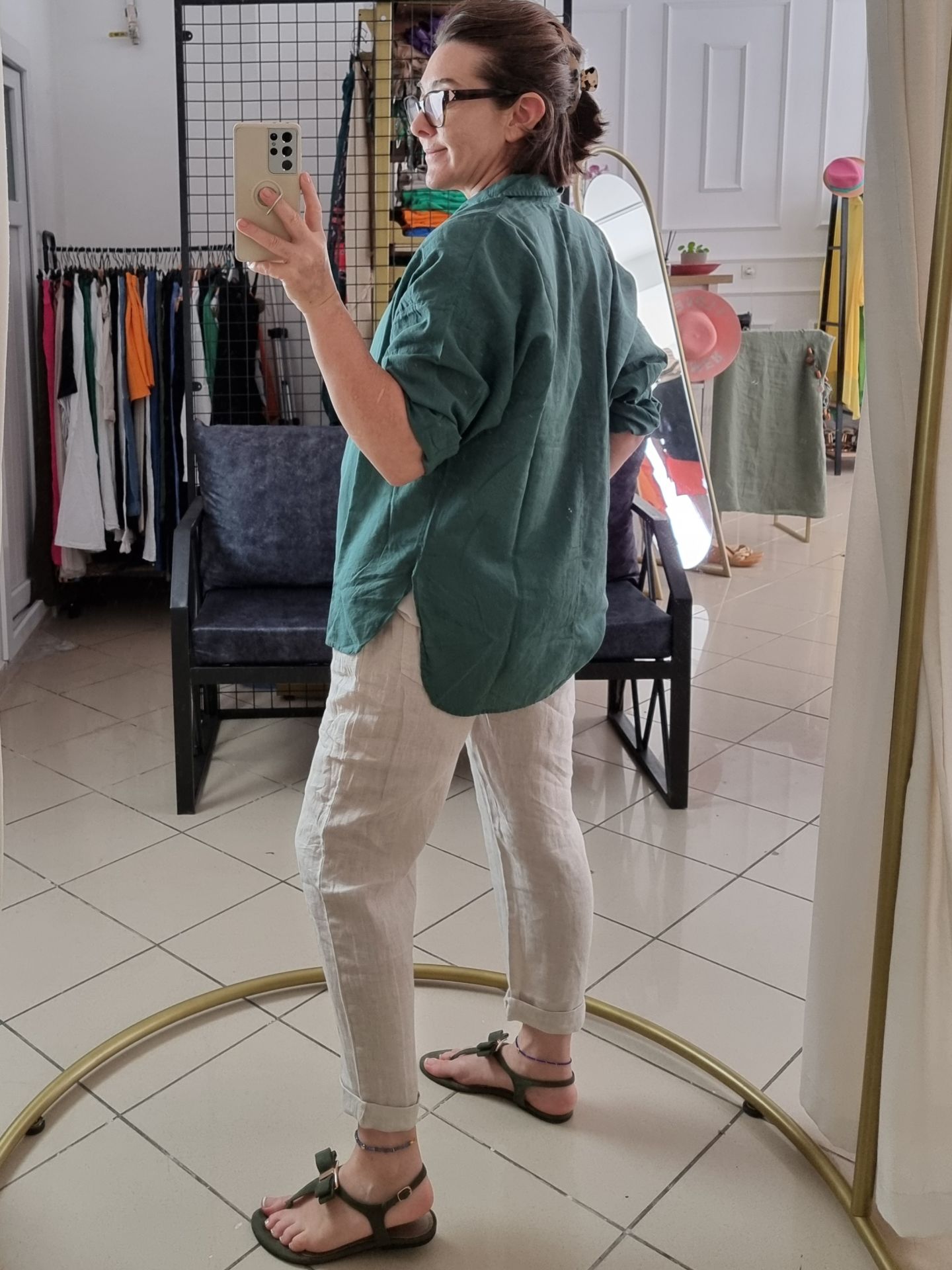 Doğal pamuklu yapısı sayesinde nefes alabilen bu gömlek, özellikle mevsim geçişlerinde ideal bir tercih sunar. Yumuşak ve hafif dokusu sayesinde gün boyu konfor sağlar. Bol kesimi, hareket özgürlüğü sunarken düz kesim eteği ve yan yırtmaç detayı ile hem salaş hem şık bir duruş yakalanır. Rahatlığı ve sade şıklığı bir arada sunan bu gömlek, hem klasik pantolonlarla hem de jean’lerle kolayca kombinlenebilir. Yeşilin zamansız tonu ise her gardıropta yer bulabilecek kadar uyumlu.