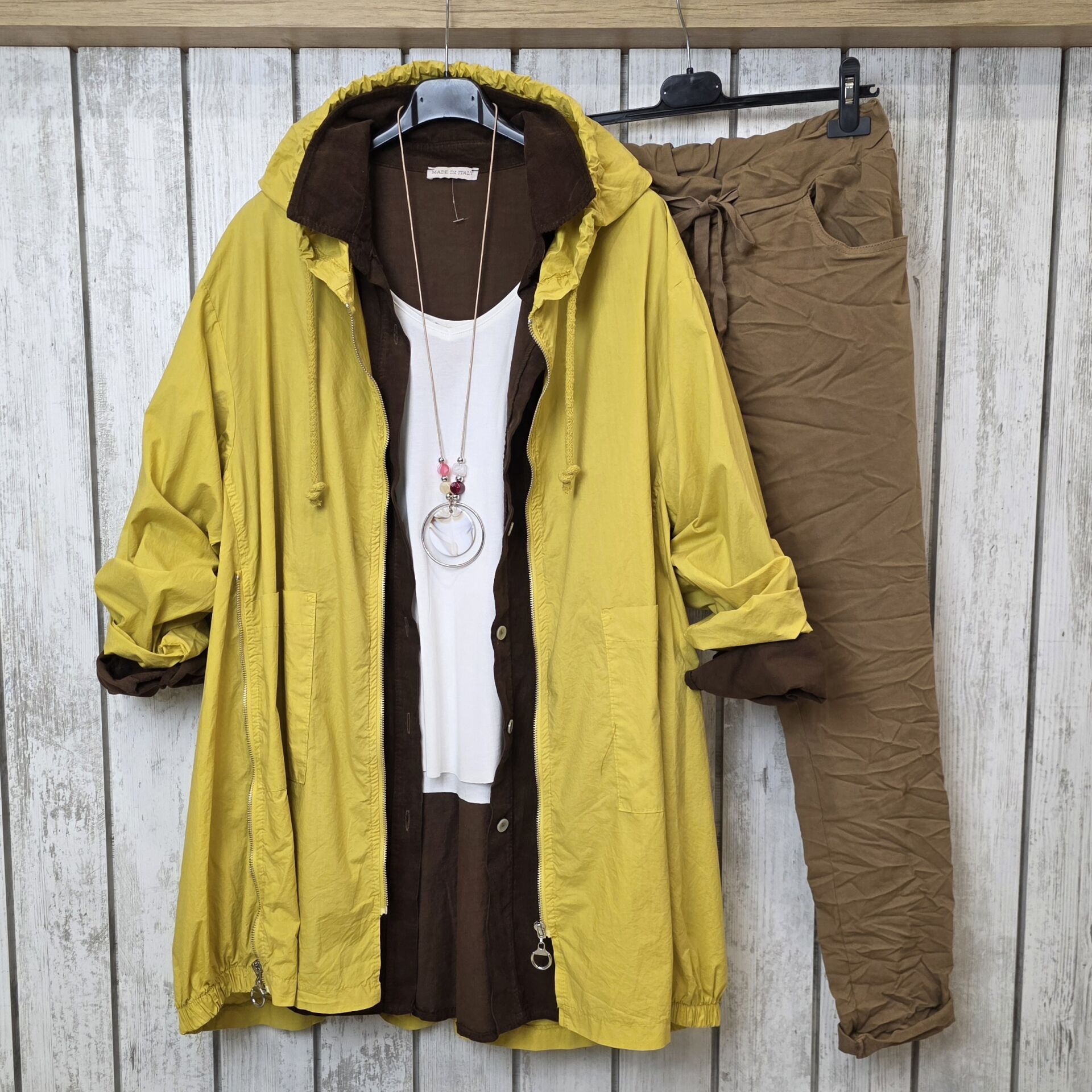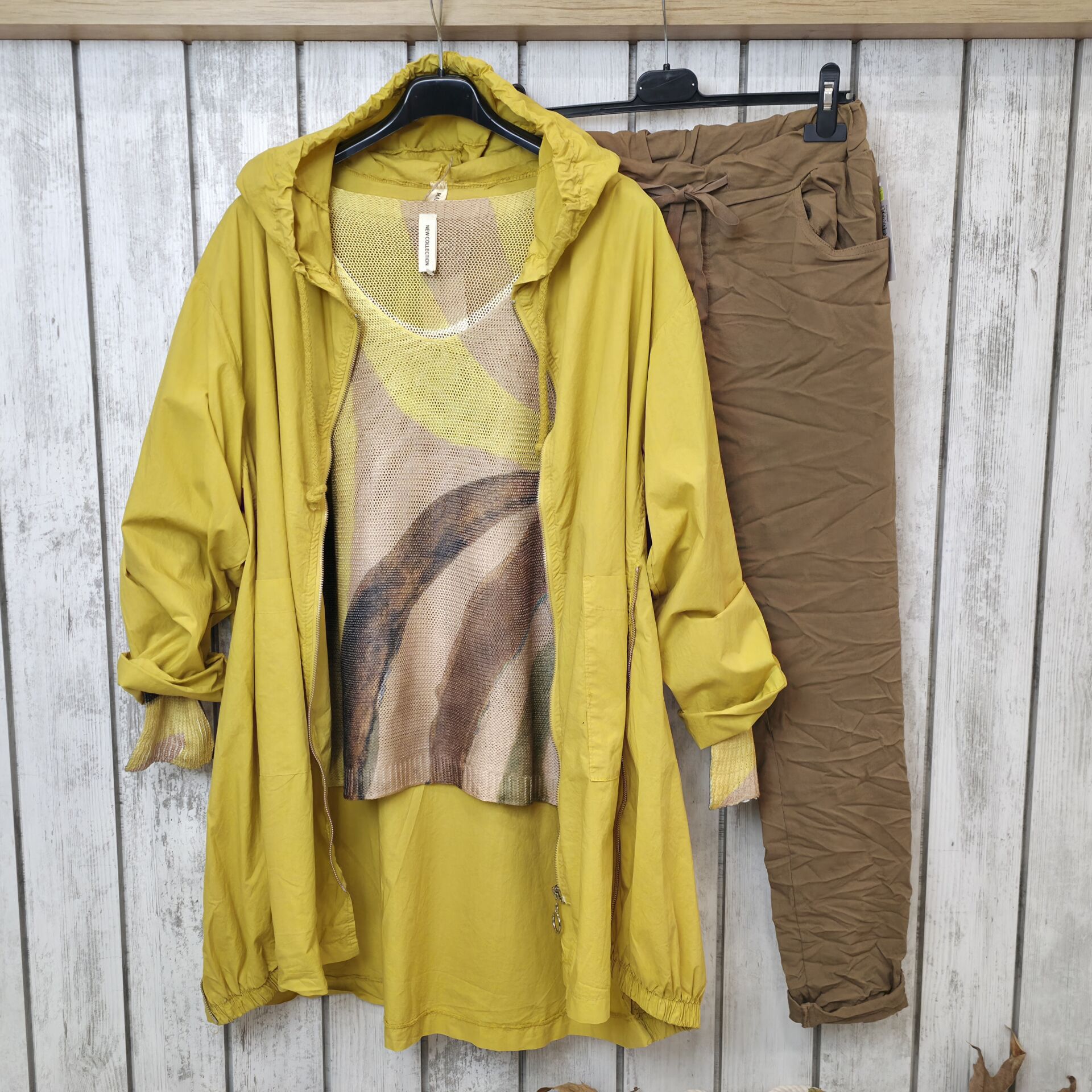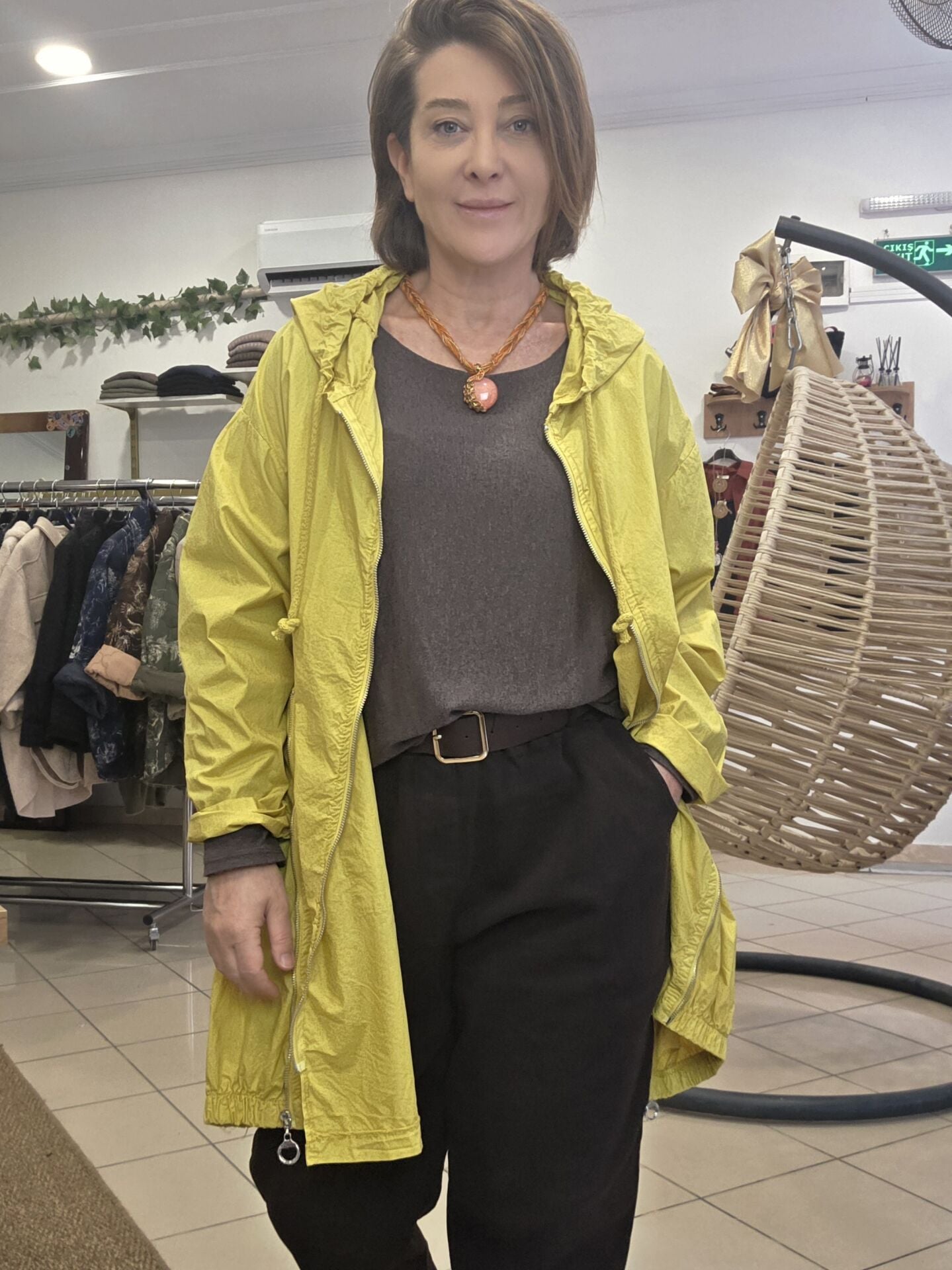 Trençkotumuz iki kalıp olarak kullanılabiliyor. Yan fermuarları açılınca genişliyor ve beden olarak 50/52 bedene kadar uyumlanıyor.