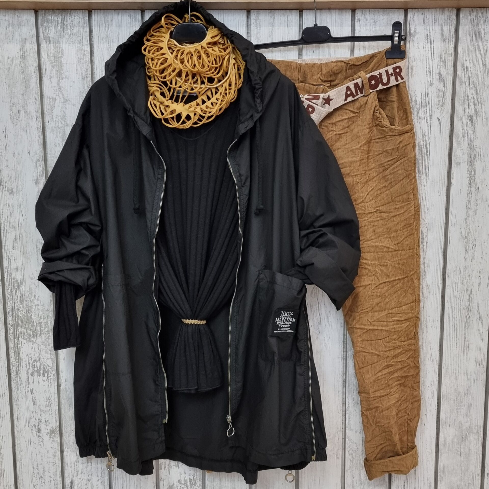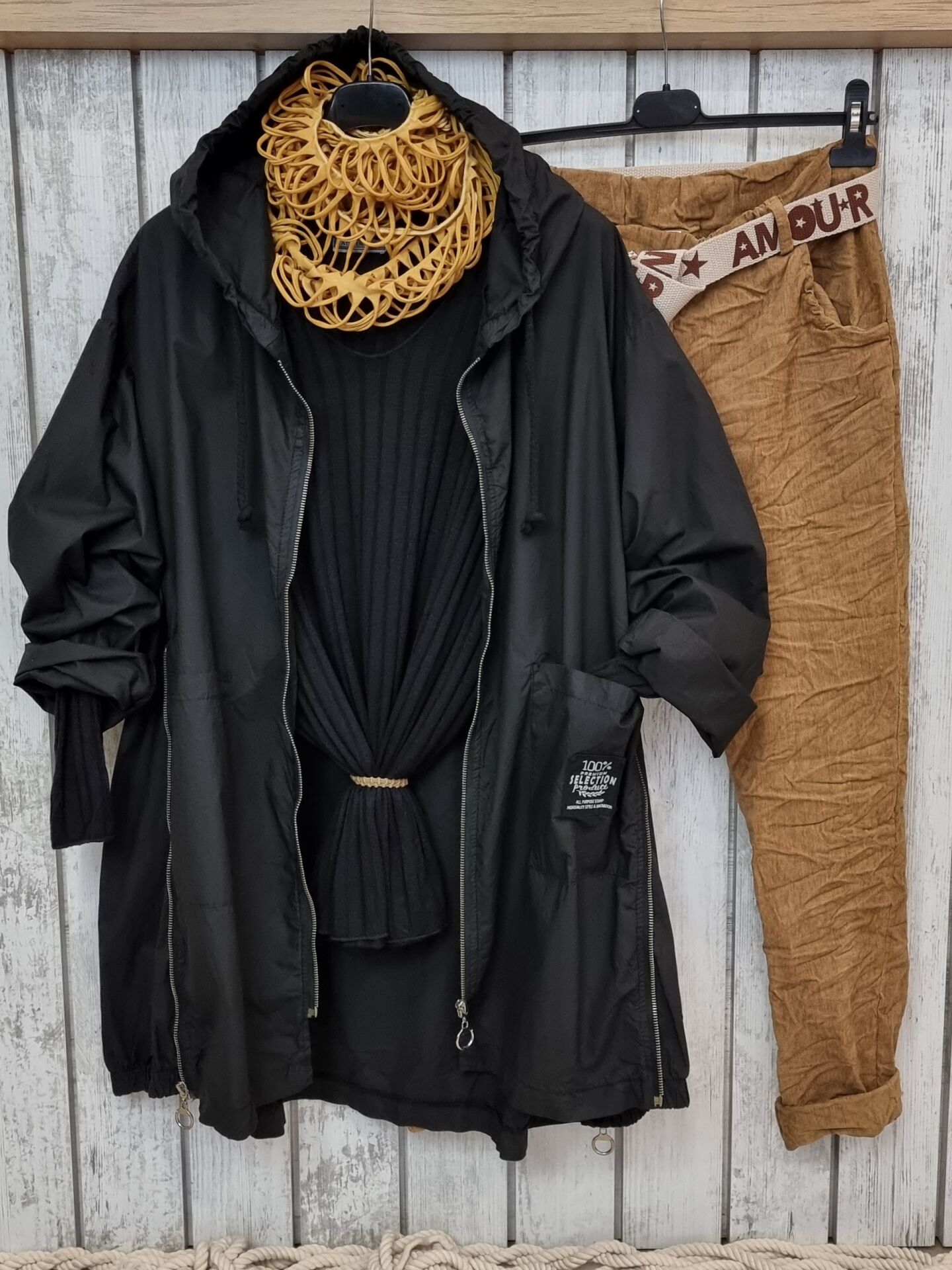 Trençkotumuz iki kalıp olarak kullanılabiliyor. Yan fermuarları açılınca genişliyor ve beden olarak 50/52 bedene kadar uyumlanıyor.