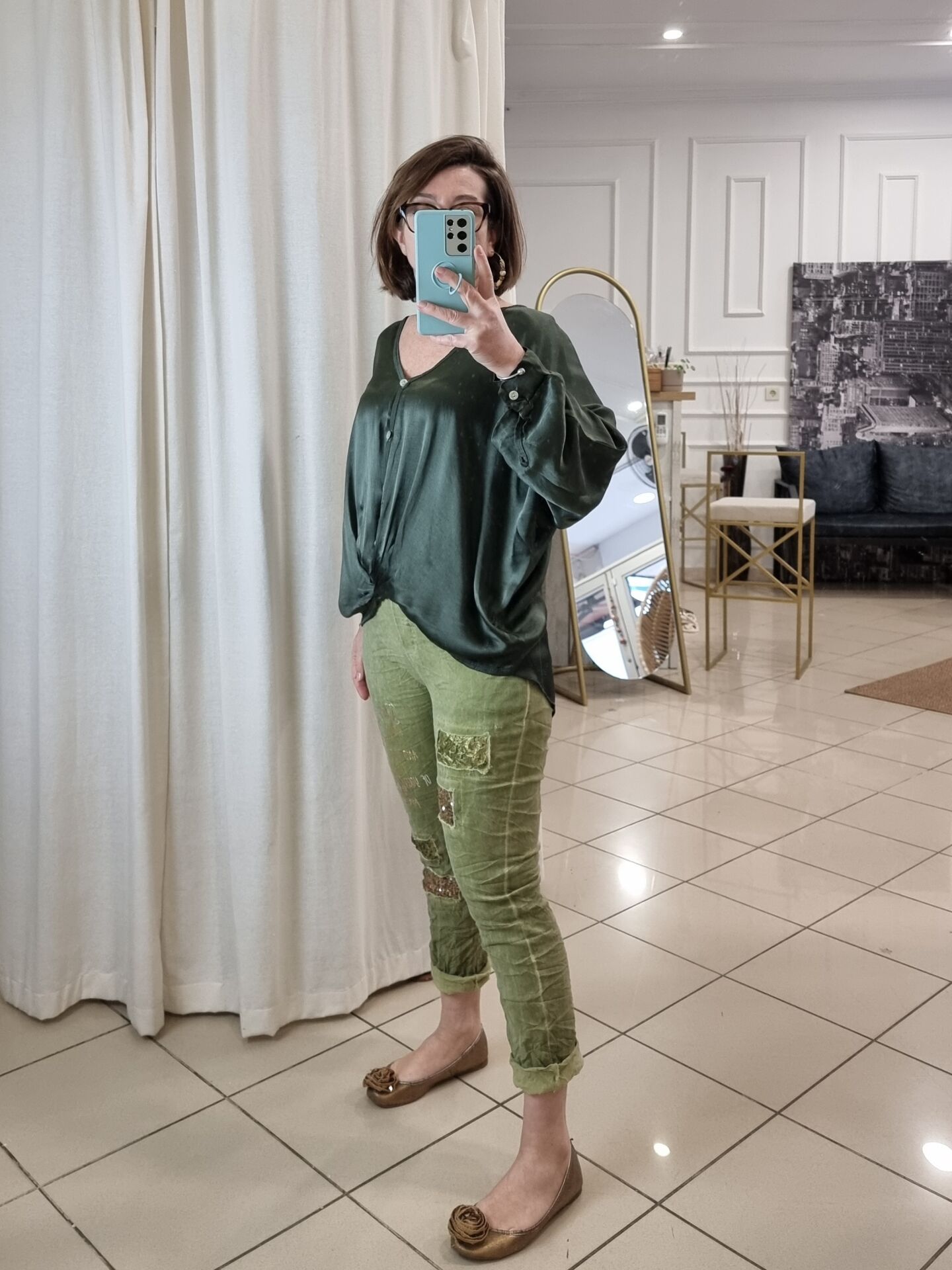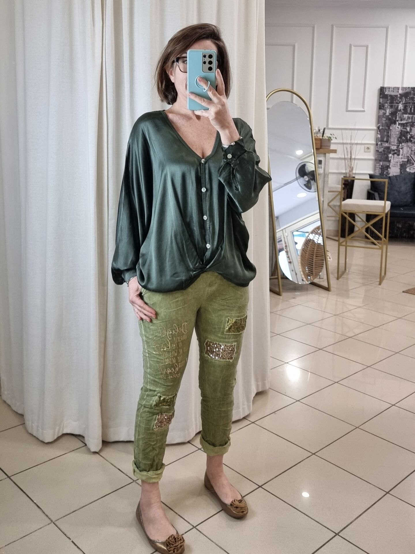 Kadınlar için özel olarak tasarlanan Saten Gömlek, yumuşak dokusu ve akıcı kesimiyle şıklığı konforla buluşturuyor. Haki rengi, zamansız bir tarz sunarak hem günlük hem de klasik kombinlerde mükemmel uyum sağlar. Hafif ve nefes alabilen yapıya sahip Gömlek, rahat kalıbı ile gün boyu konfor sunar ve stilinize sofistike bir dokunuş katar.