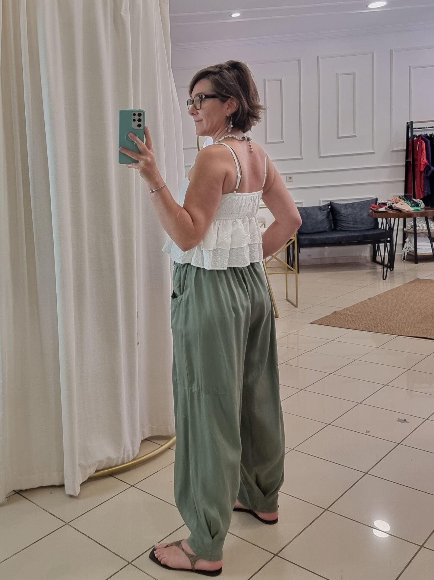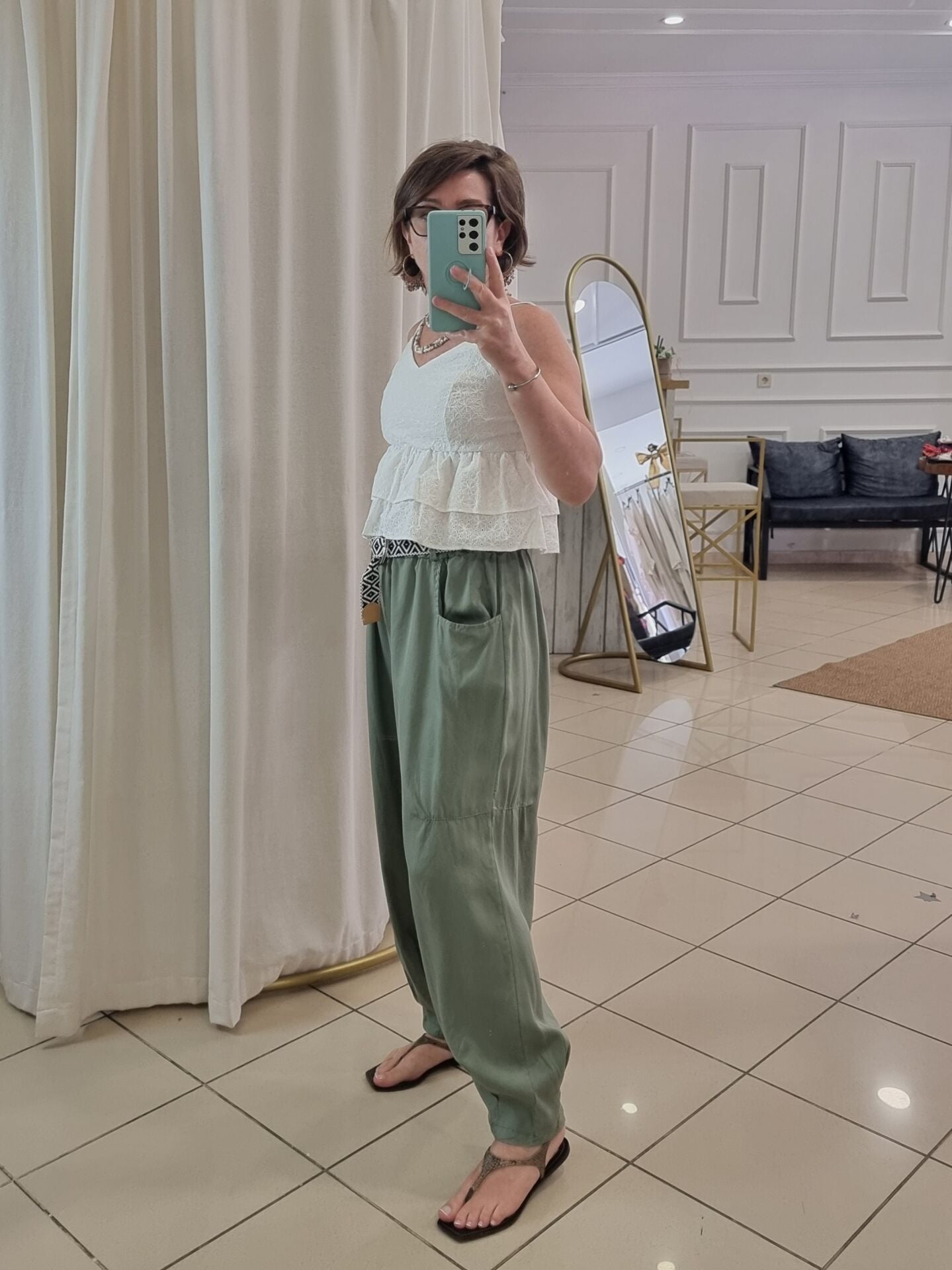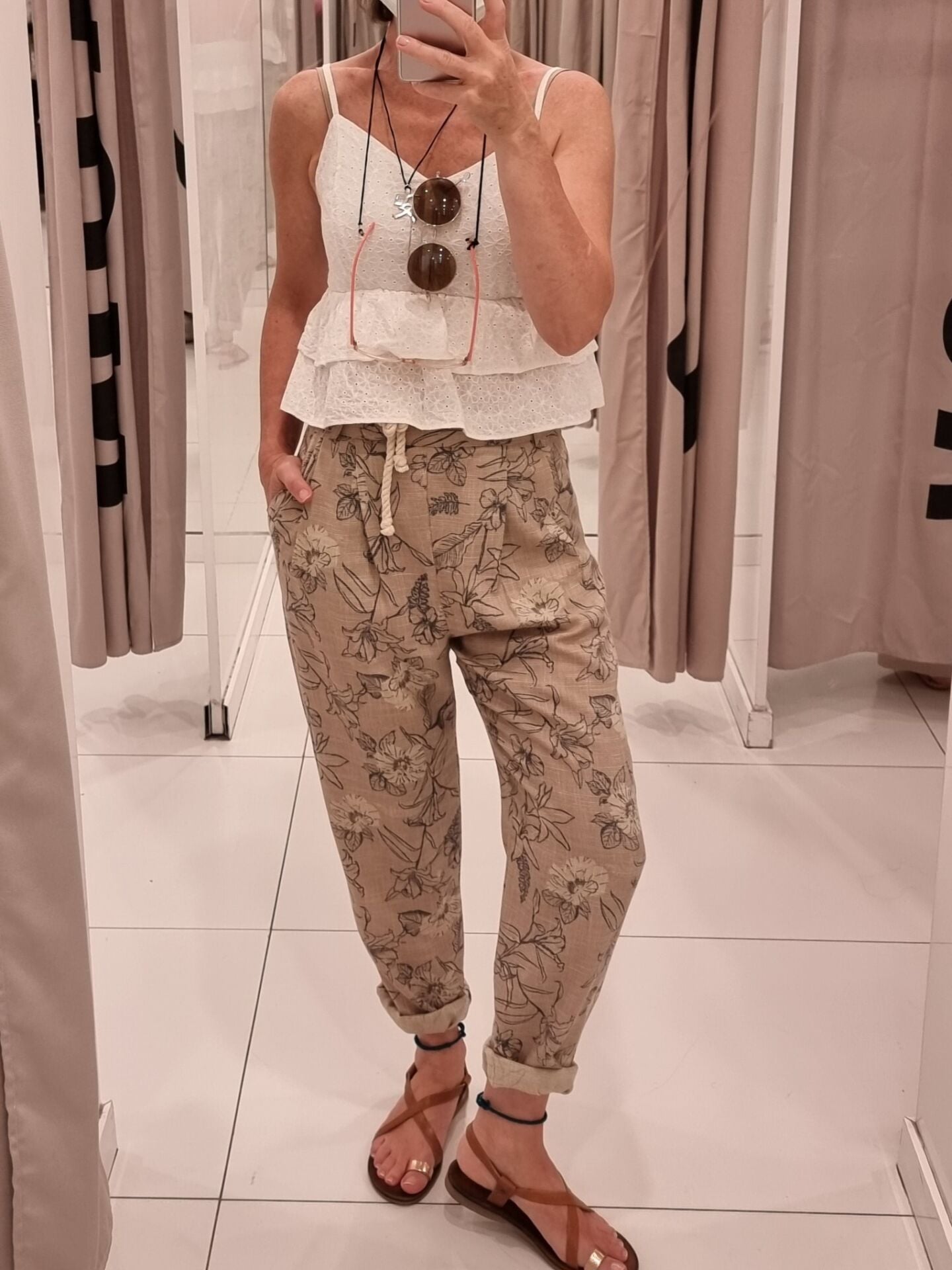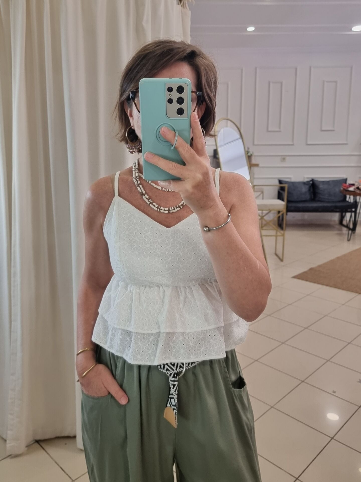 Askılı fistolu beyaz bluz.