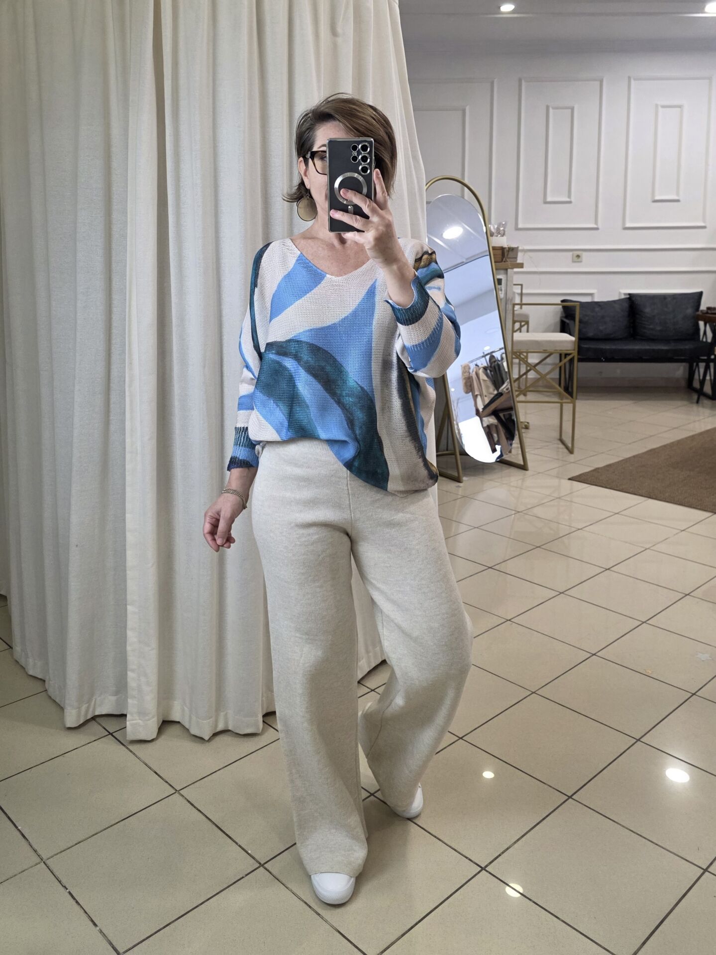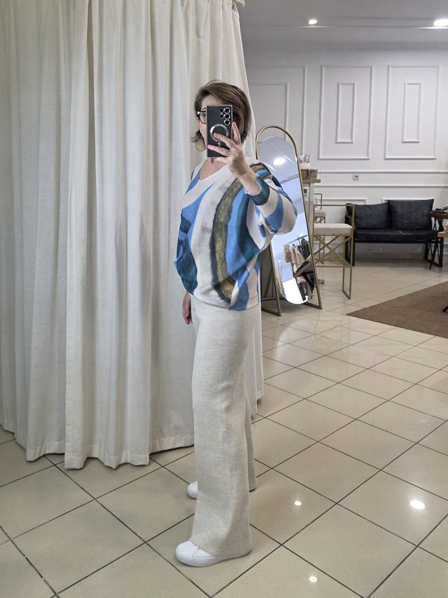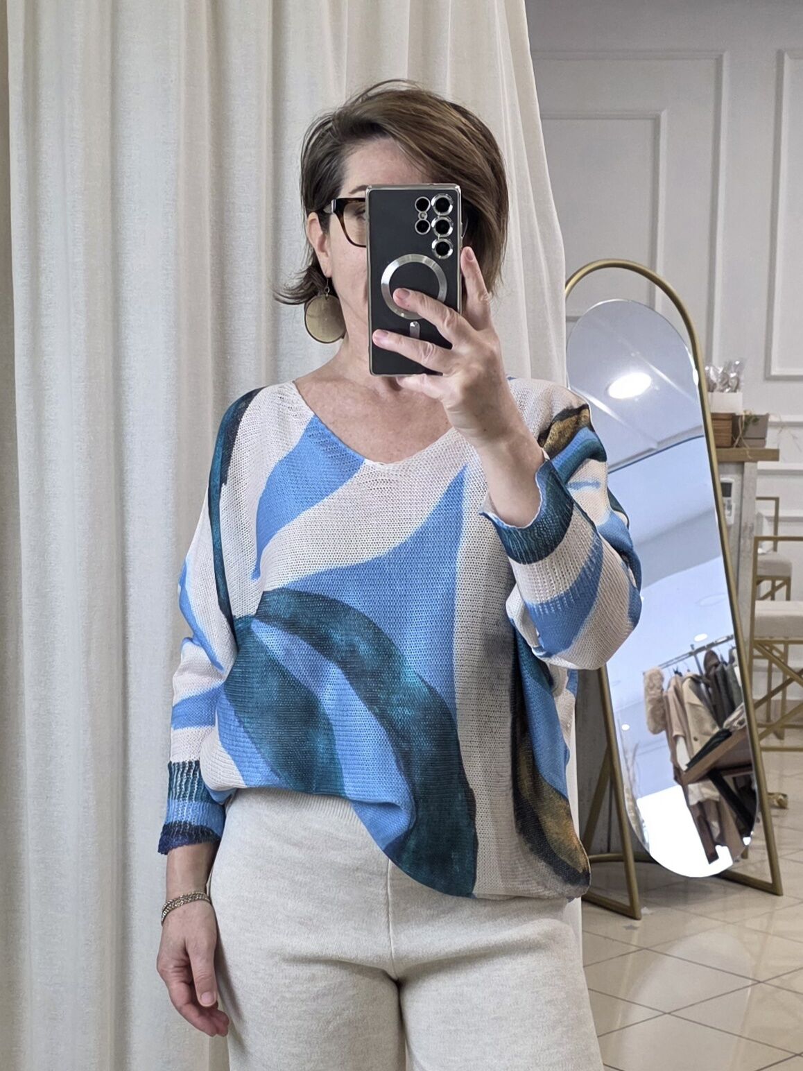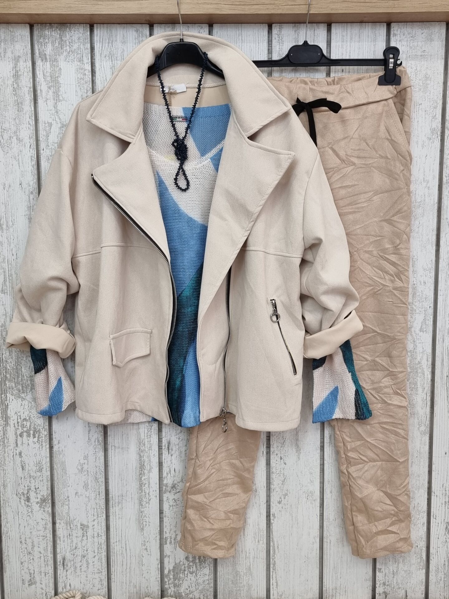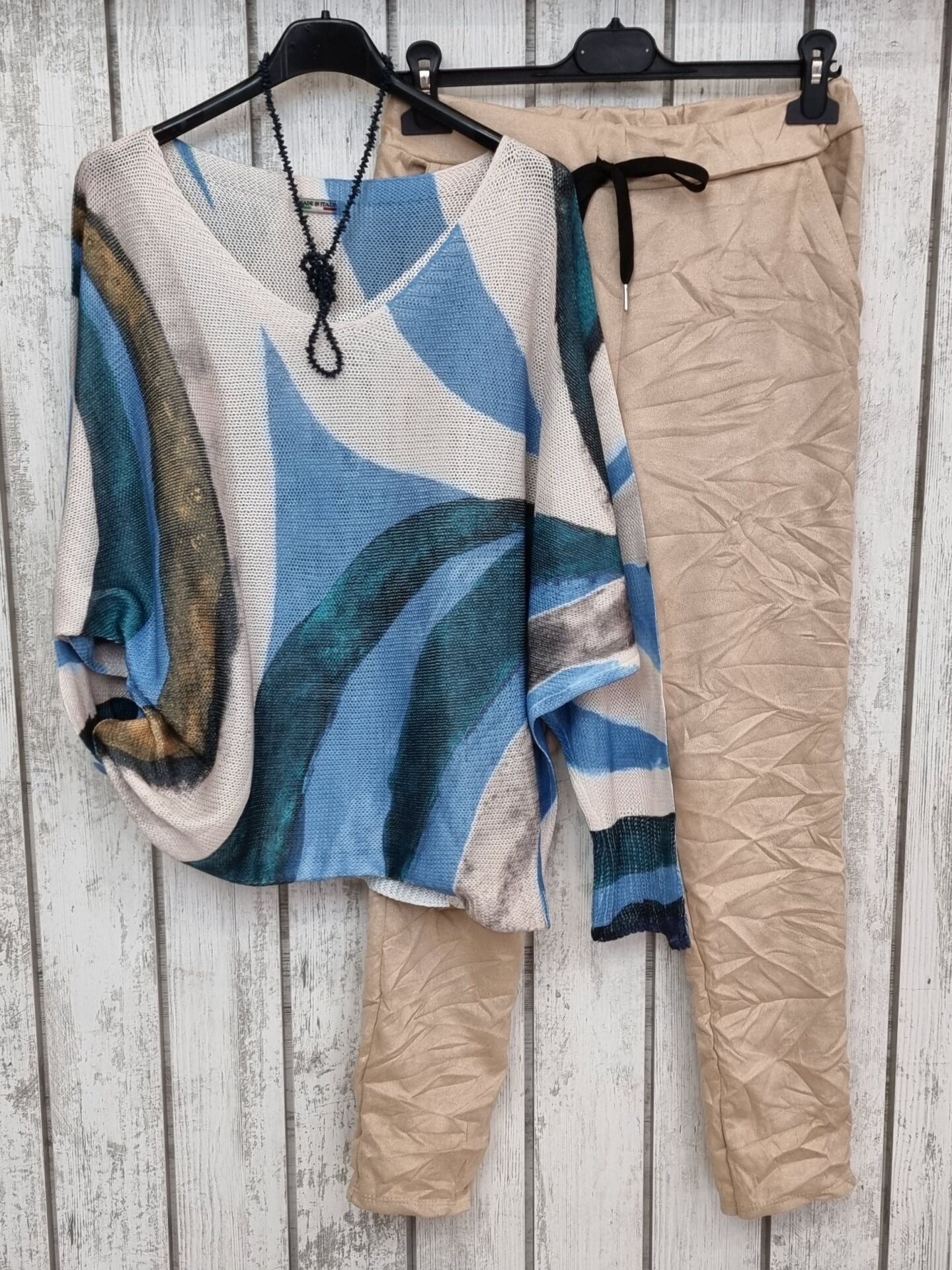 Batik Baskı İtalyan Triko Kazak Bej