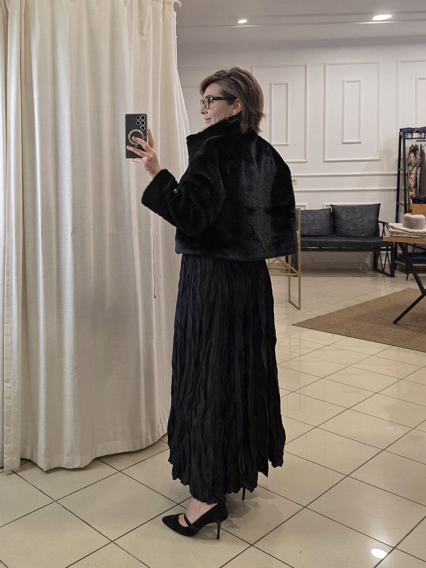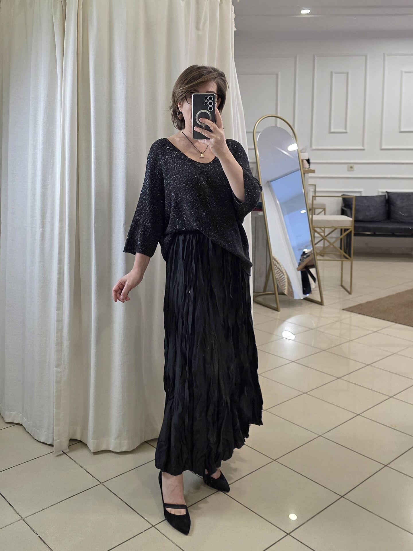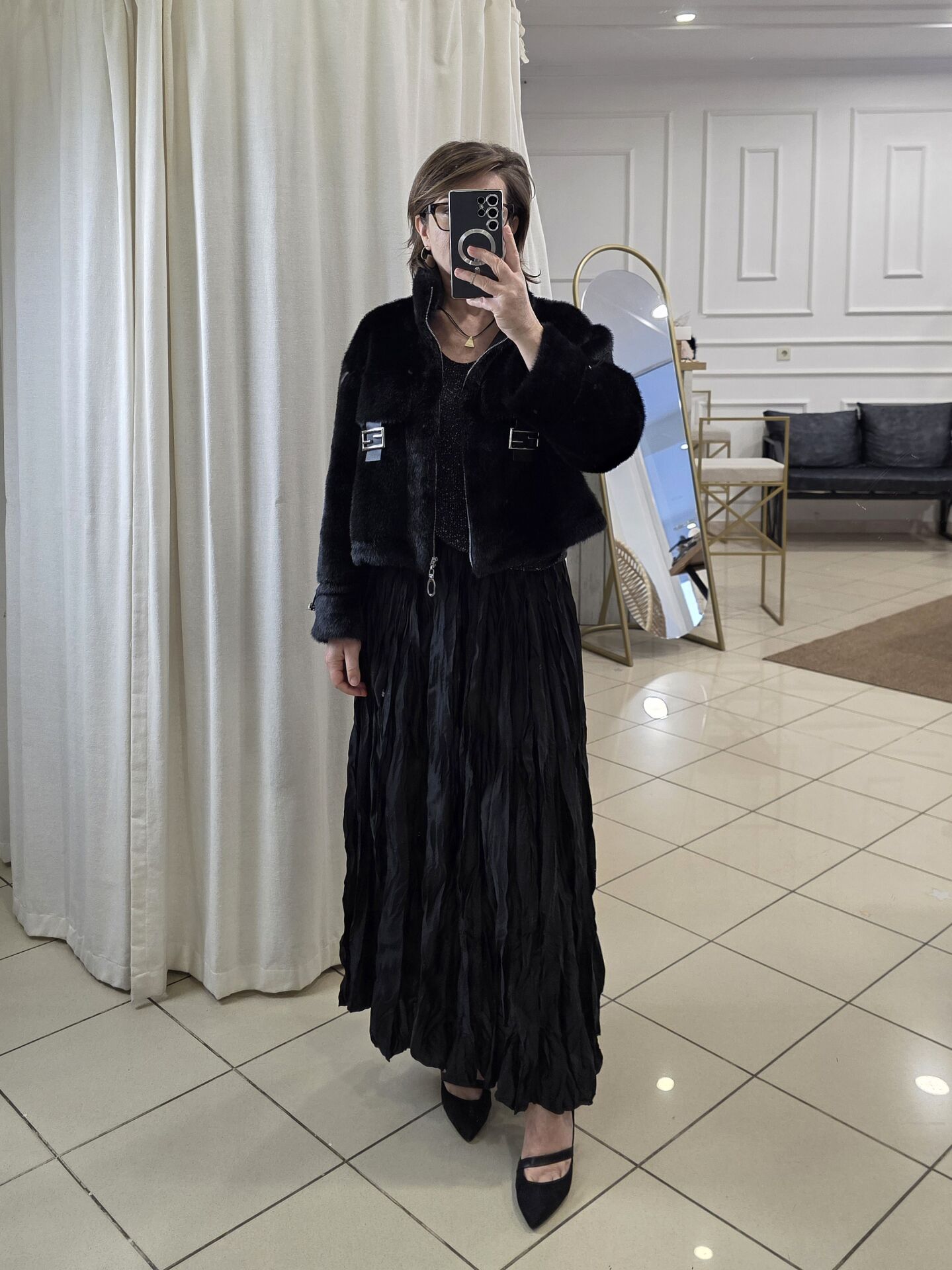 Siyah Bürümcük Uzun Saten Etek