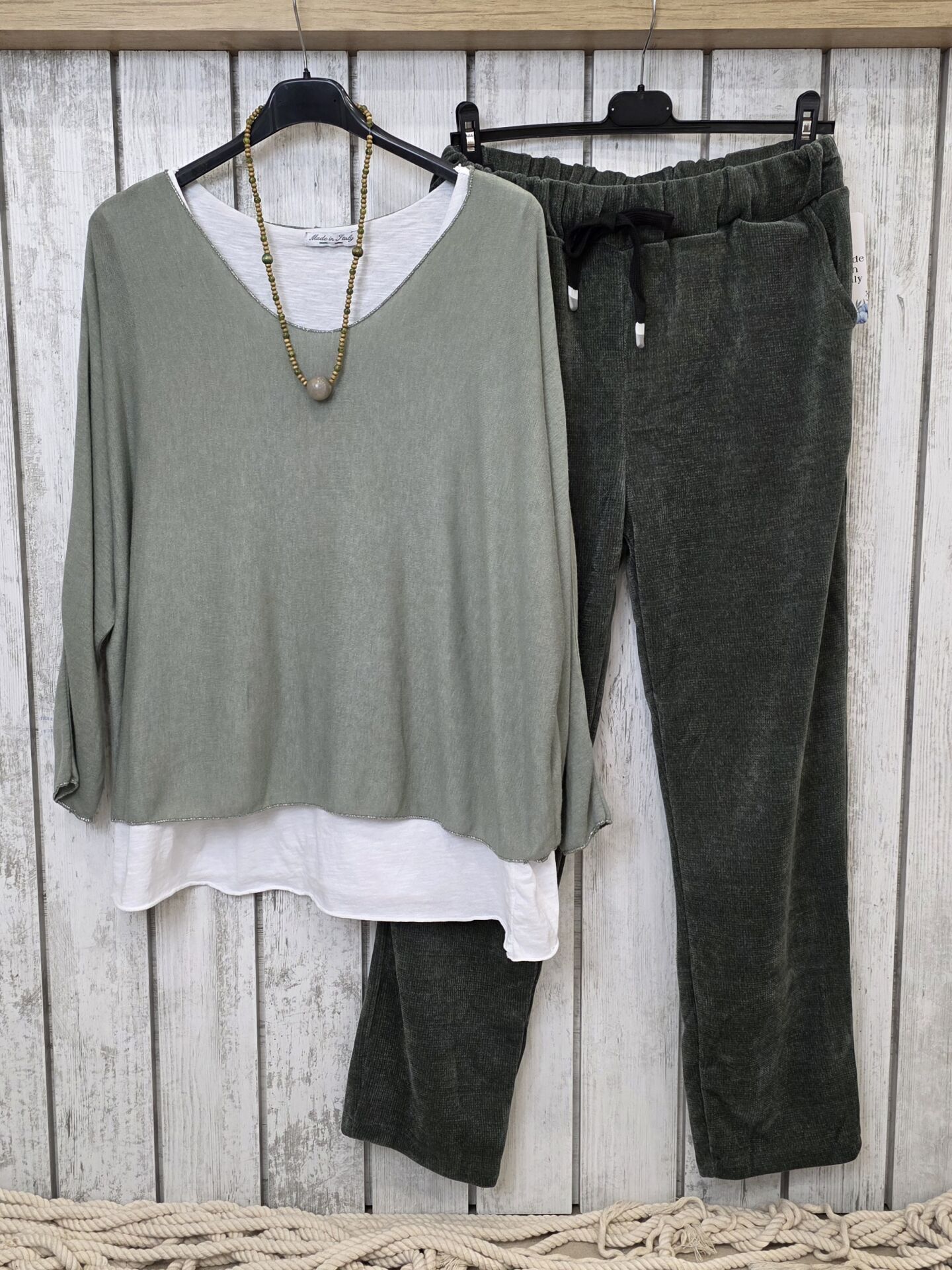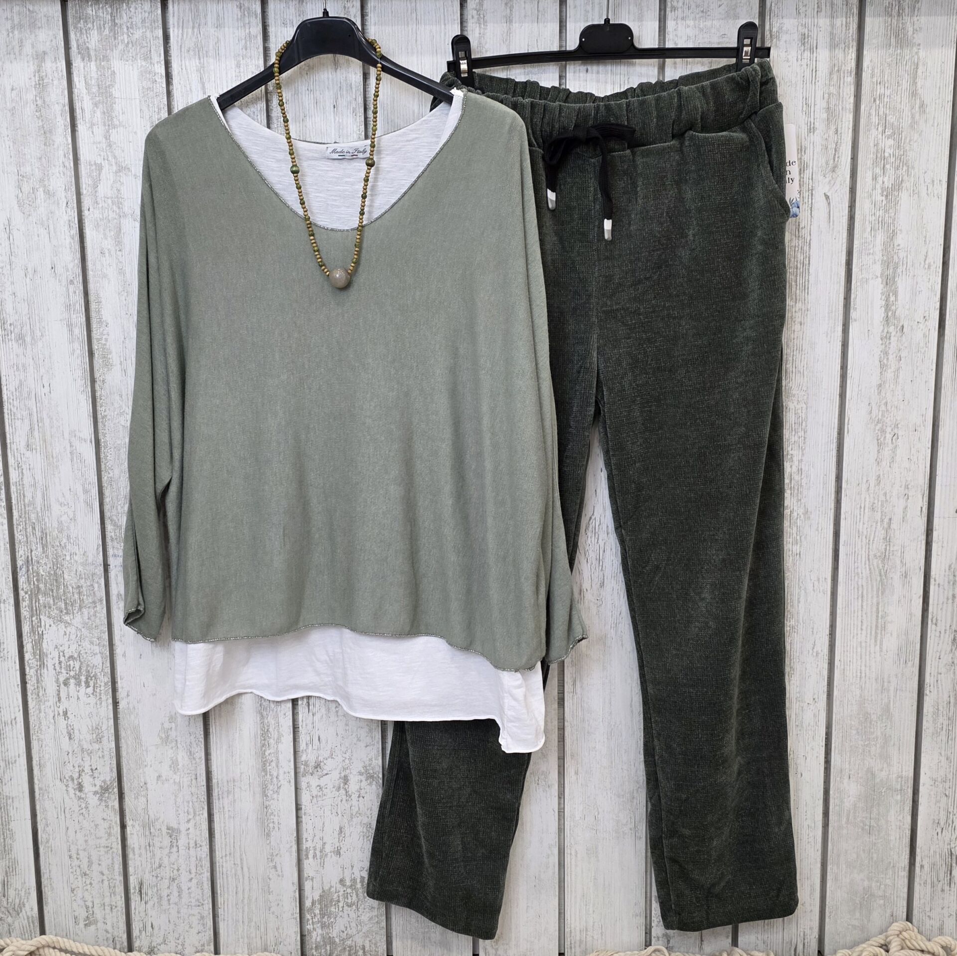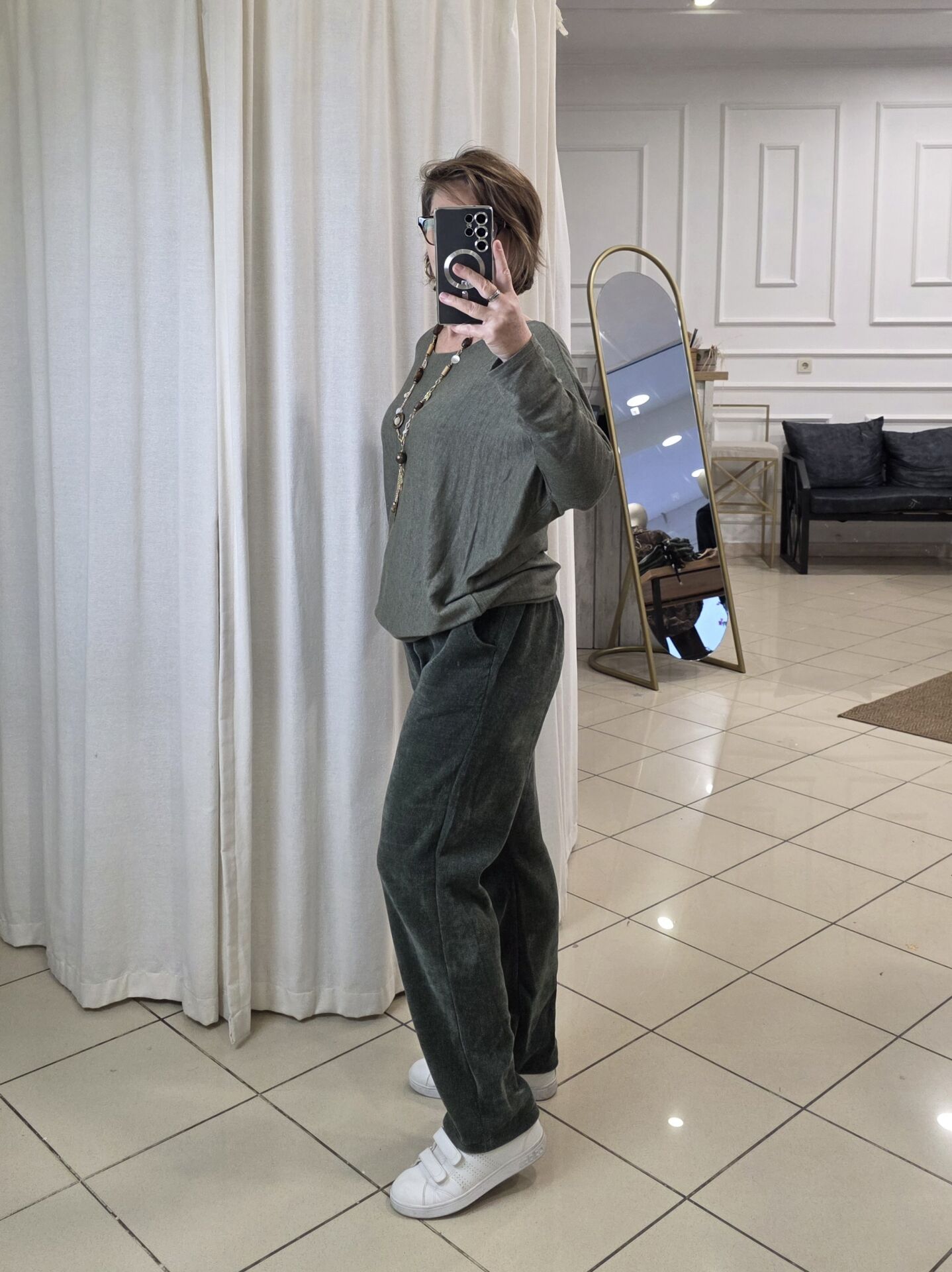 Beli Lastikli Kadife İtalyan Haki Pantolon