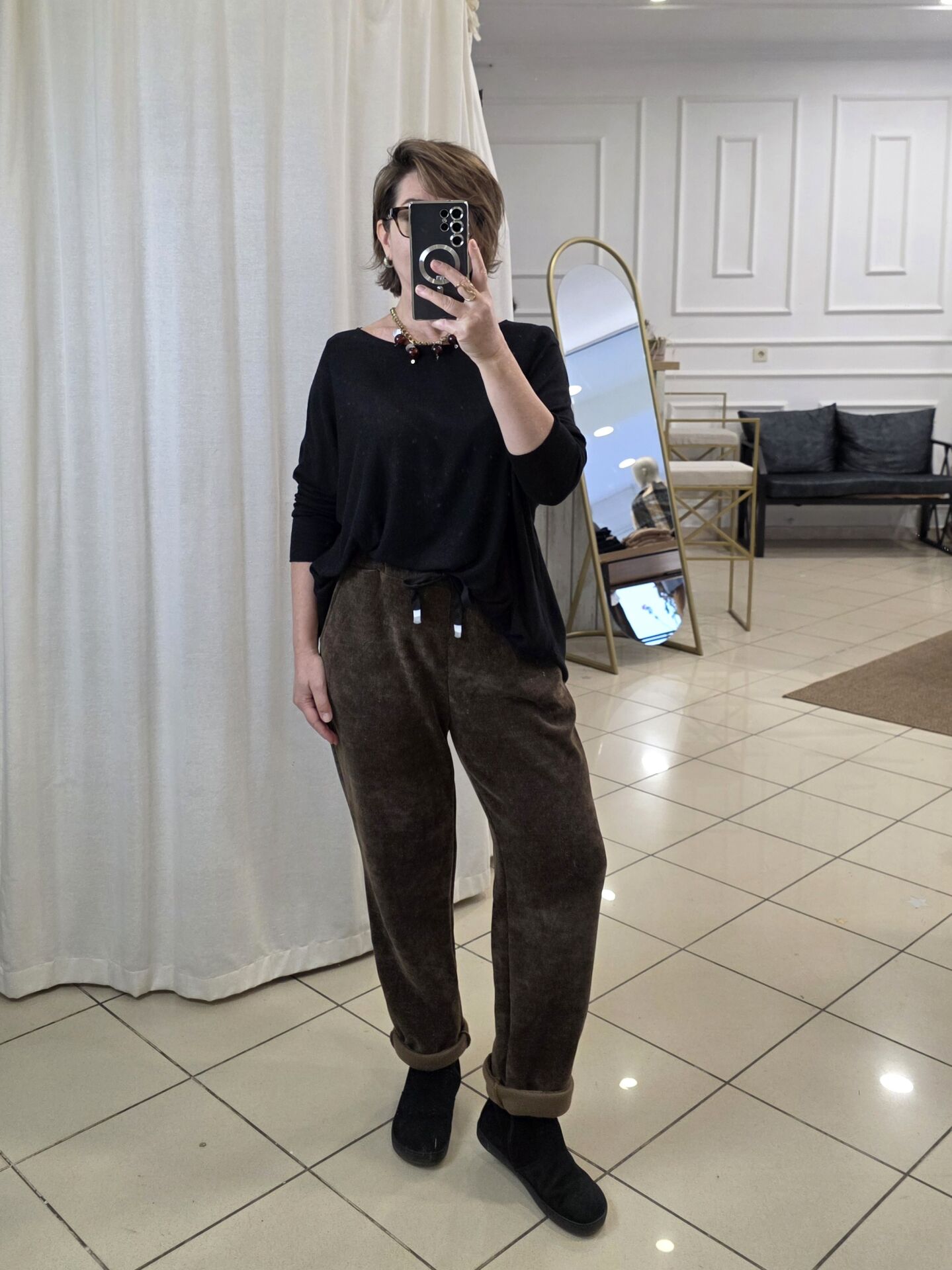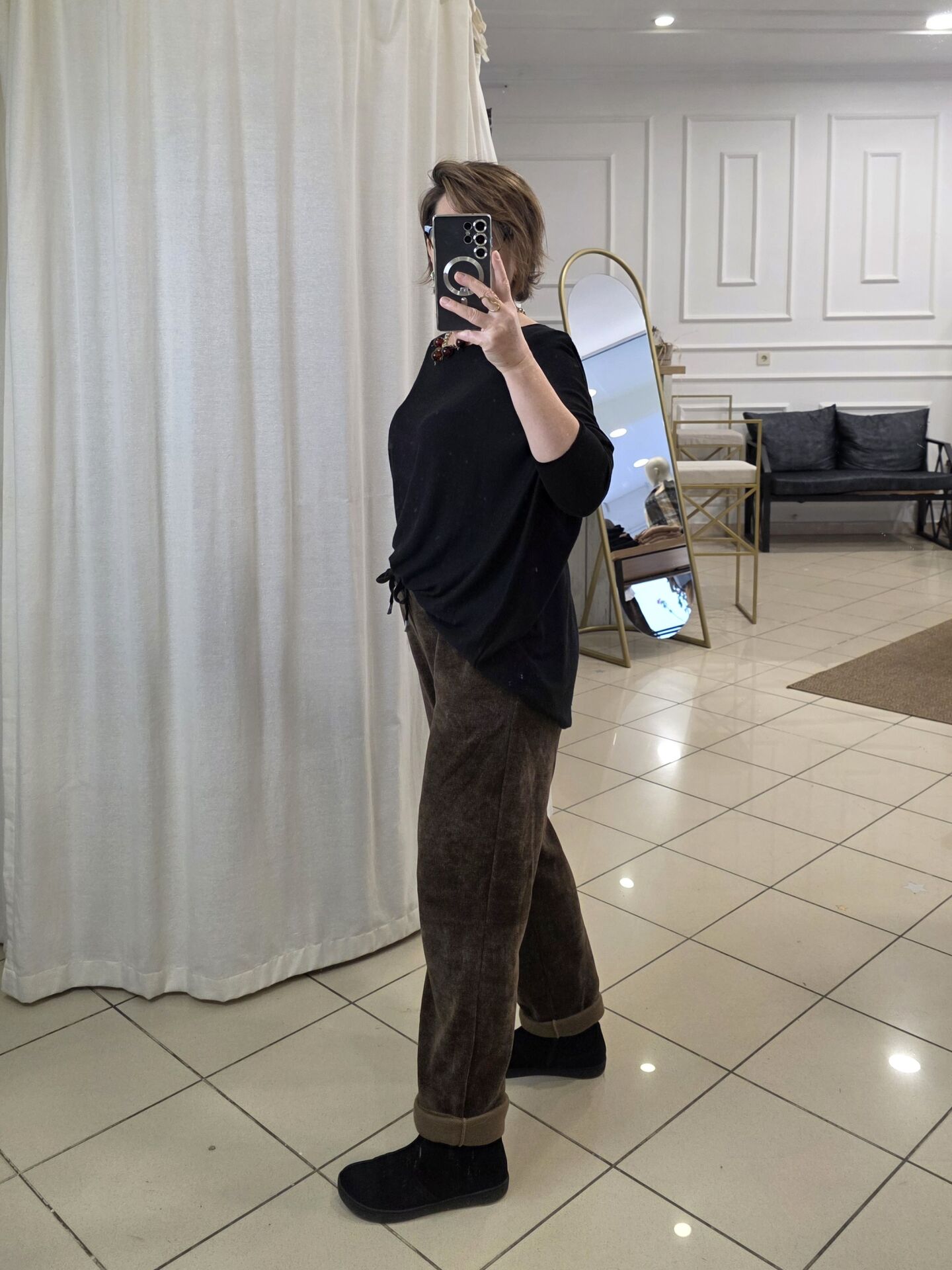 Beli Lastikli Kadife İtalyan Kahverengi Pantolon