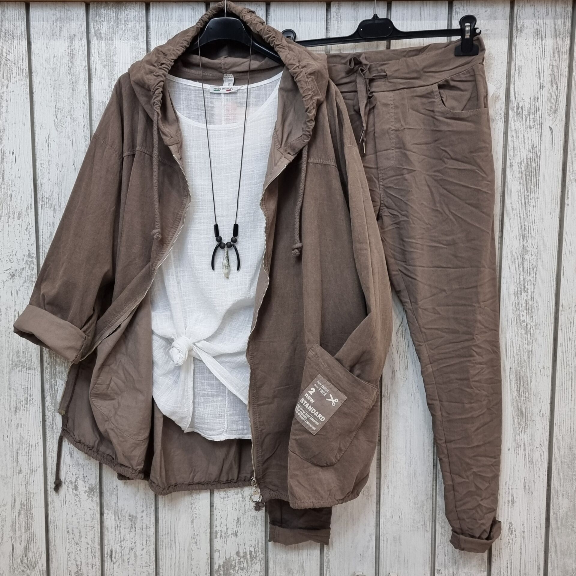 Bol Kesim İnce Kadife Sweat Ceket Vizon