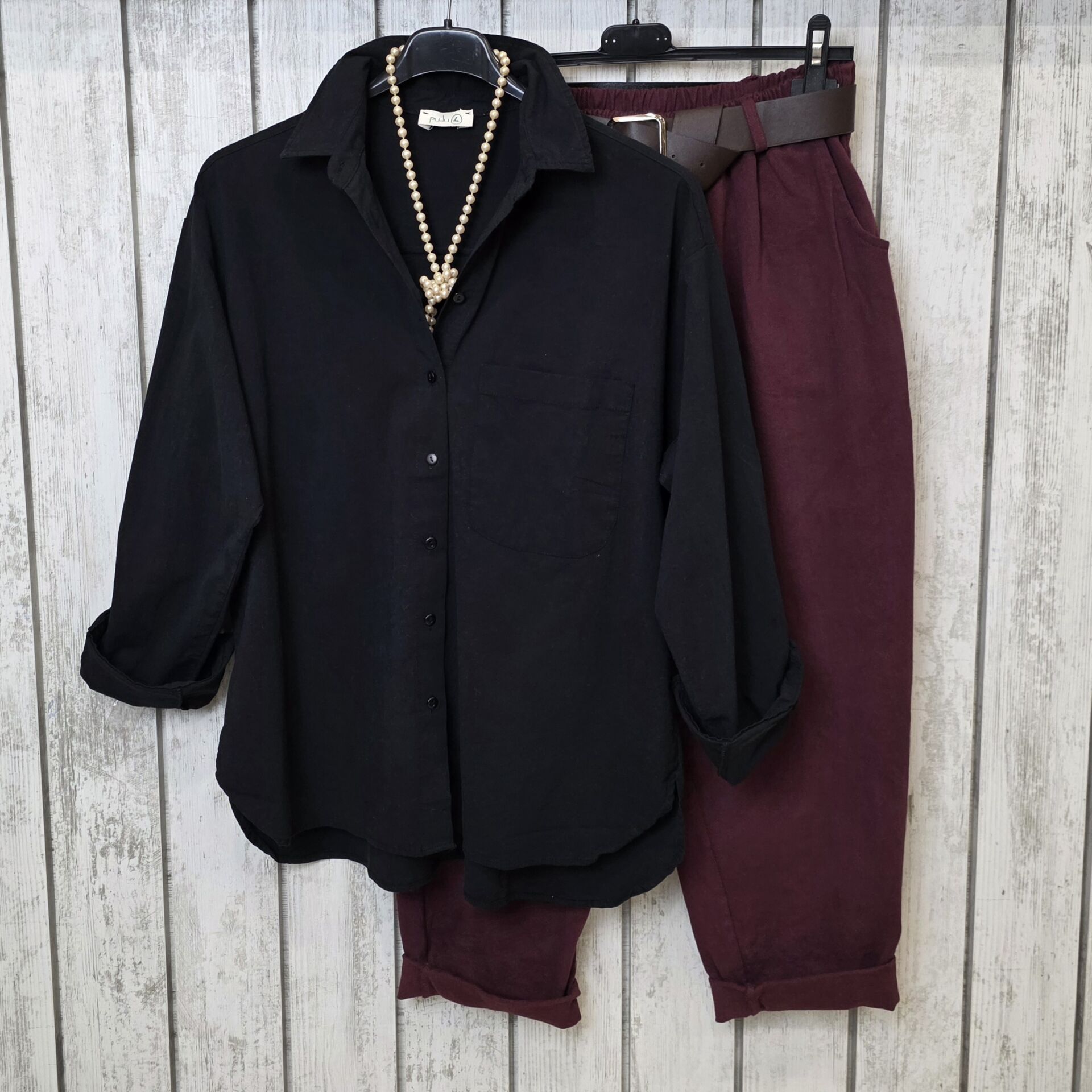 Önü düğmeli, göğüs üstü tek cepli, uzun kollu gömlek.
