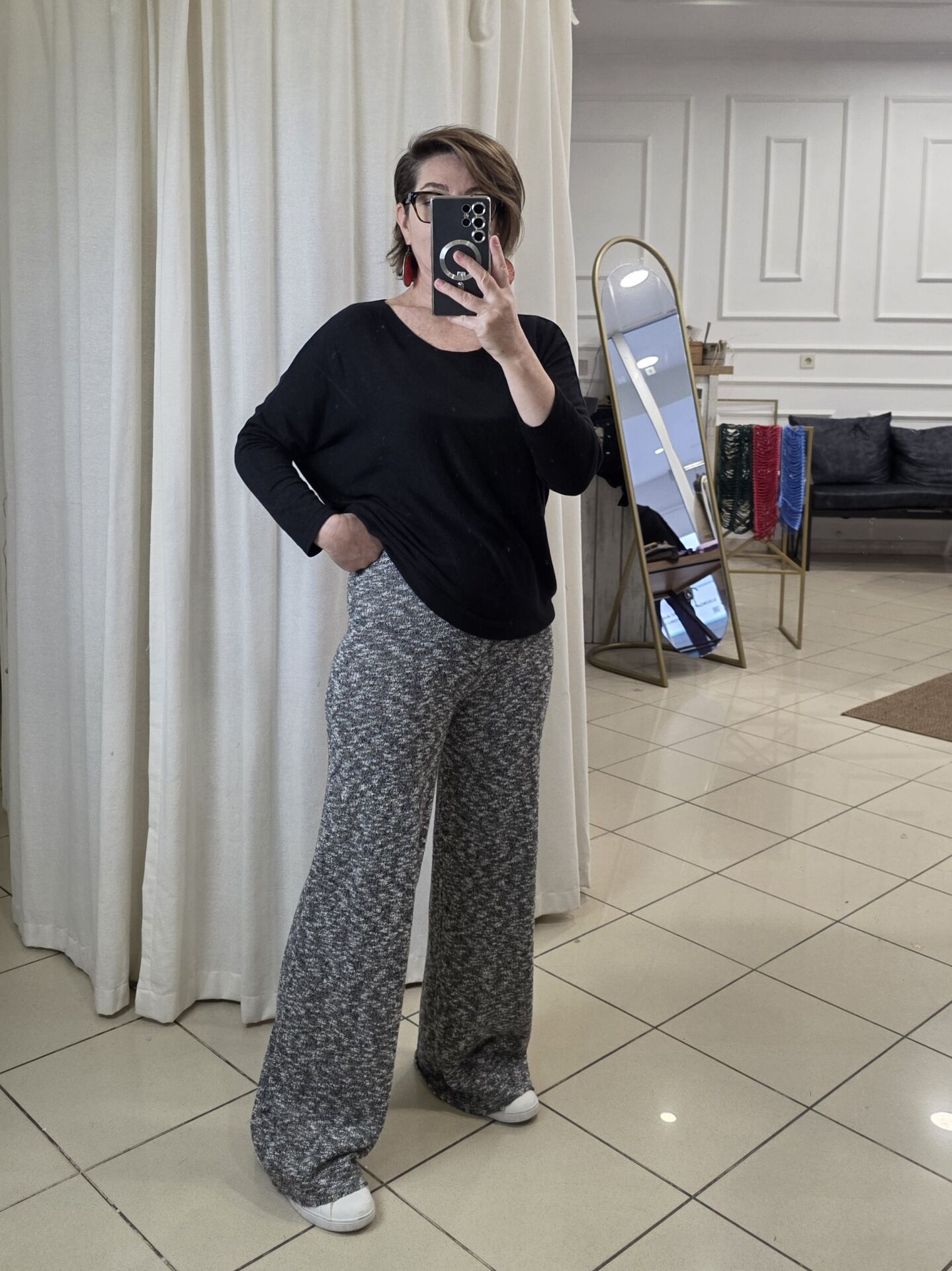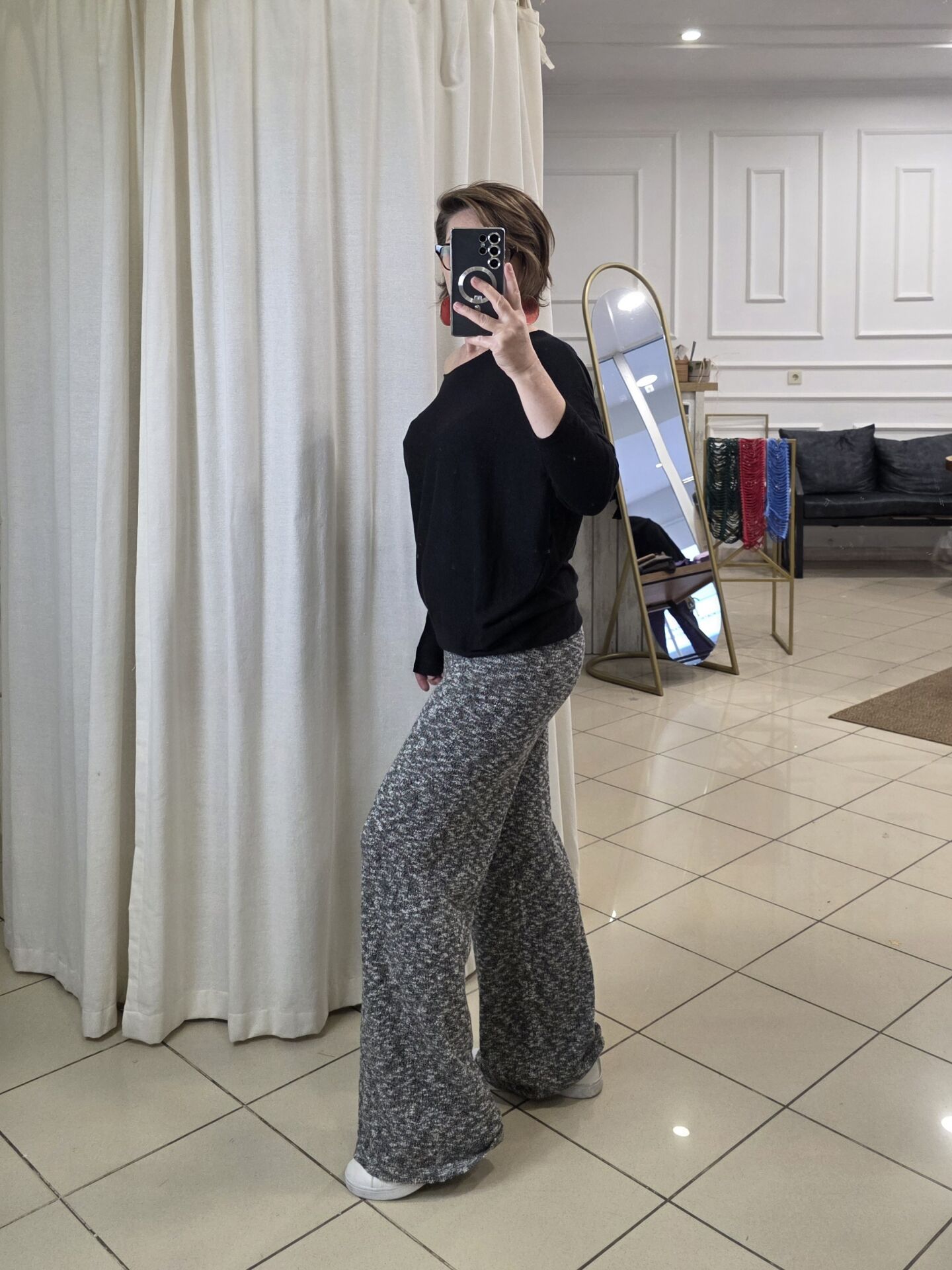 Gri kırçıllı pamuk triko pantolon.