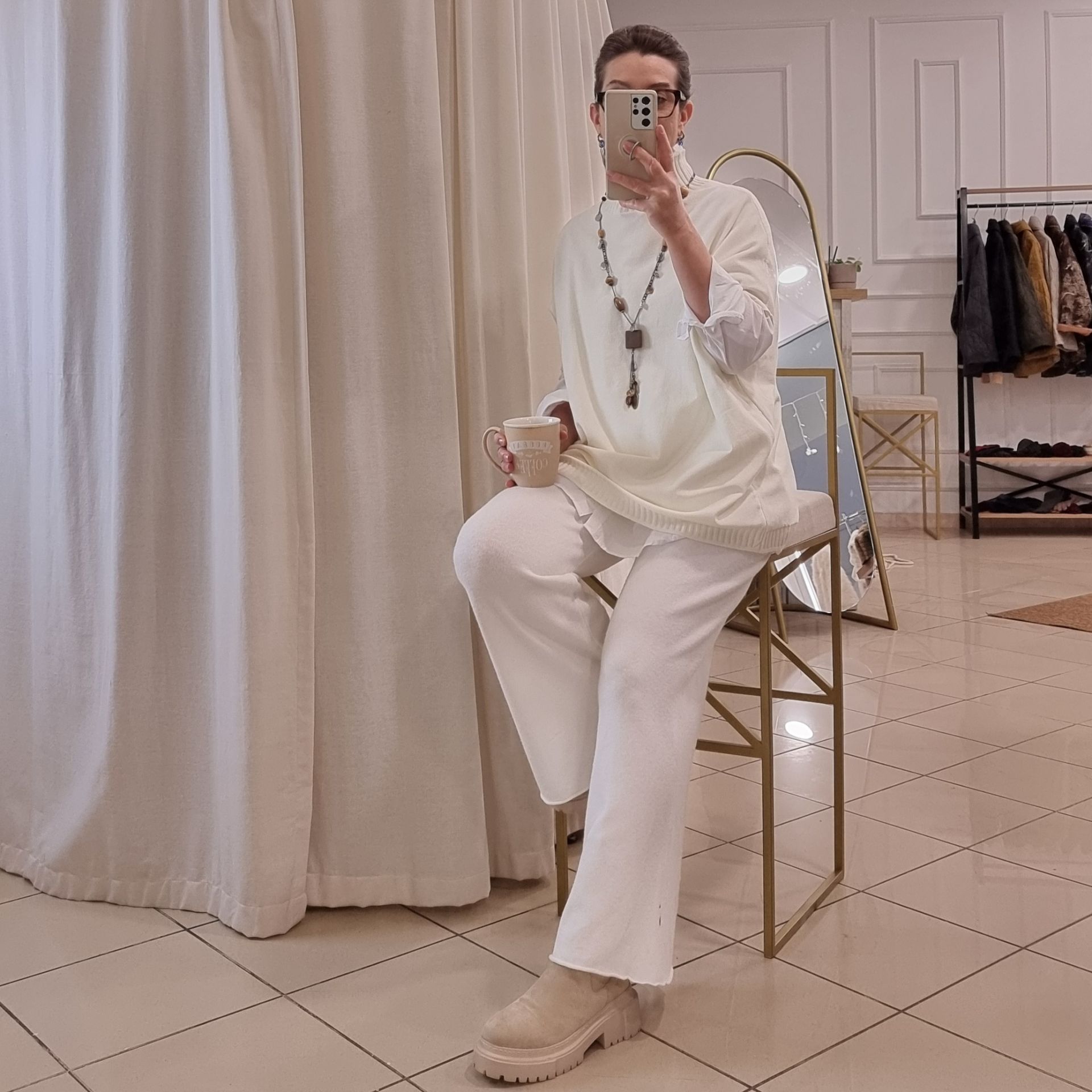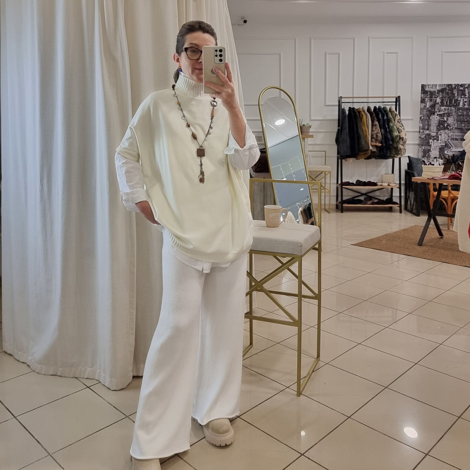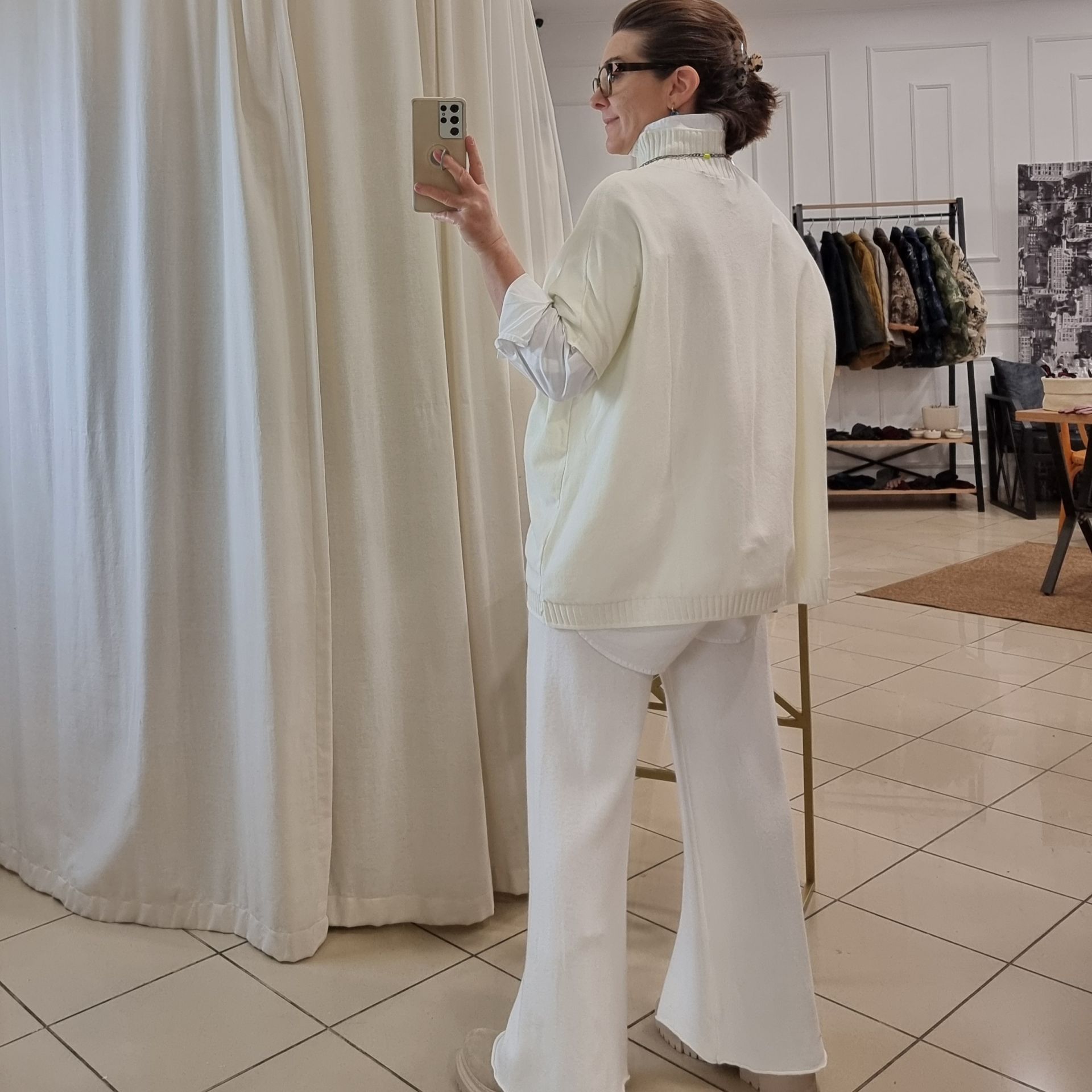 İtalyan triko pantolon. Beyaz renk.
