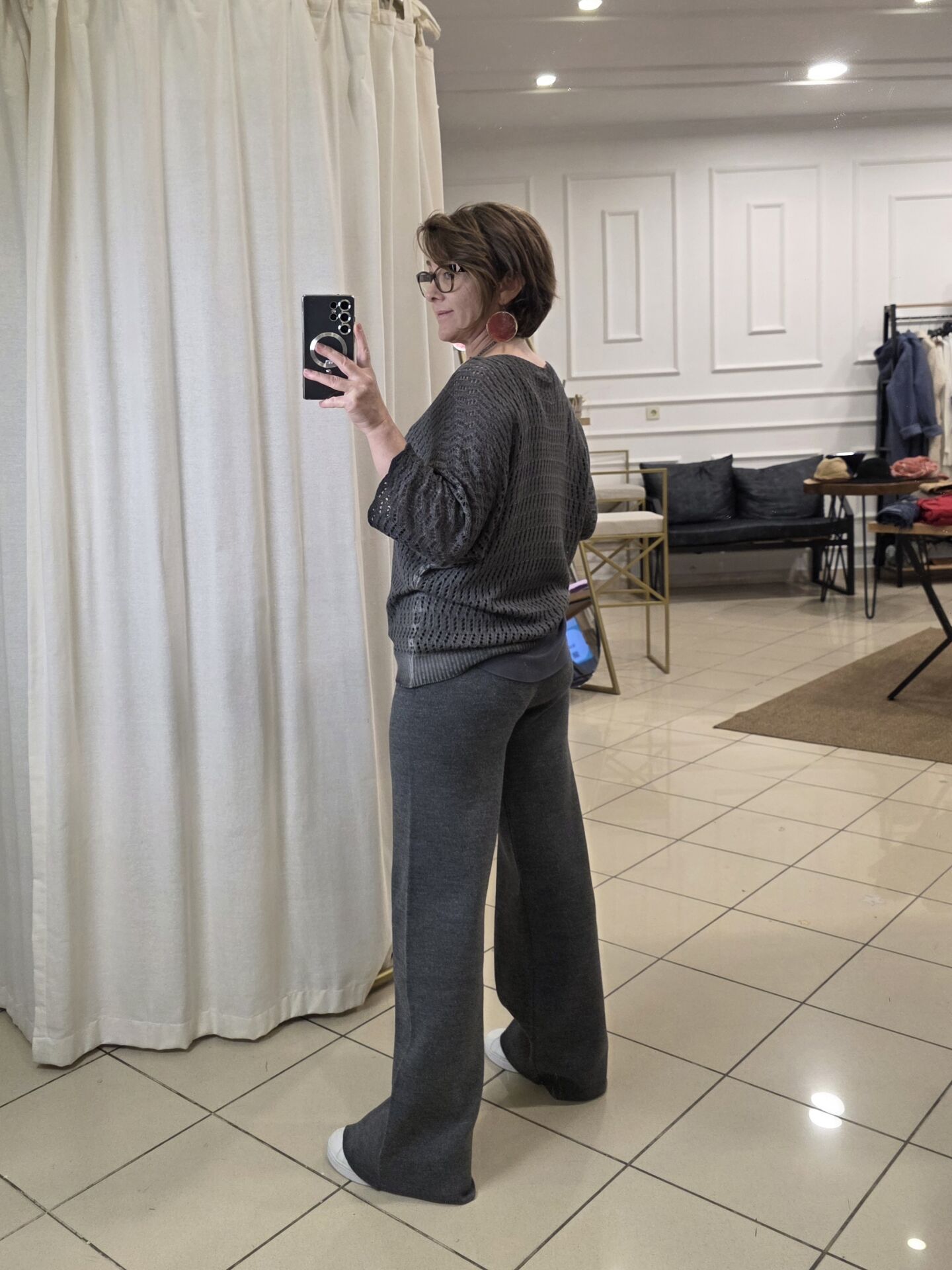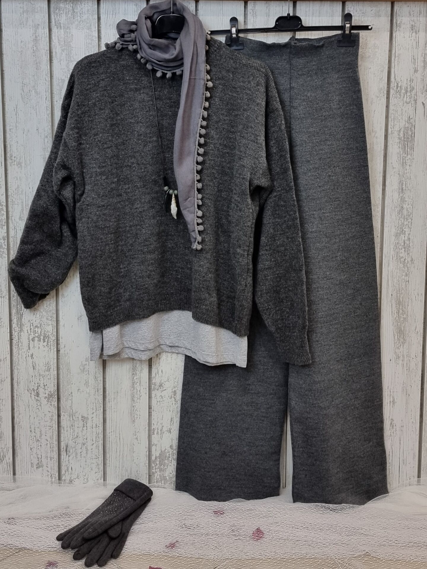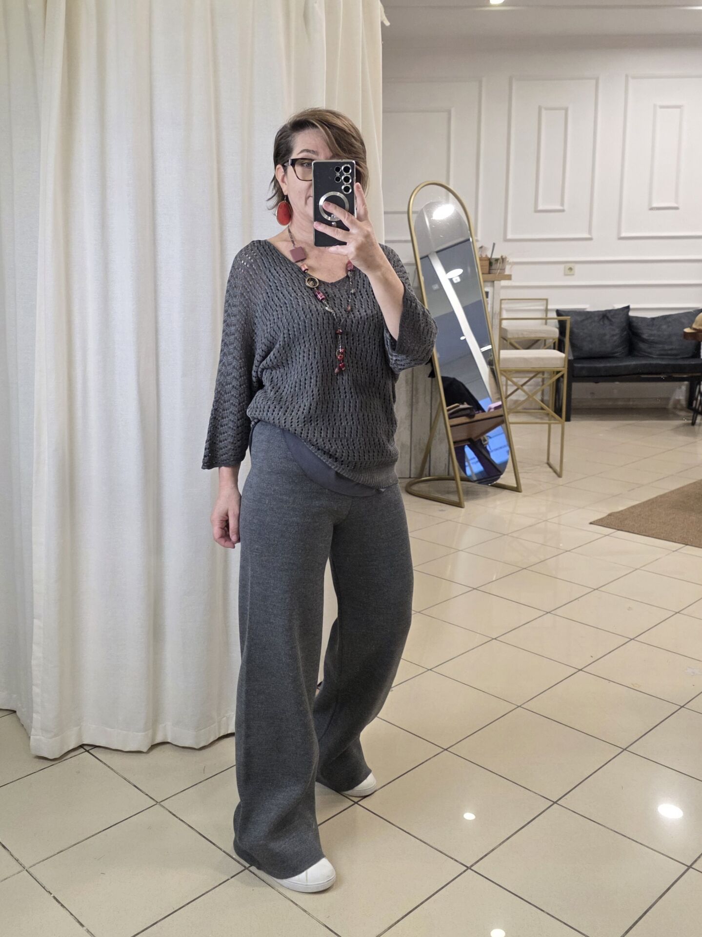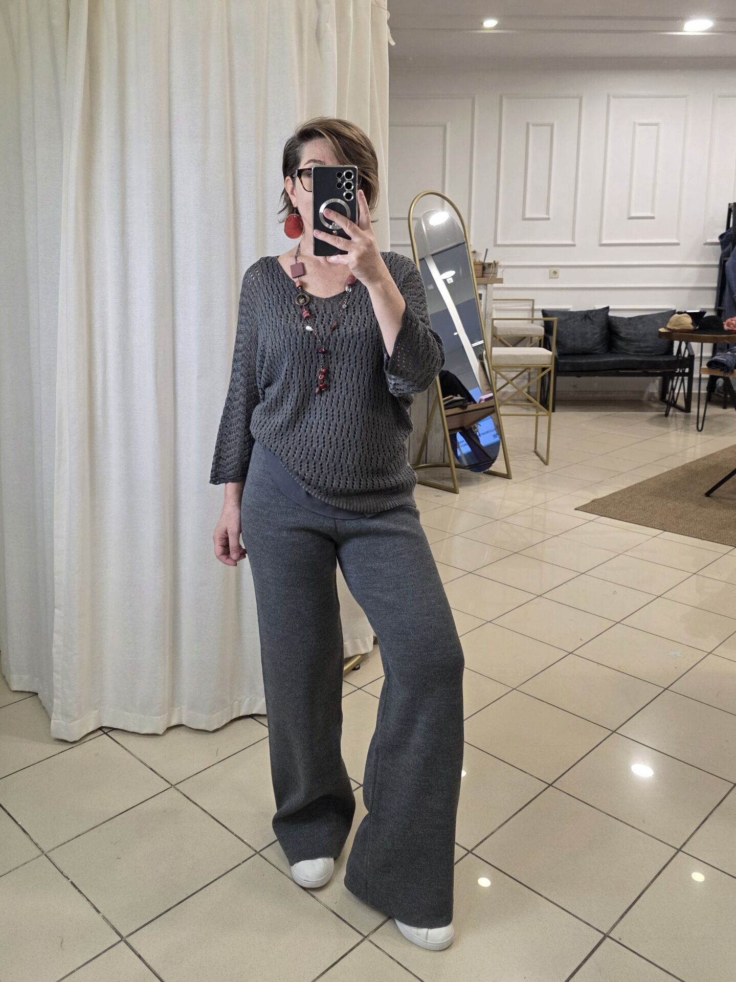 Kadınlar için tasarlanan antrasit bol paça triko pantolon, şıklığı ve rahatlığı bir araya getiriyor. Yüksek bel tasarımı ve beli kavrayan geniş lastikli yapısı sayesinde konforlu bir kullanım sunar. Esnek dokusu, 44/46 bedene kadar uyum sağlar ve vücudu zarif bir şekilde sarar. Kışlık kullanım için ideal olan bu pantolon, palazzo kesimiyle modern ve sofistike bir görünüm yaratır. Hem günlük kombinlerinizde hem de özel davetlerde rahatlıkla tercih edebilirsiniz. %70 akrilik ve %30 yün karışımından oluşan dokusuyla soğuk havalarda sıcak tutarken, tarzınıza ince bir dokunuş katar. Antrasit rengiyle her dolabın vazgeçilmezi olacak bu triko pantolon, kadınların kış gardırobunda mutlaka bulunmalı.