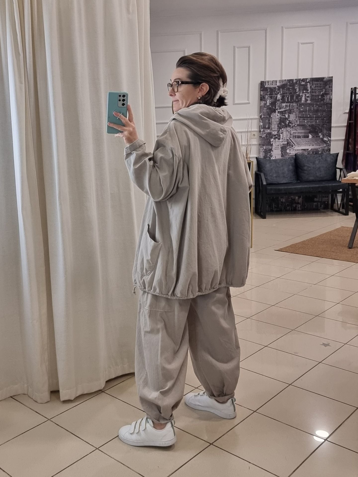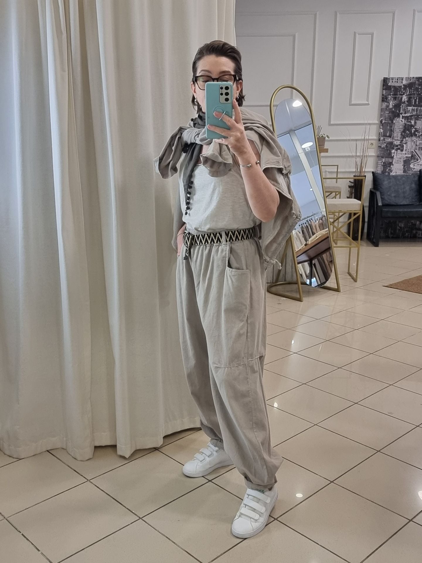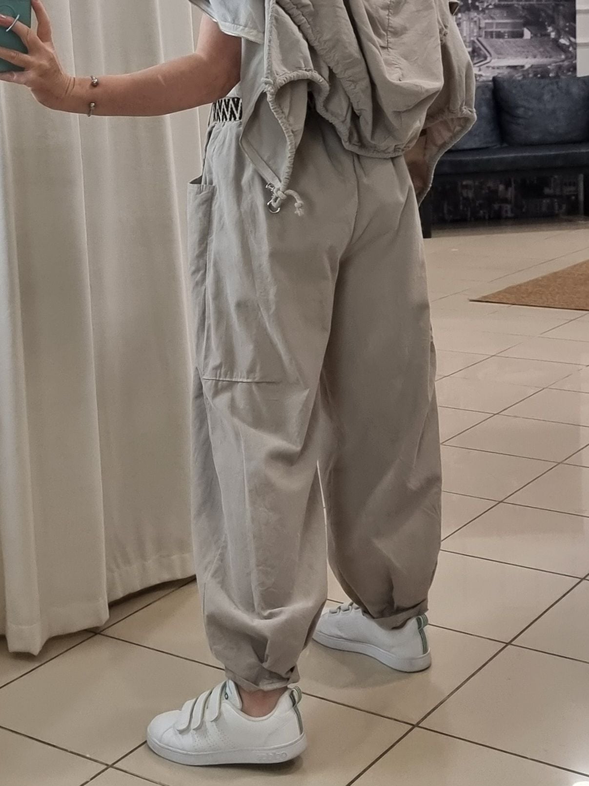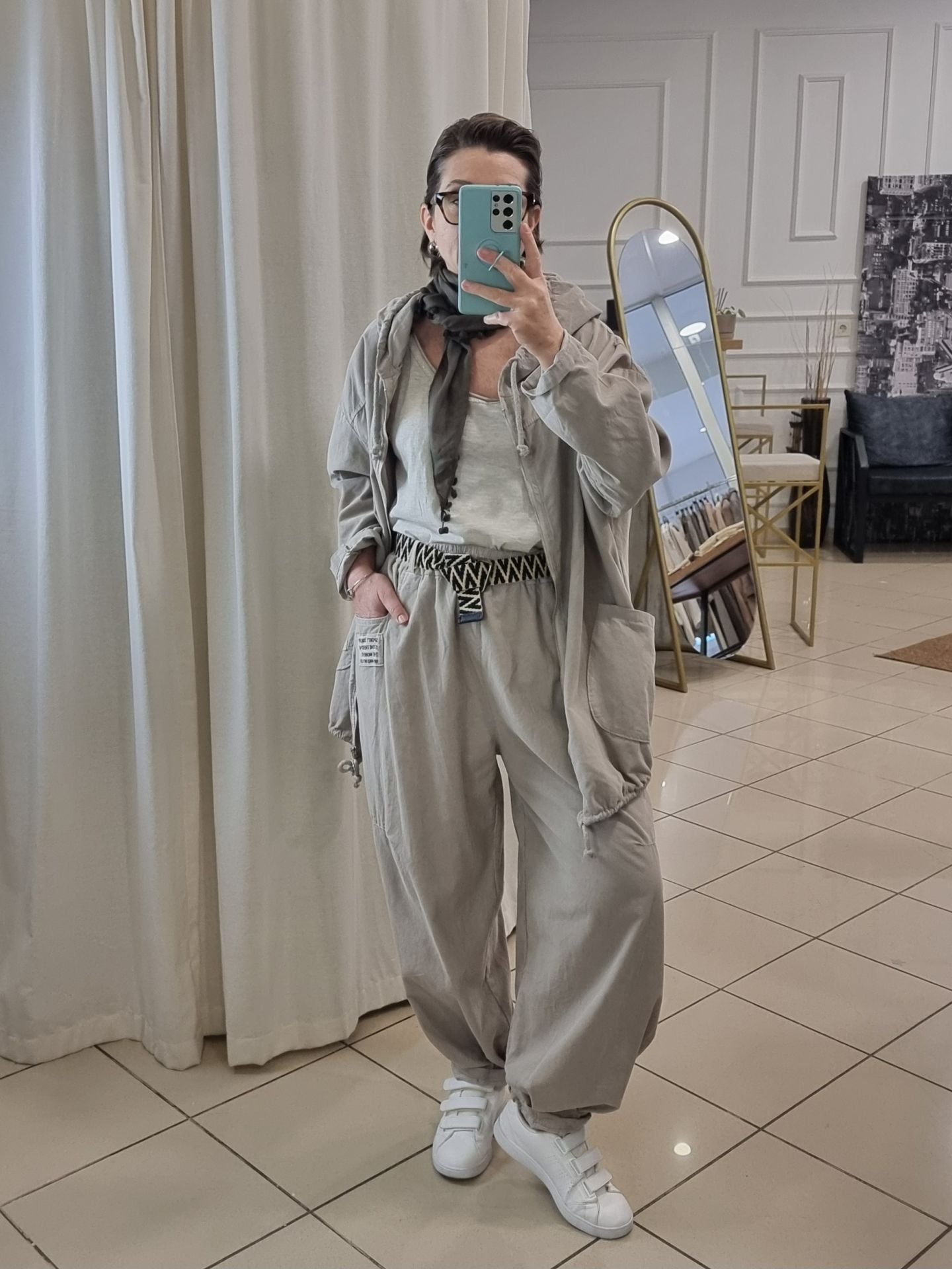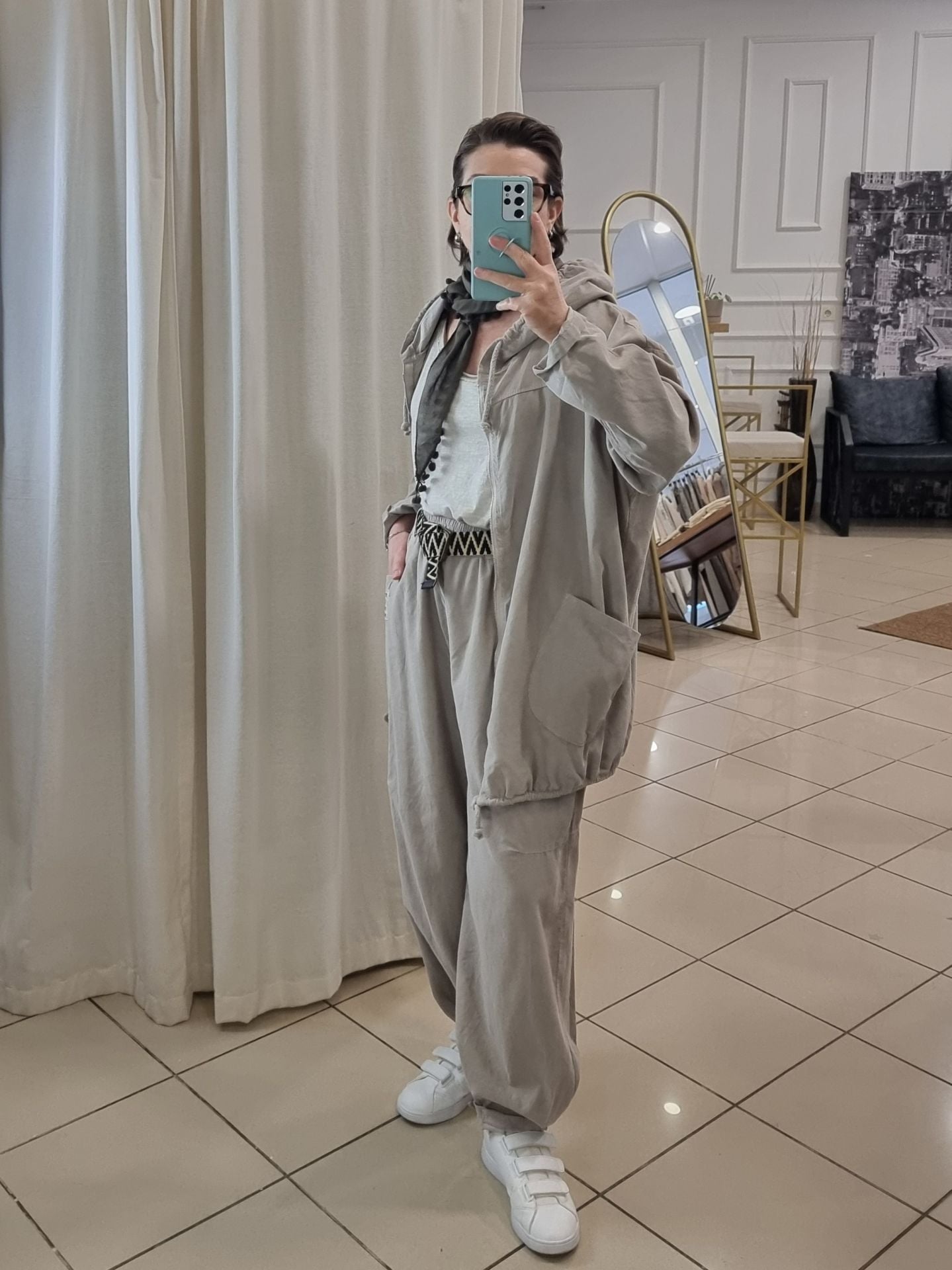 %100 pamuk beli lastikli İtalyan kadife pantolon. Zebra kemerli, paça ucu biyeli ve cepli tasarımıyla dikkat çeker. İnce kadife yapısı ve bol kesimiyle rahatlığı ve şıklığı bir arada sunar. Bu bej renkli kadife bol pantolon, her bedene uygun olarak tasarlanmıştır ve kadınların gardırobuna zarif bir dokunuş katar. Kadife bol pantolon oversize kesimi ile 40/42 bedenden 54 bedene kadar uyum sağlar.