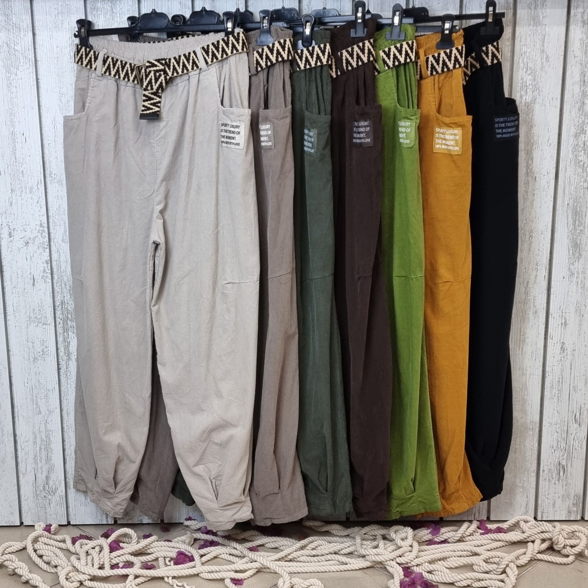 %100 pamuk beli lastikli İtalyan kadife bol pantolon.