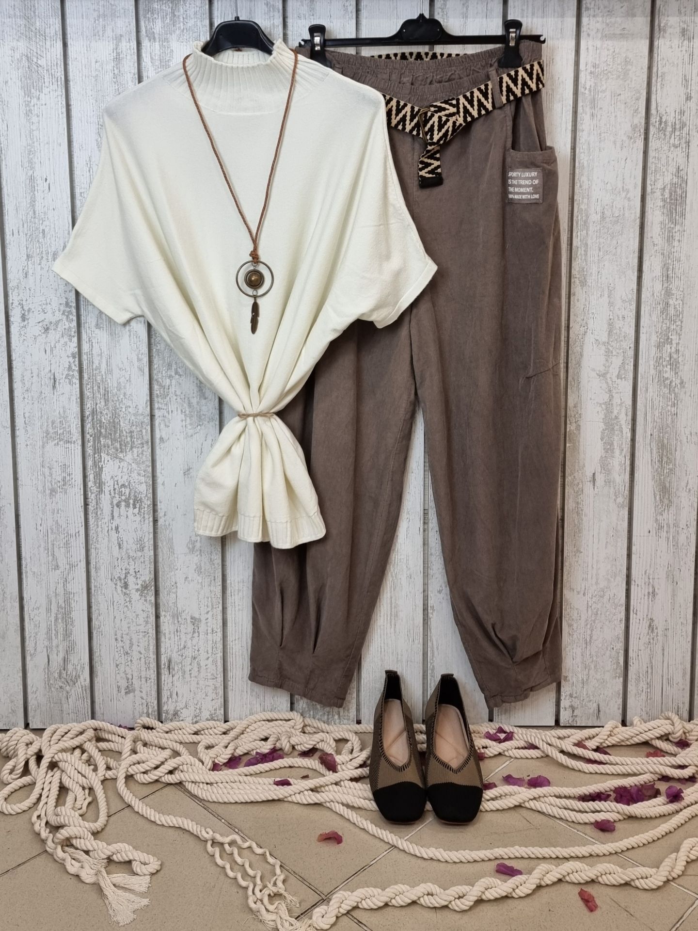 Bu vizon rengi Kadife Bol Pantolon, kadınlar için özel olarak tasarlanmıştır. %100 pamuk ve beli lastikli yapısıyla hem rahat hem de şık bir görünüm sunar. İnce kadife dokusu ve zebra kemeriyle dikkat çeken bu oversize kadife pantolon, bol kesimi sayesinde her bedene uygun bir rahatlık sağlar. Hem gündelik kombinlerinizde hem de özel günlerde şıklığınızı tamamlayacak bir parça.