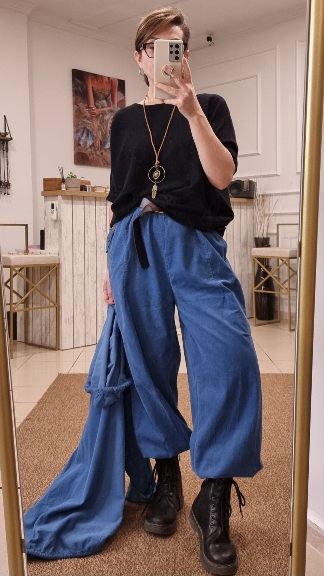 Bu mavi büyük beden pantolon, kadınlara özel olarak tasarlanmıştır ve yumuşak dokusuyla günlük şıklık sunar. Kadife pantolon rahatlığı, beli lastikli yapısı ve oversize kesimi ile konforlu bir kullanım sağlar. Geniş beden aralığı sayesinde her vücut tipine uyumlu olan bu pantolon, modern tasarımıyla tarzınıza sofistike bir dokunuş katacak.