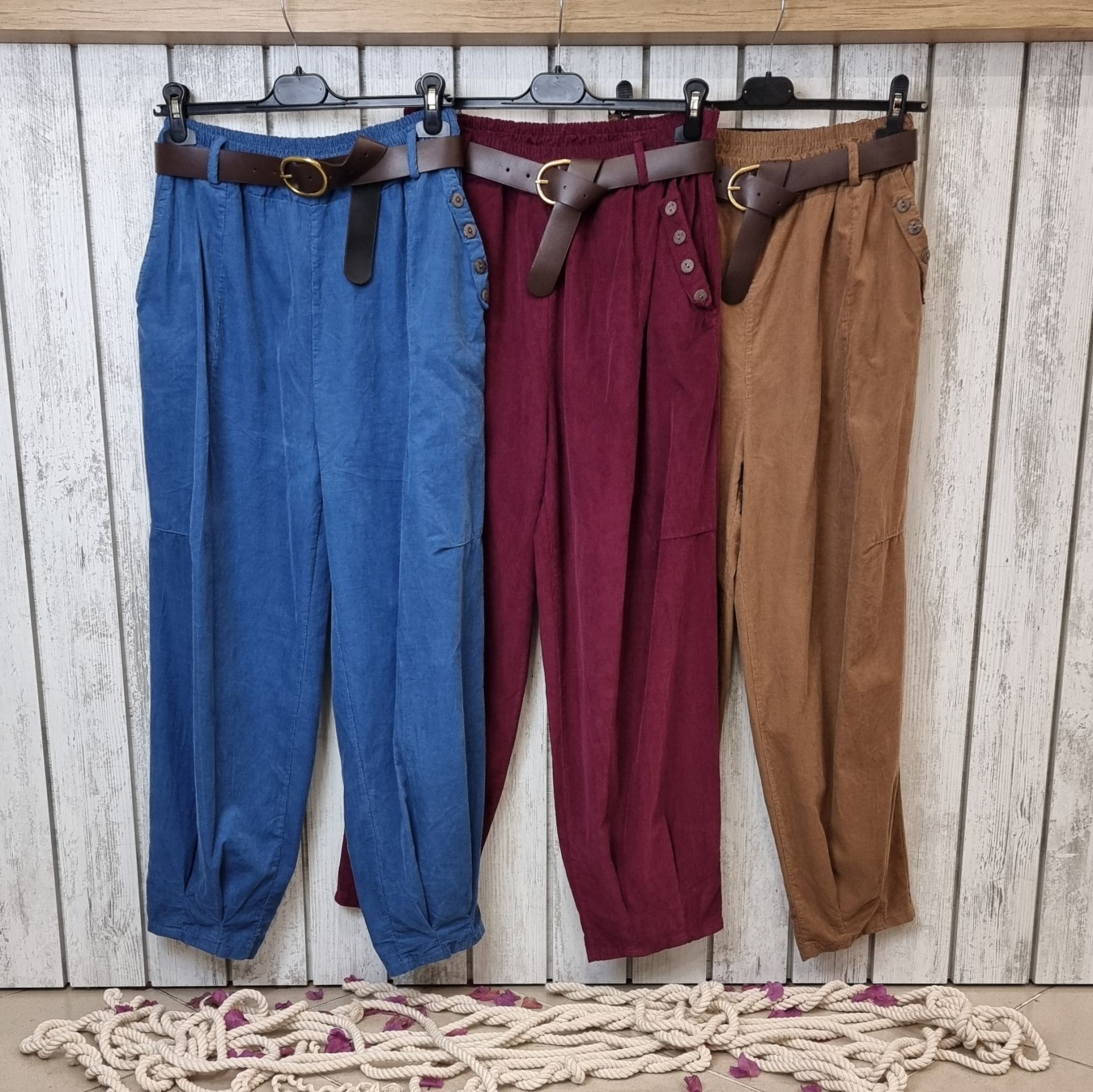 %100 pamuk beli lastikli İtalyan kadife pantolon.