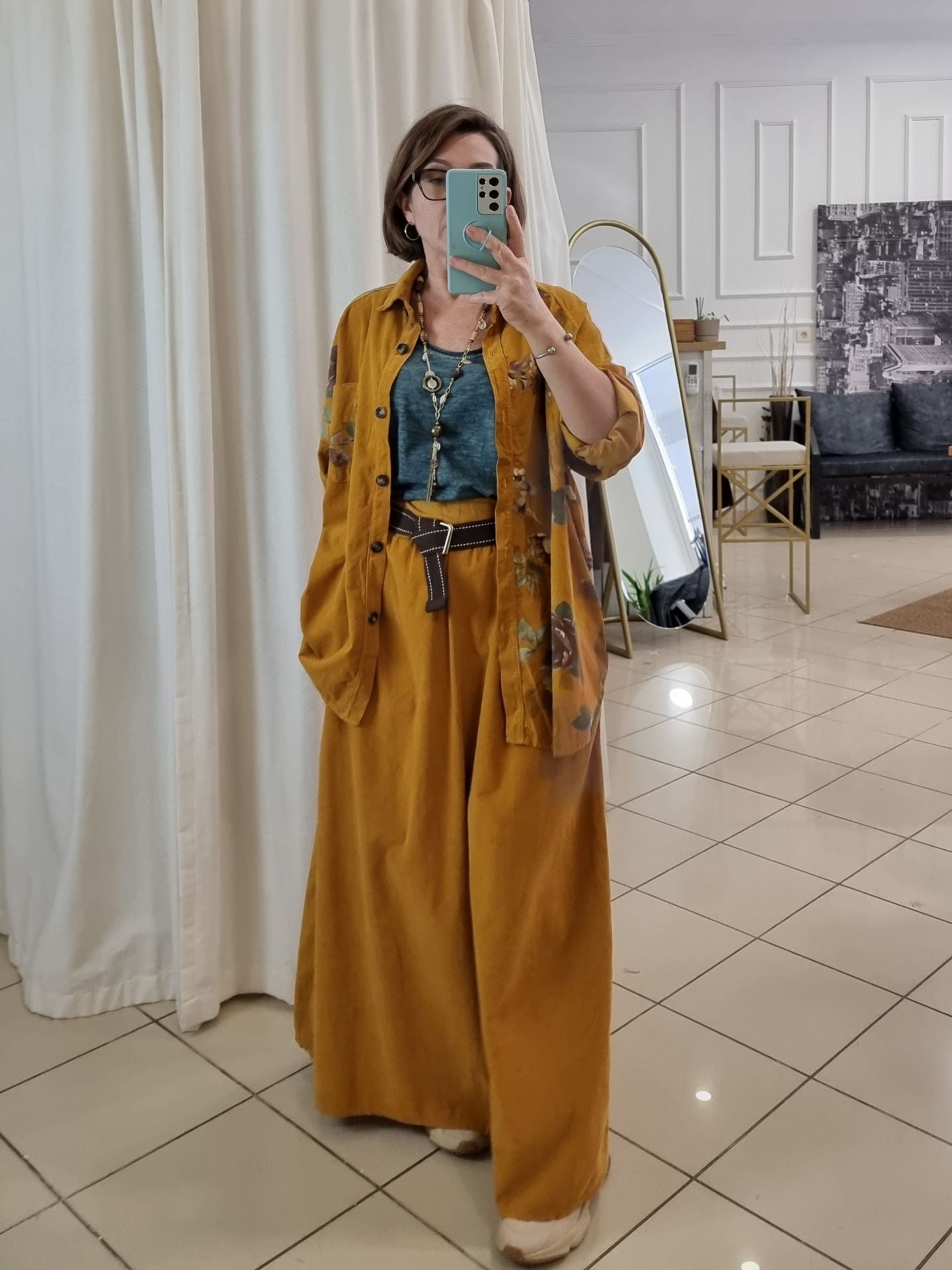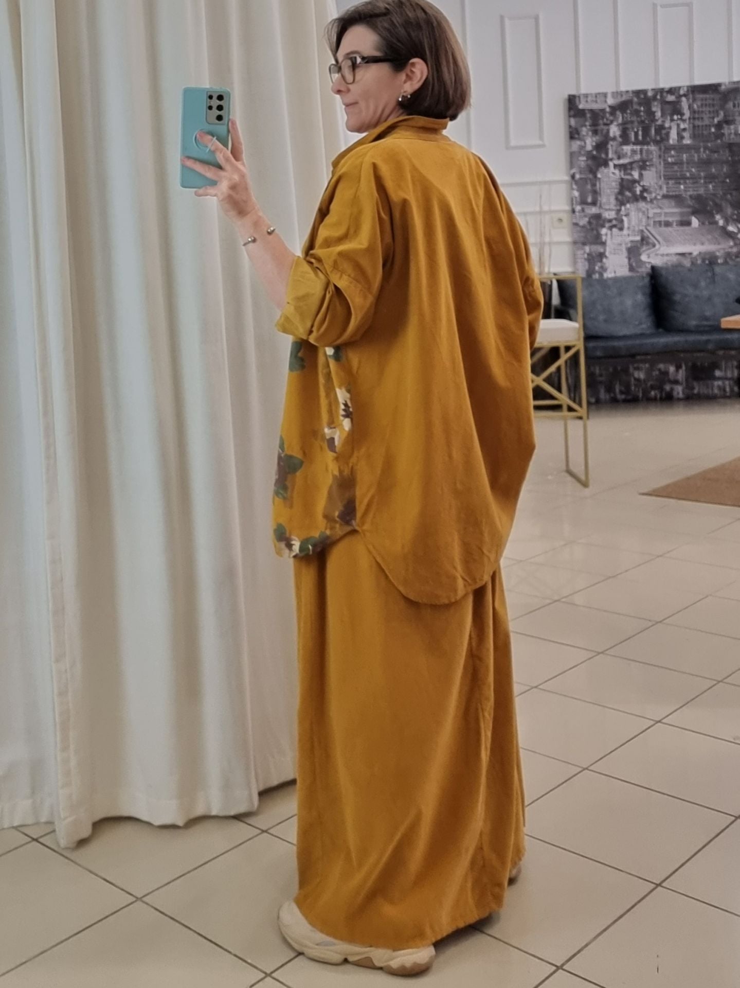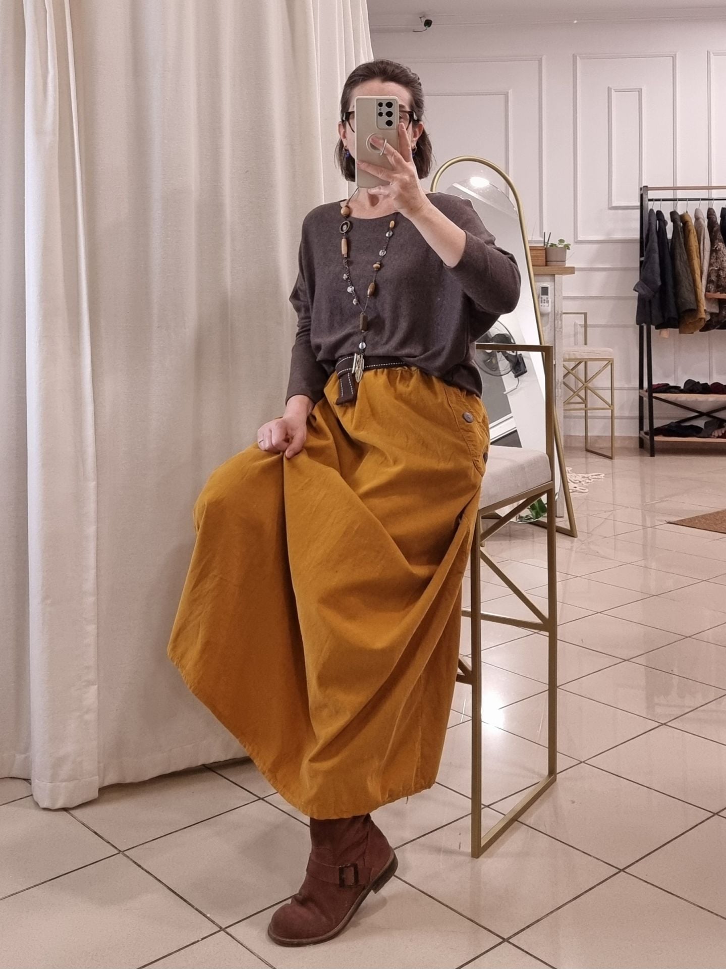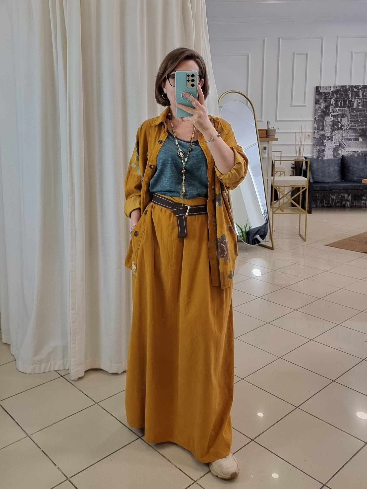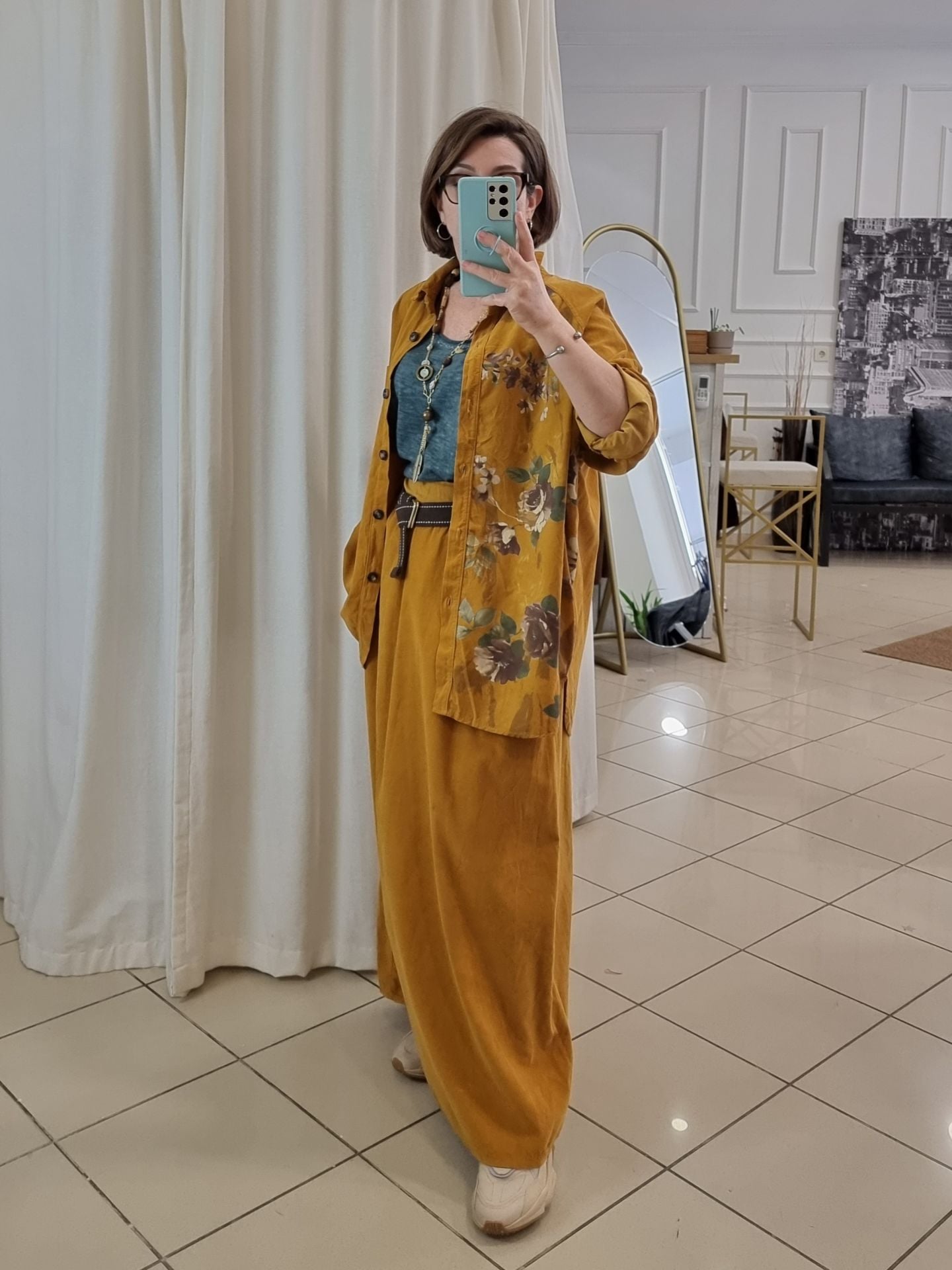 Hardal rengi kadife etek, kadınlar için özgün bir stil arayanlara özel tasarlanmıştır. Kadife dokusuyla zarafeti ve sıcak bir görünümü bir araya getiren bu uzun etek, rahat kullanımı ve oversize kesimiyle her bedene hitap eder. Günlük kombinlerinizde veya özel günlerde rahatlıkla tercih edebileceğiniz bu etek, özellikle geniş paça tasarımı ve lastikli beli sayesinde konforu ön planda tutar. Kadife uzun etek, her ortamda şıklığınızı tamamlar ve göz alıcı detaylarıyla öne çıkar.