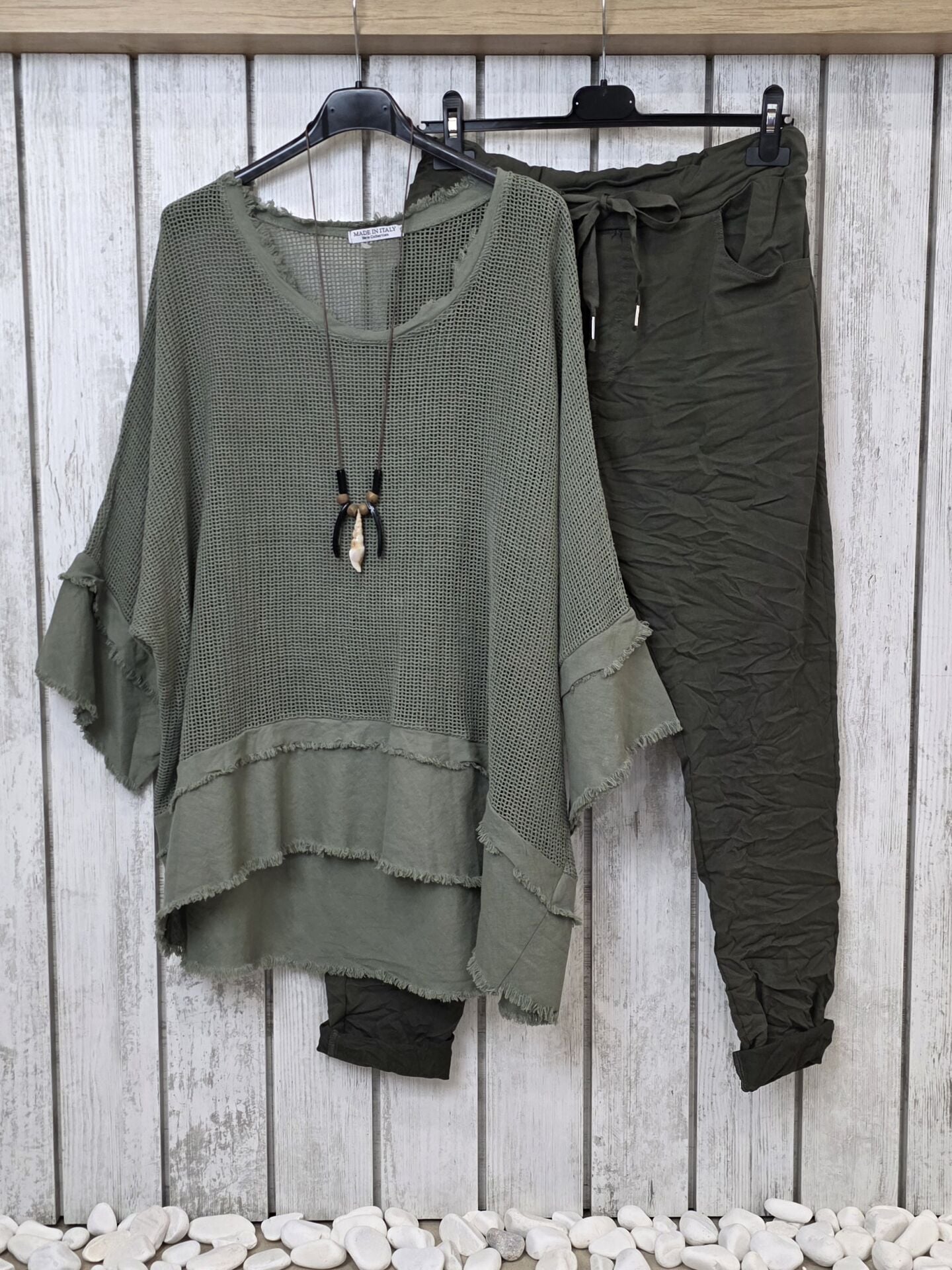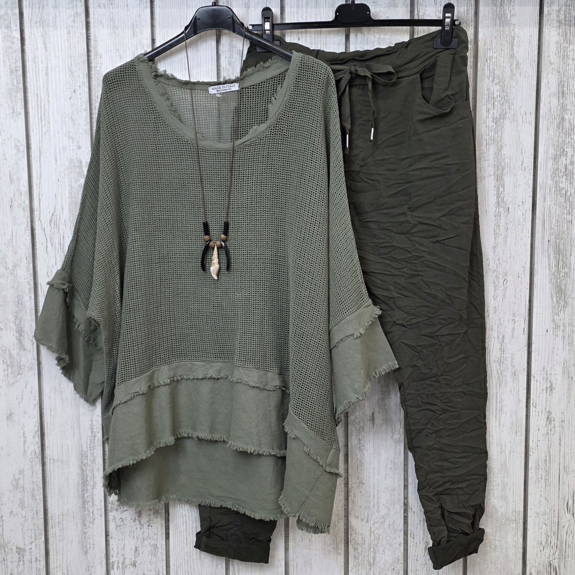 Büyük beden %100 organik İtalyan file haki bluz.