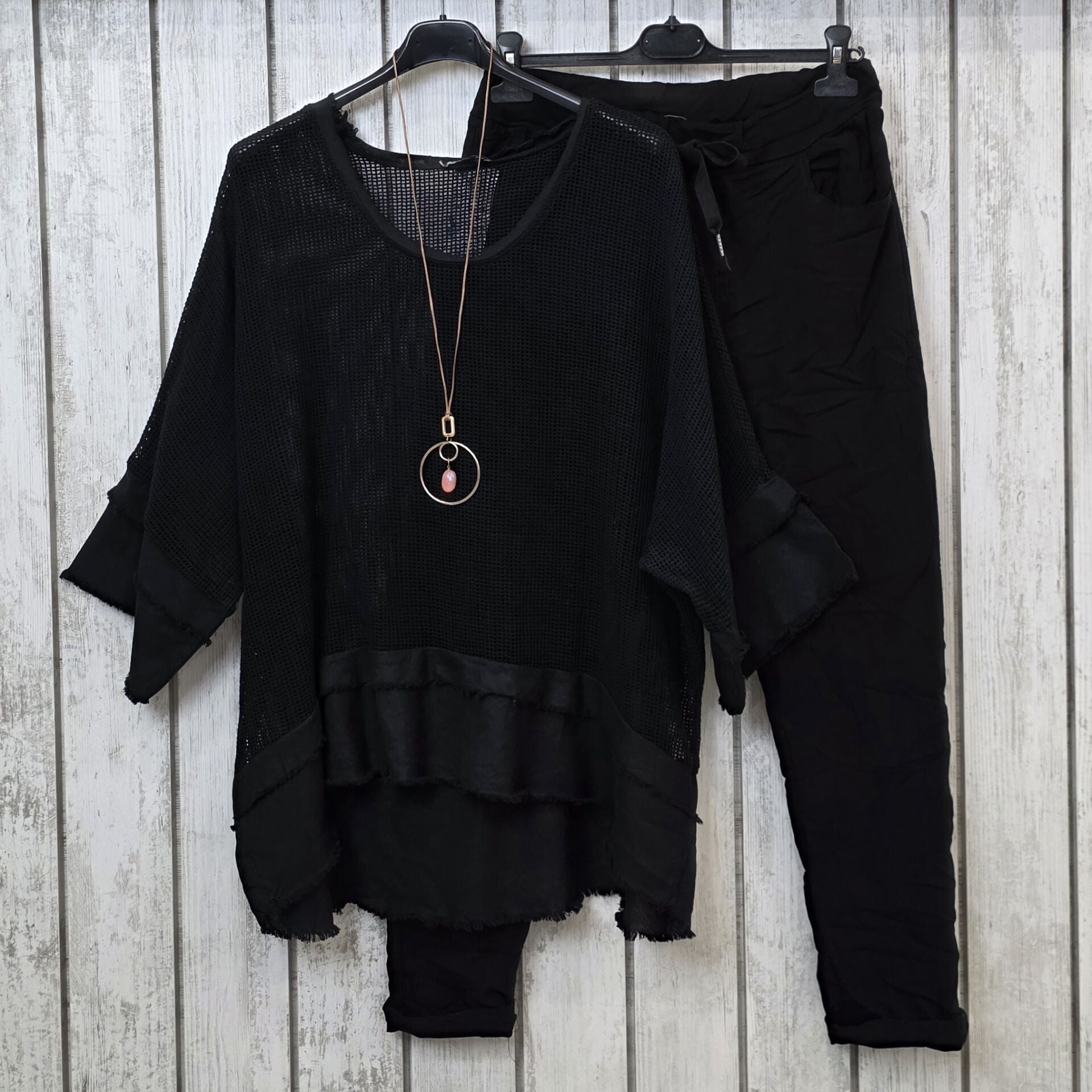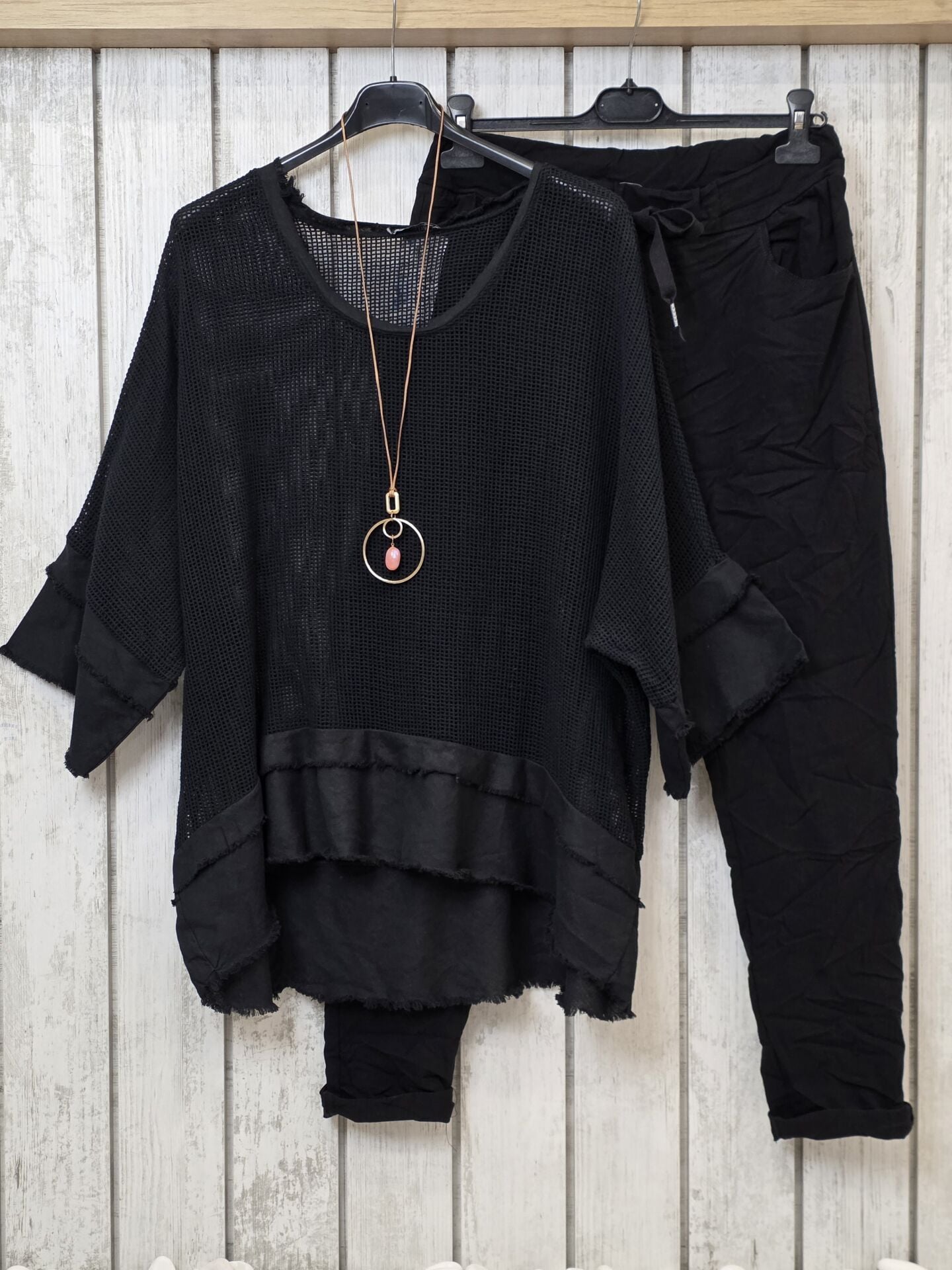 Büyük beden %100 organik İtalyan file siyah bluz.