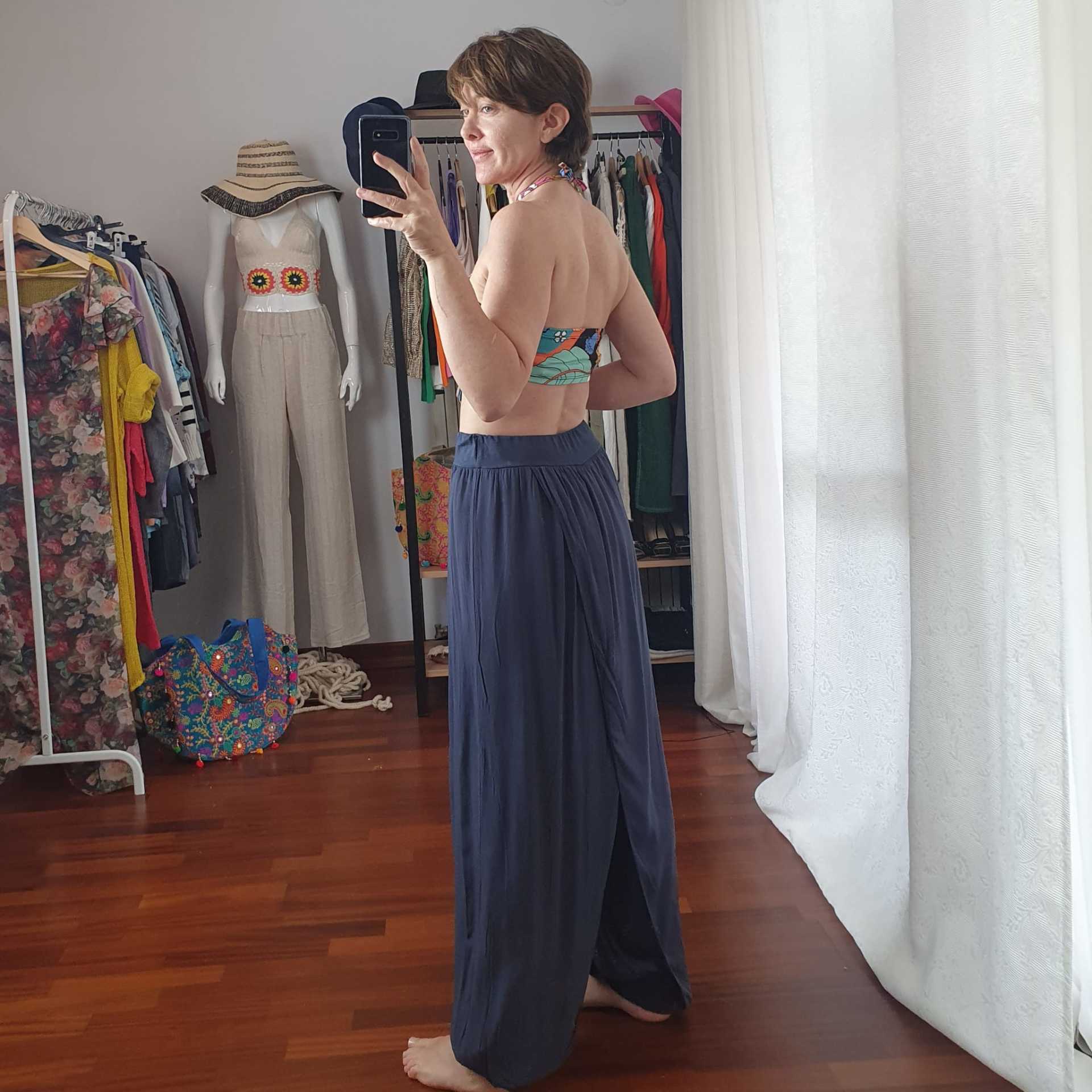 Yaprak kesim jarse crop bluz. Dijital çiçek baskı. Boyundan bağlamalı.