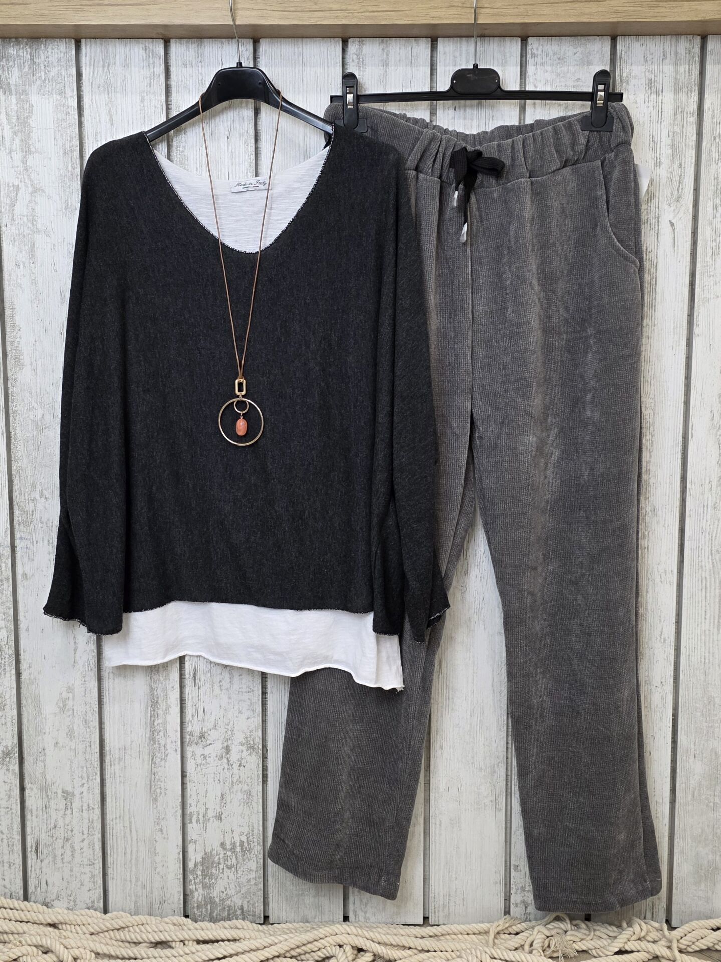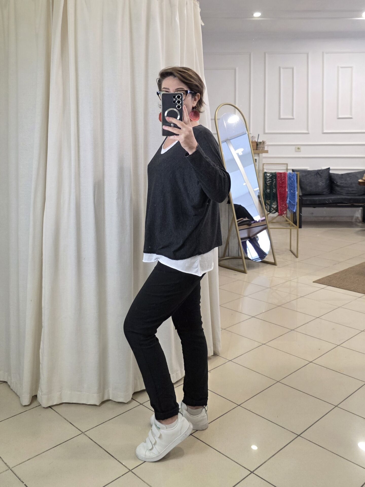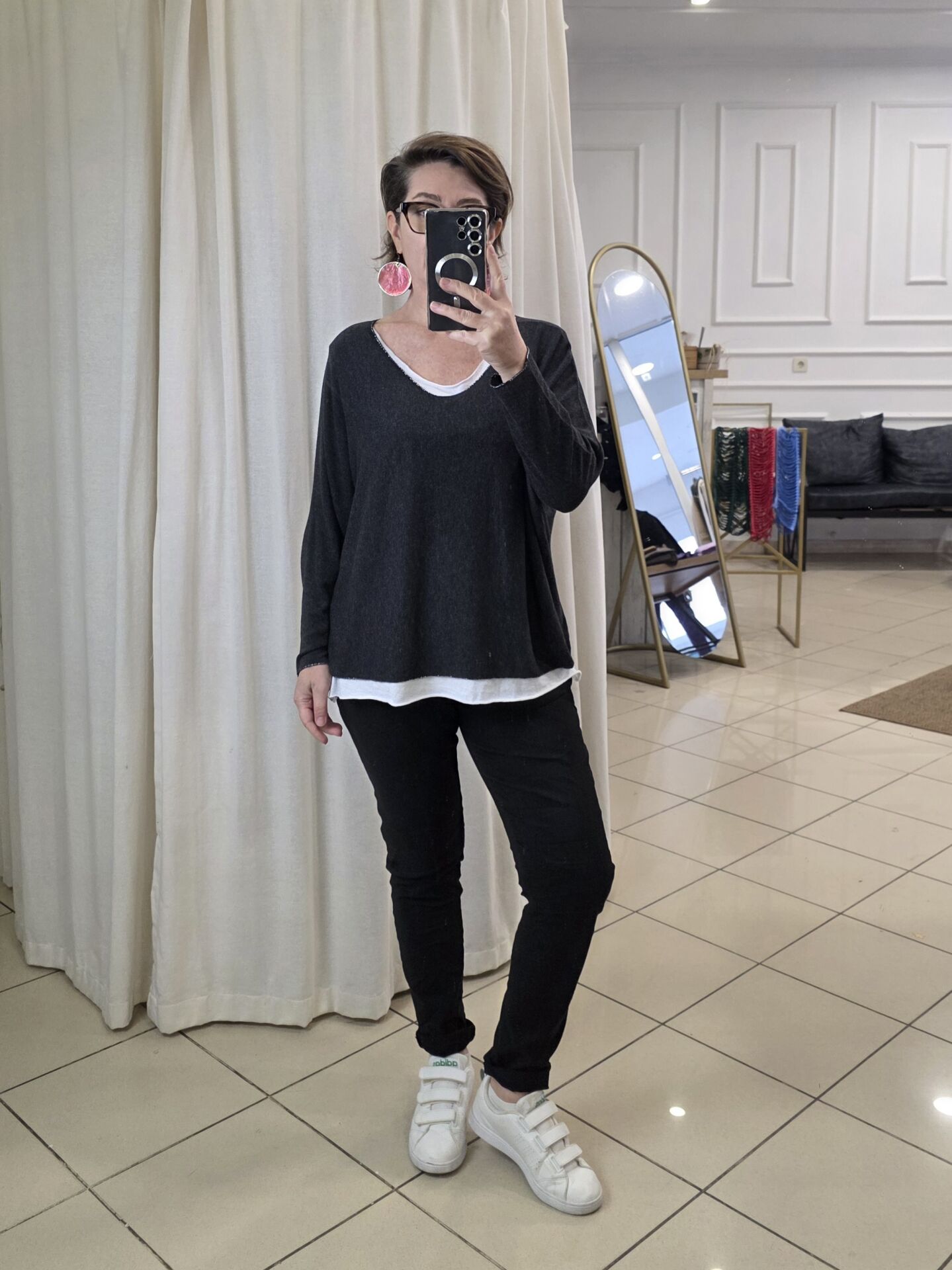 Çift Kat İtalyan Triko Bluz Antrasit Gri