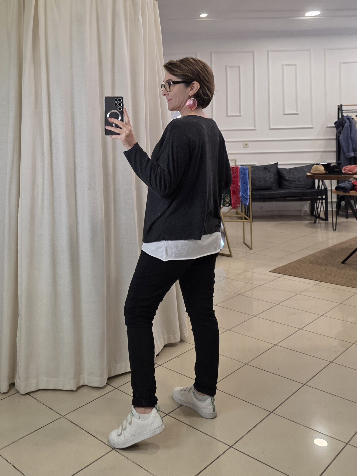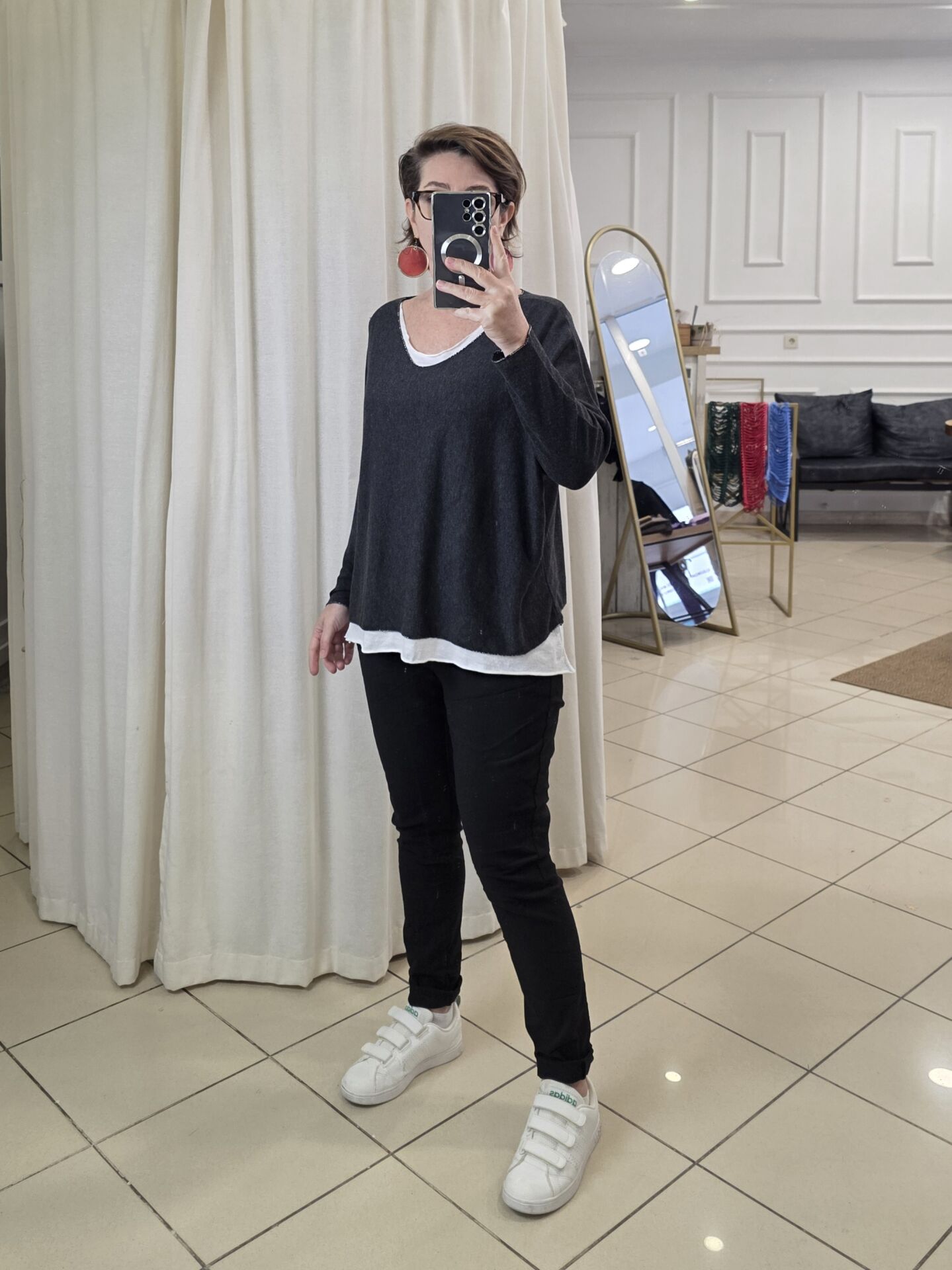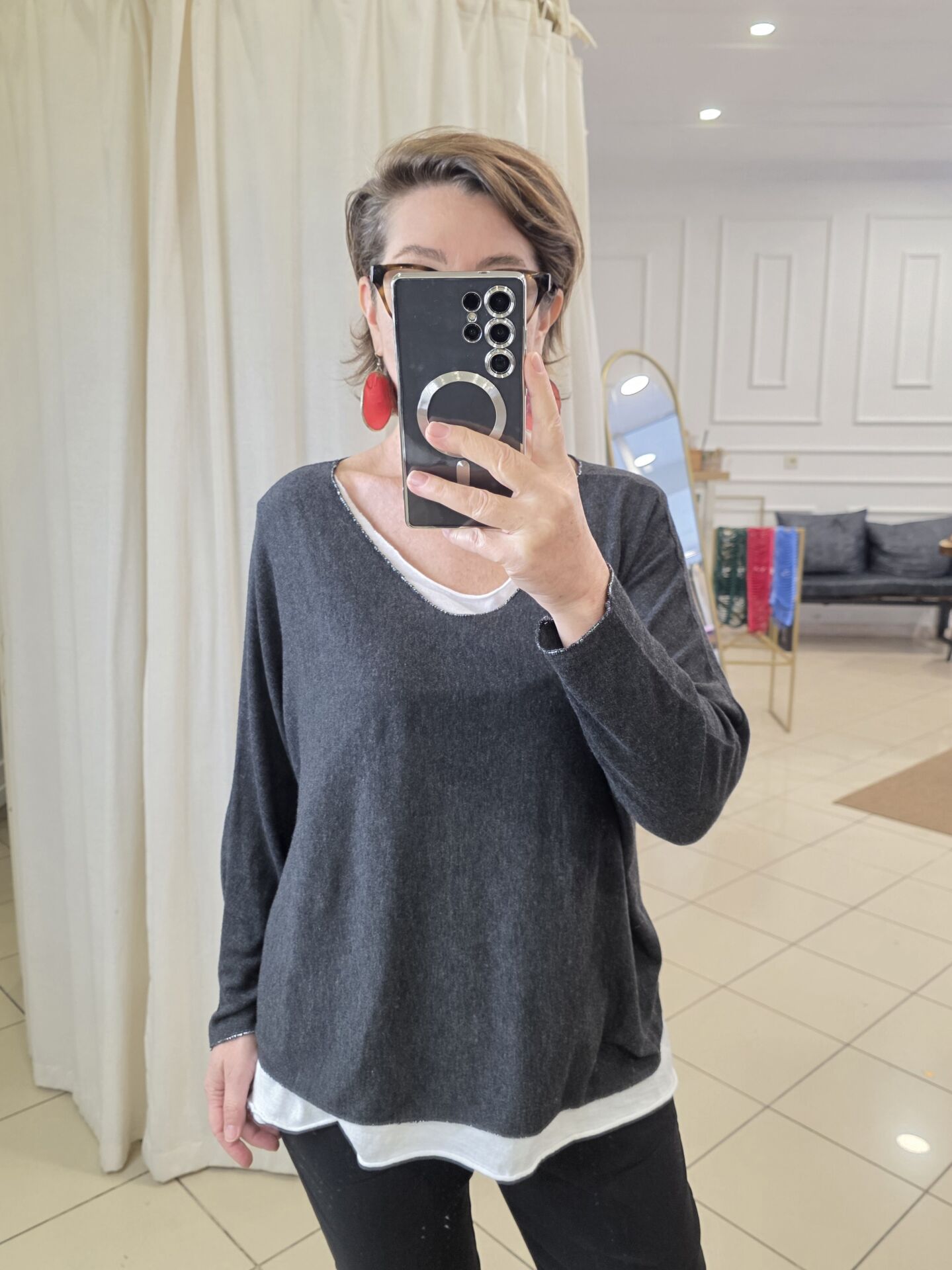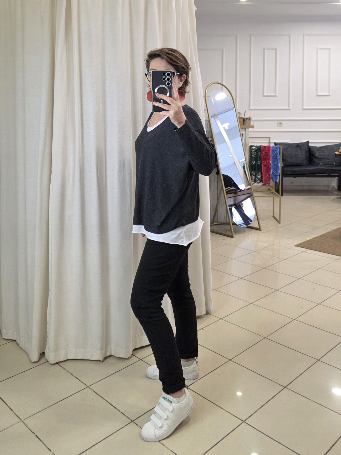 Çift Kat İtalyan Triko Bluz Antrasit Gri