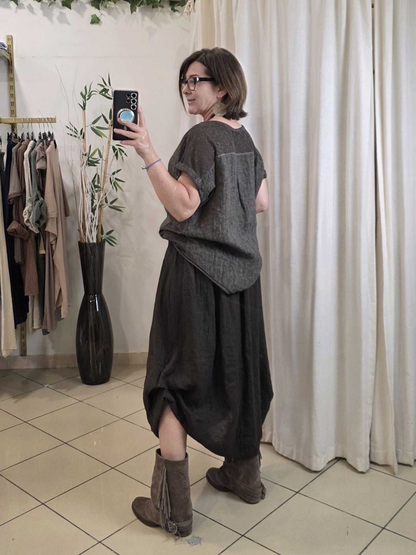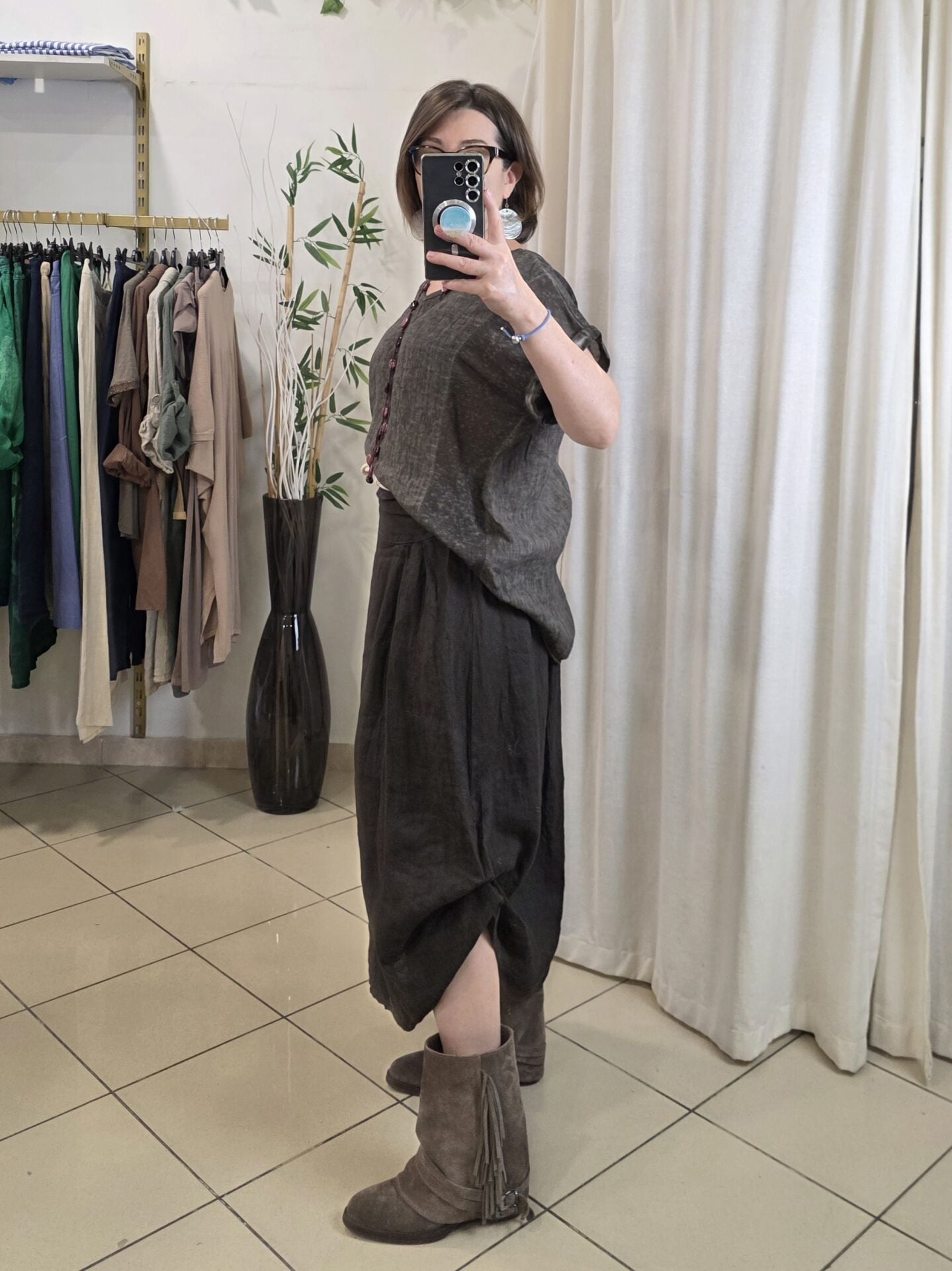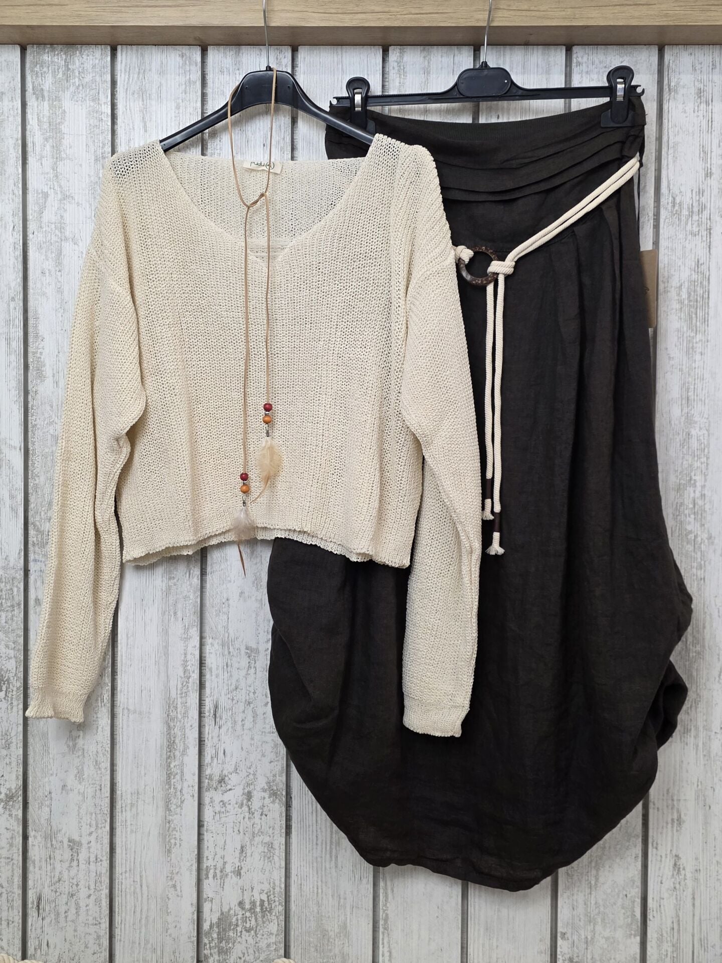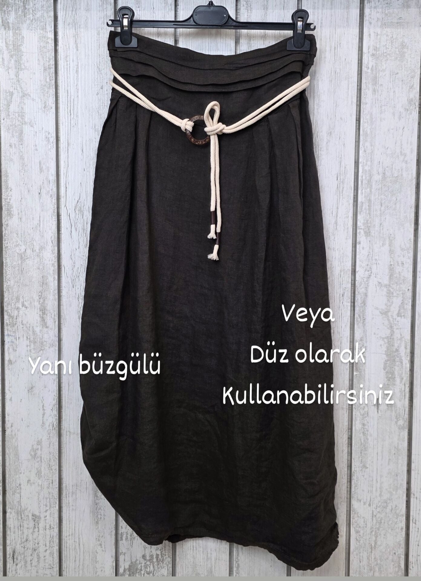 Çift Kullanımlı Kahverengi Keten Etek