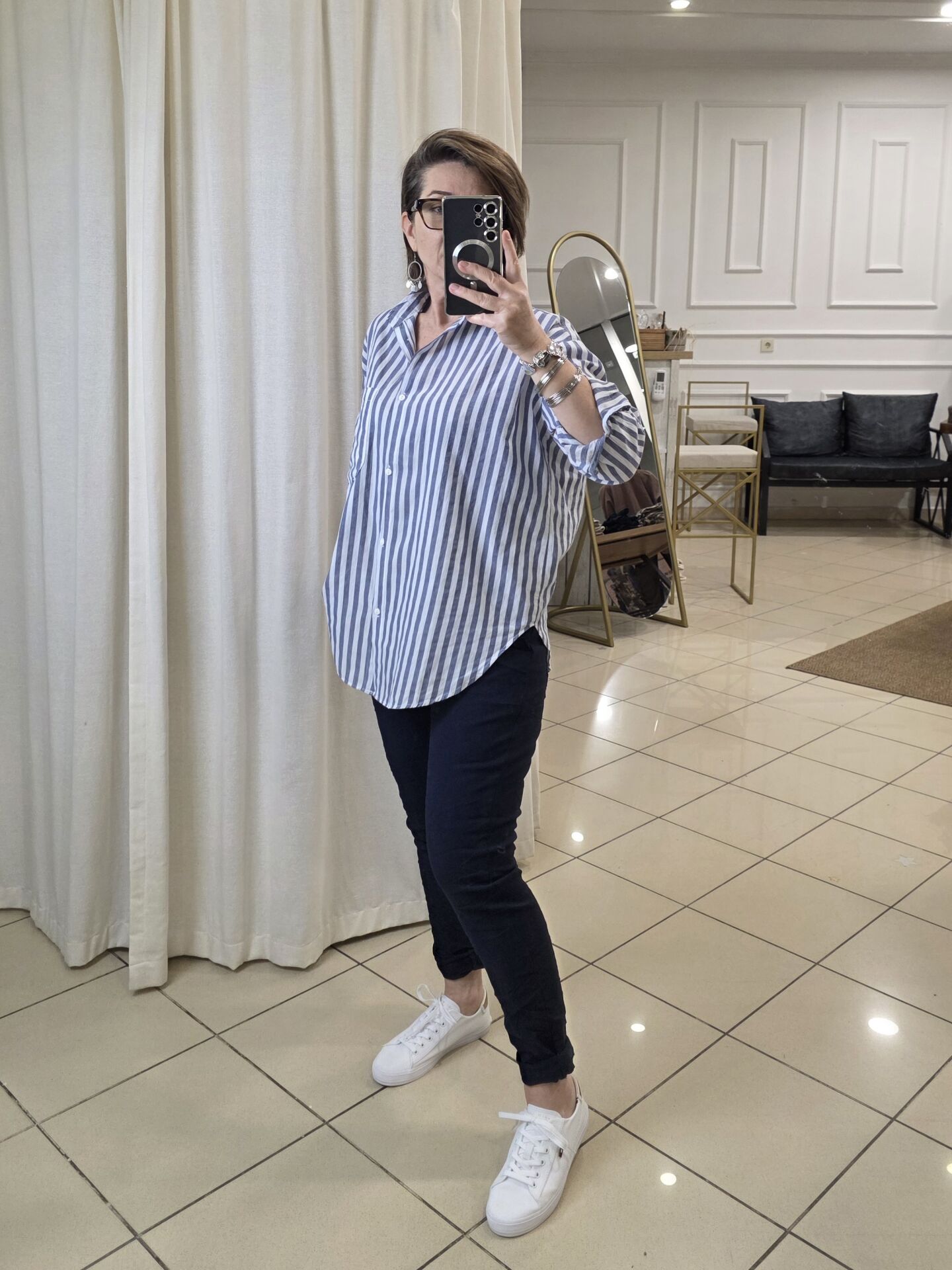 Önü düğmeli, göğüs üstü tek cepli gömlek.