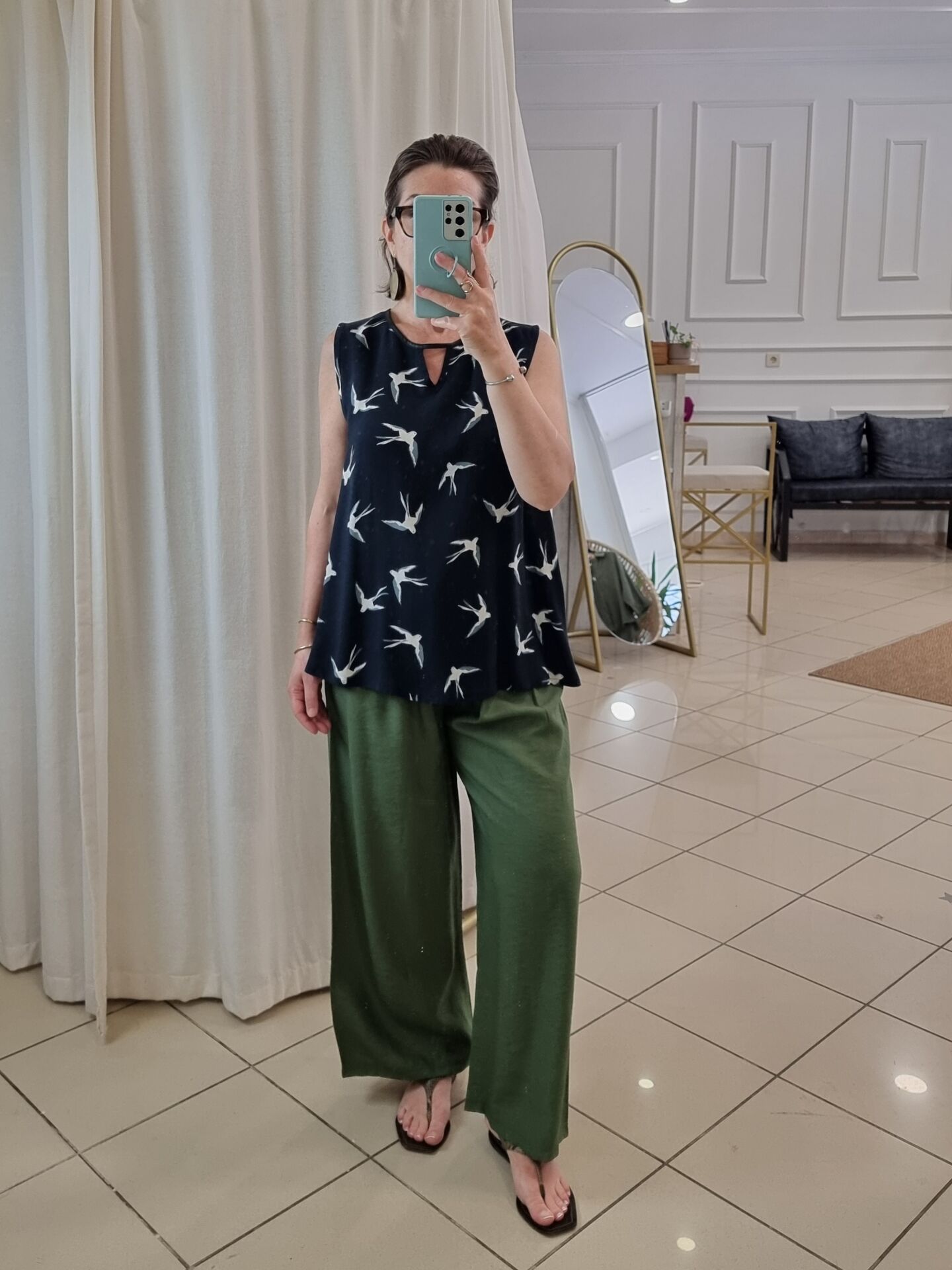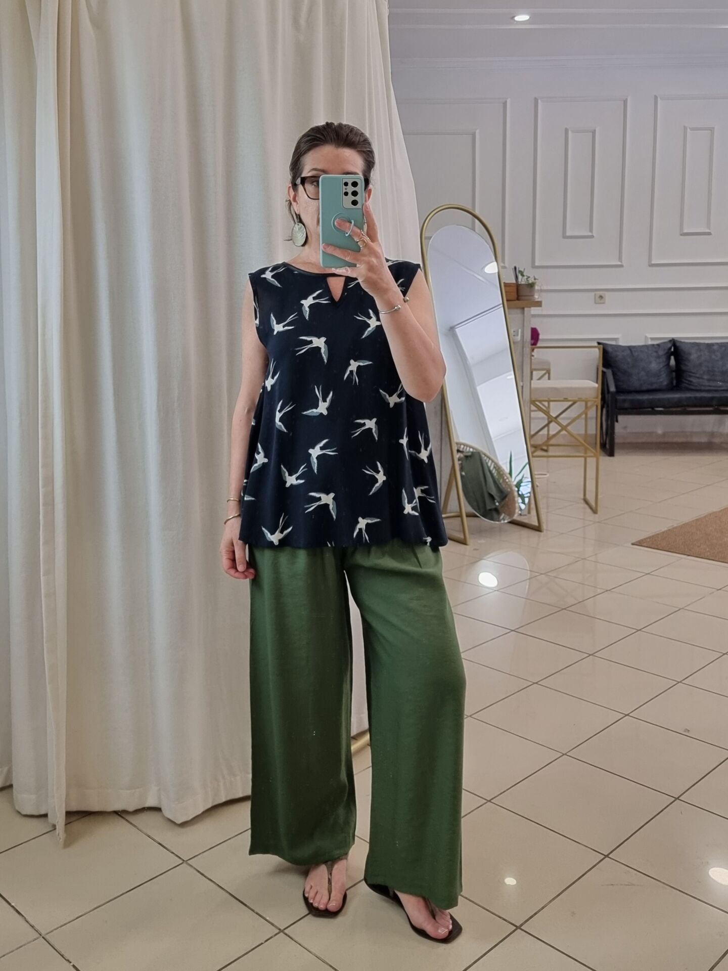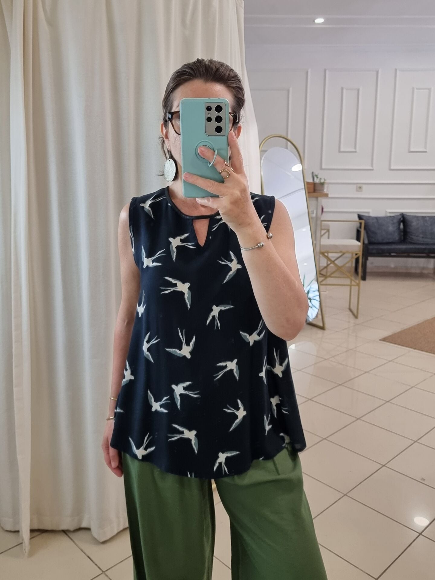 Deri Biyeli Viskon Atlet Kuş Desenli