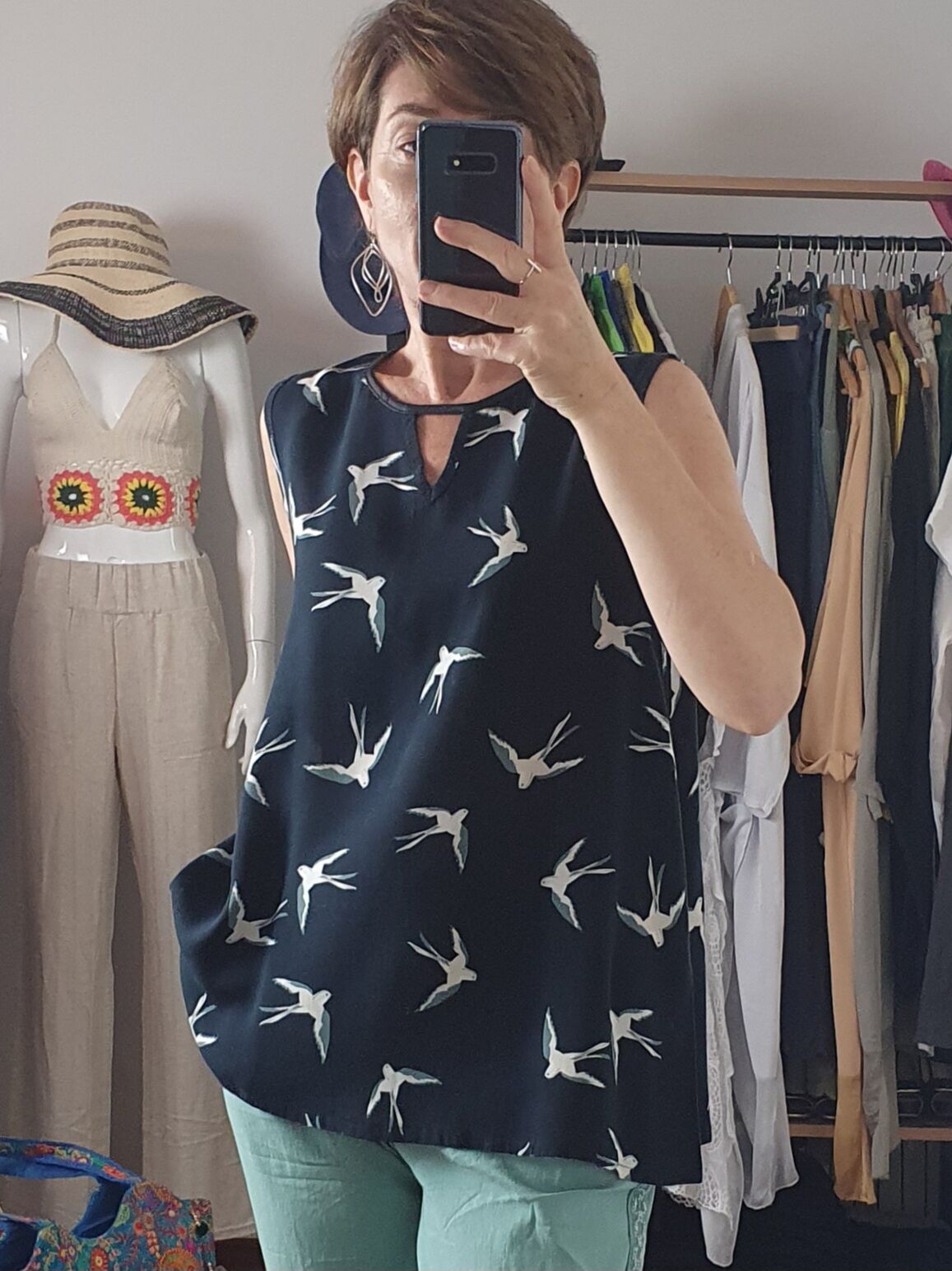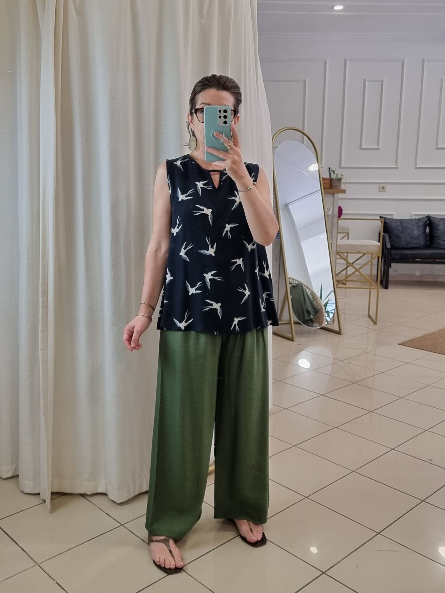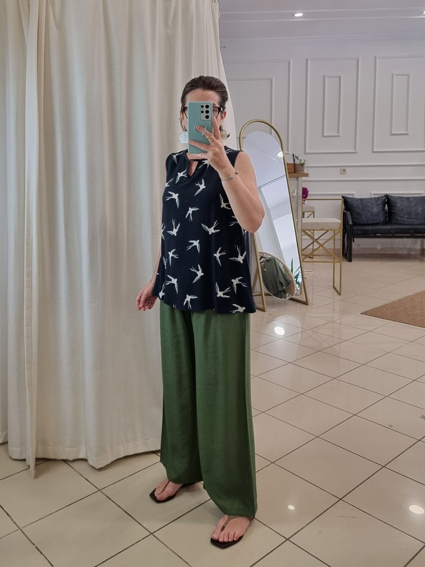 Deri Biyeli Viskon Atlet Kuş Desenli