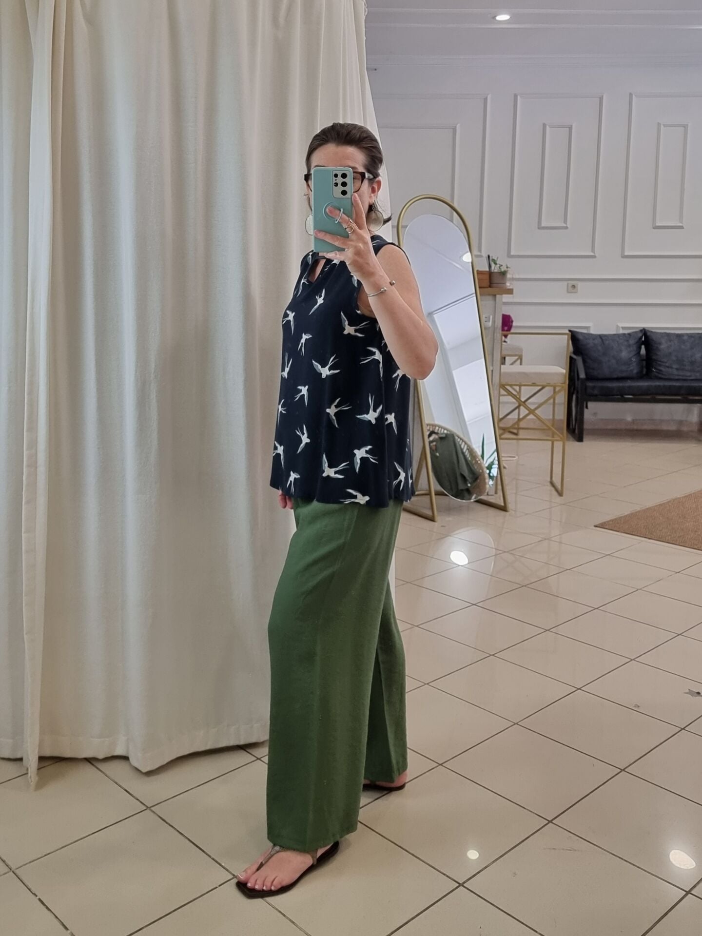 Deri biyeli viskon atlet, kuş desenli yapısıyla doğallığın zarafetini yansıtırken, yaka detaylarıyla sofistike bir hava kazandırıyor. Önü üçgen, arkası öpücük pencere detayı ile feminen bir dokunuş sunan bu atlet; yumuşak ve esnek viskon kumaşı sayesinde konforla şıklığı bir arada sunar. Verev kesimi sayesinde vücuda yapışmadan dökülen atlet, günlük stilinize farklılık katmak isteyen kadınlar için özgün bir tercih olur.