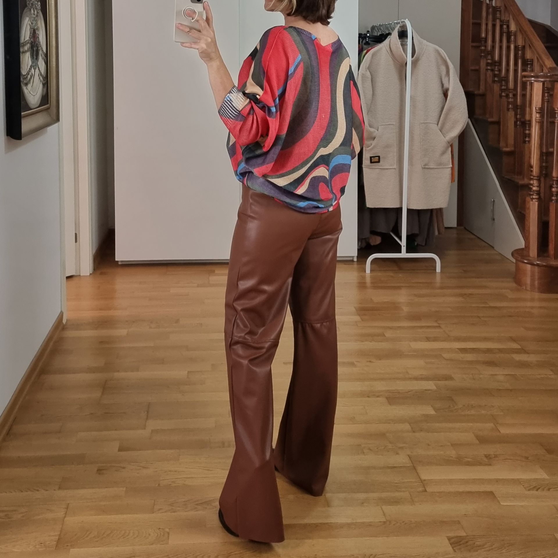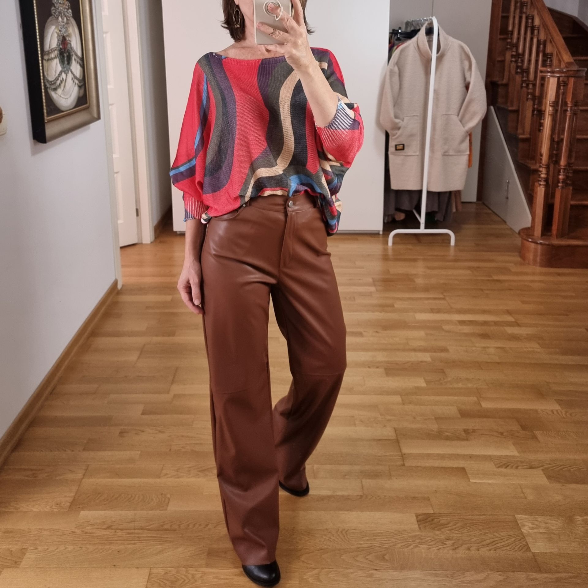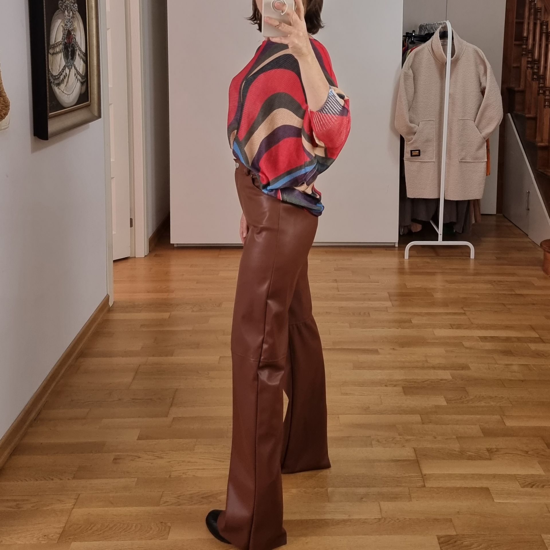 Kaliteli suni deri kahverengi pantolon.