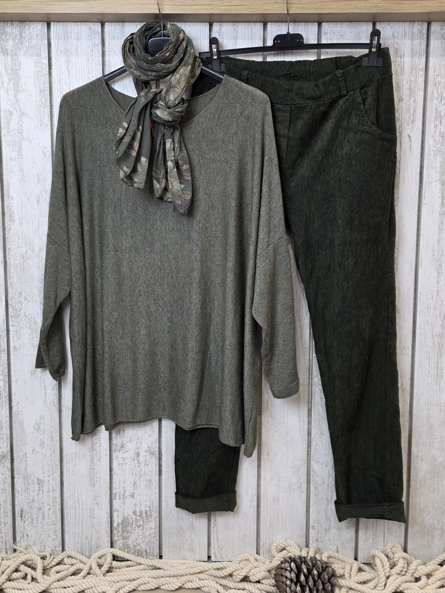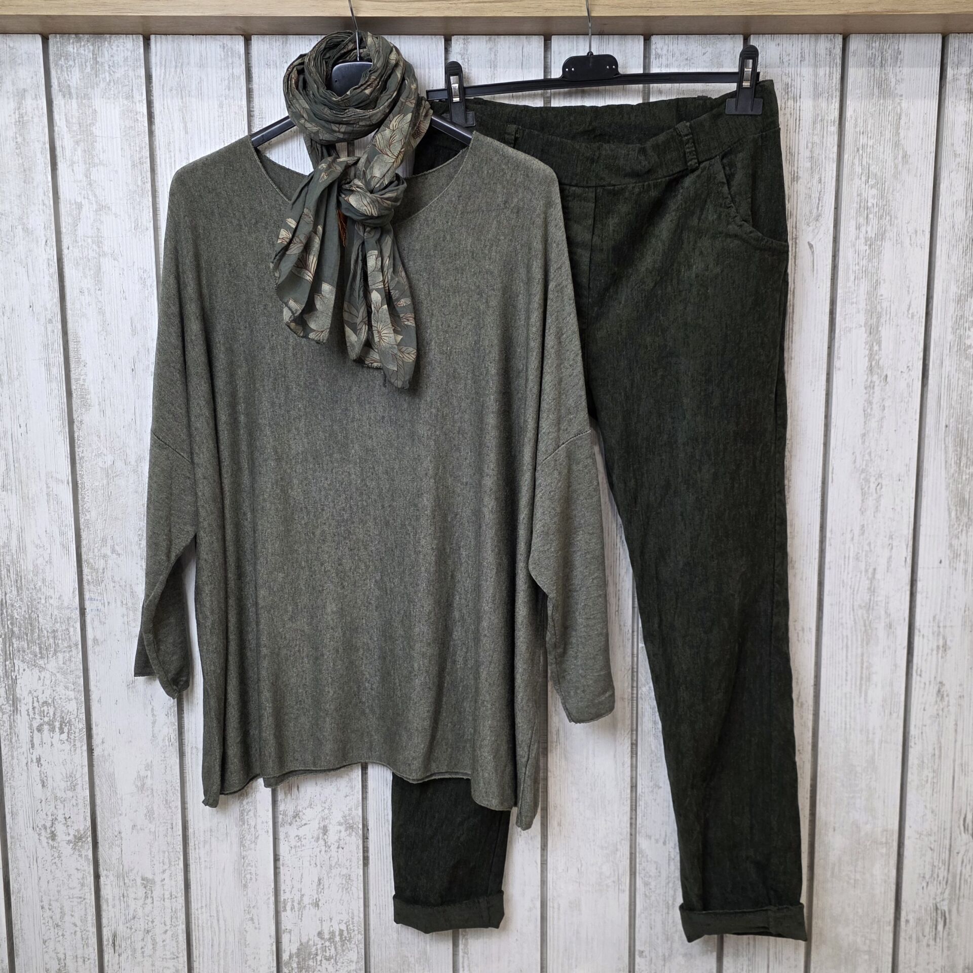 Desenli İnce Fular Haki
