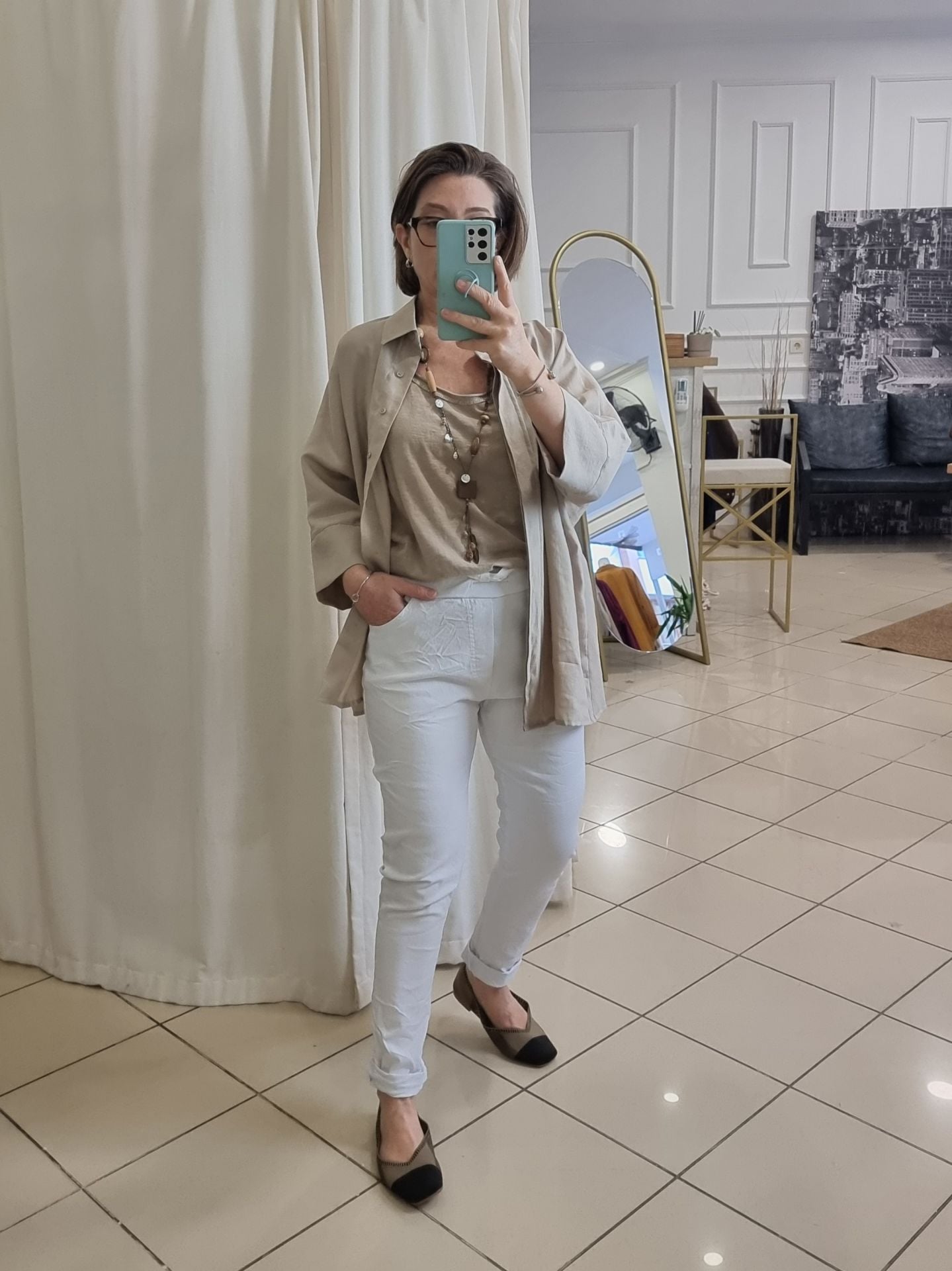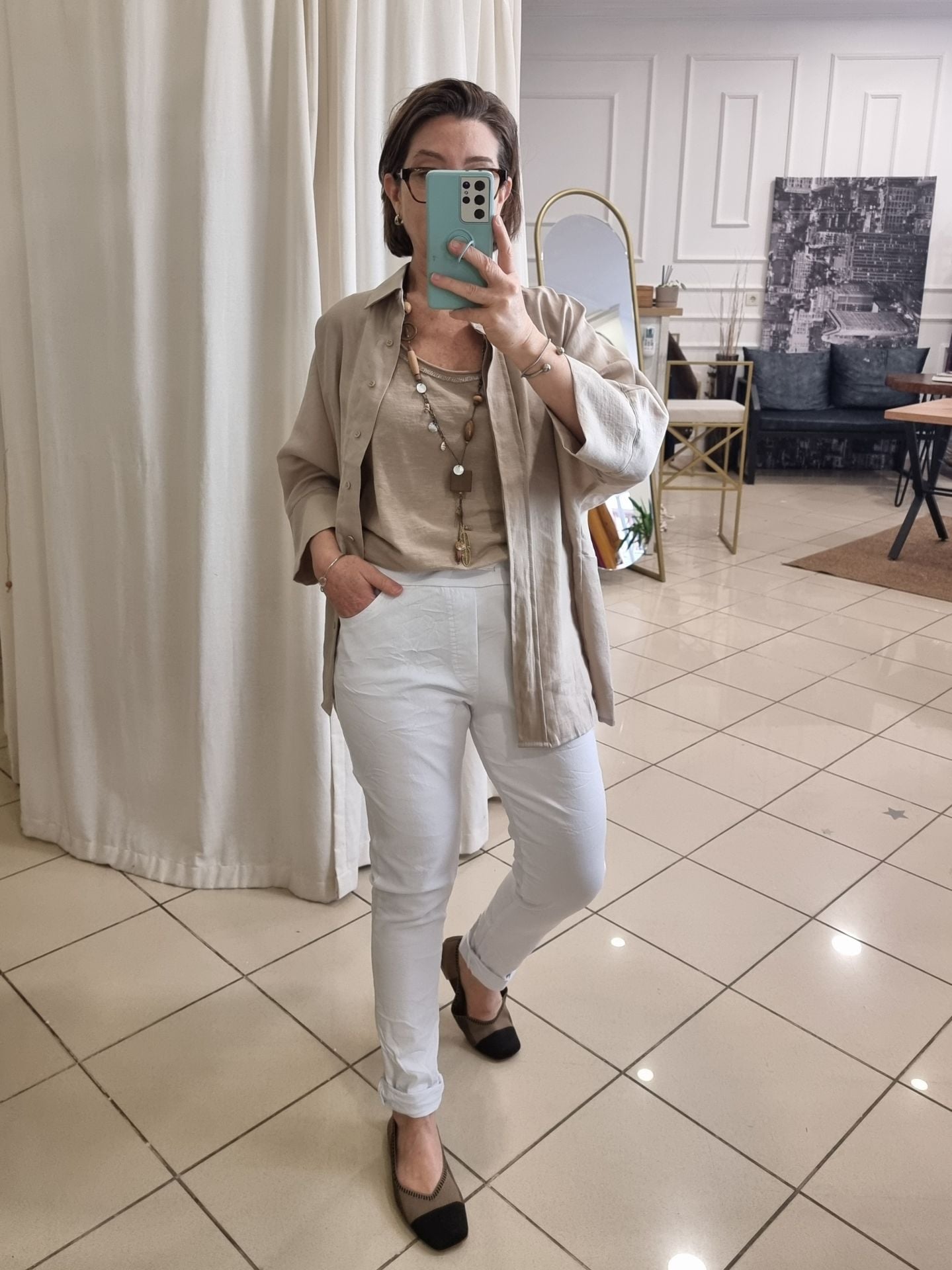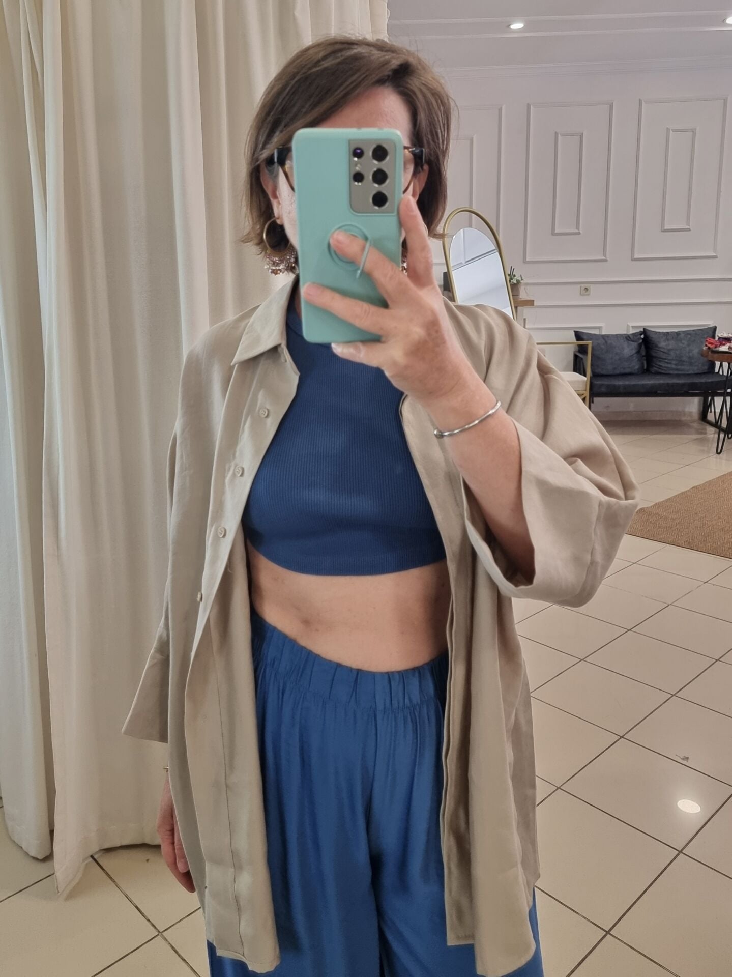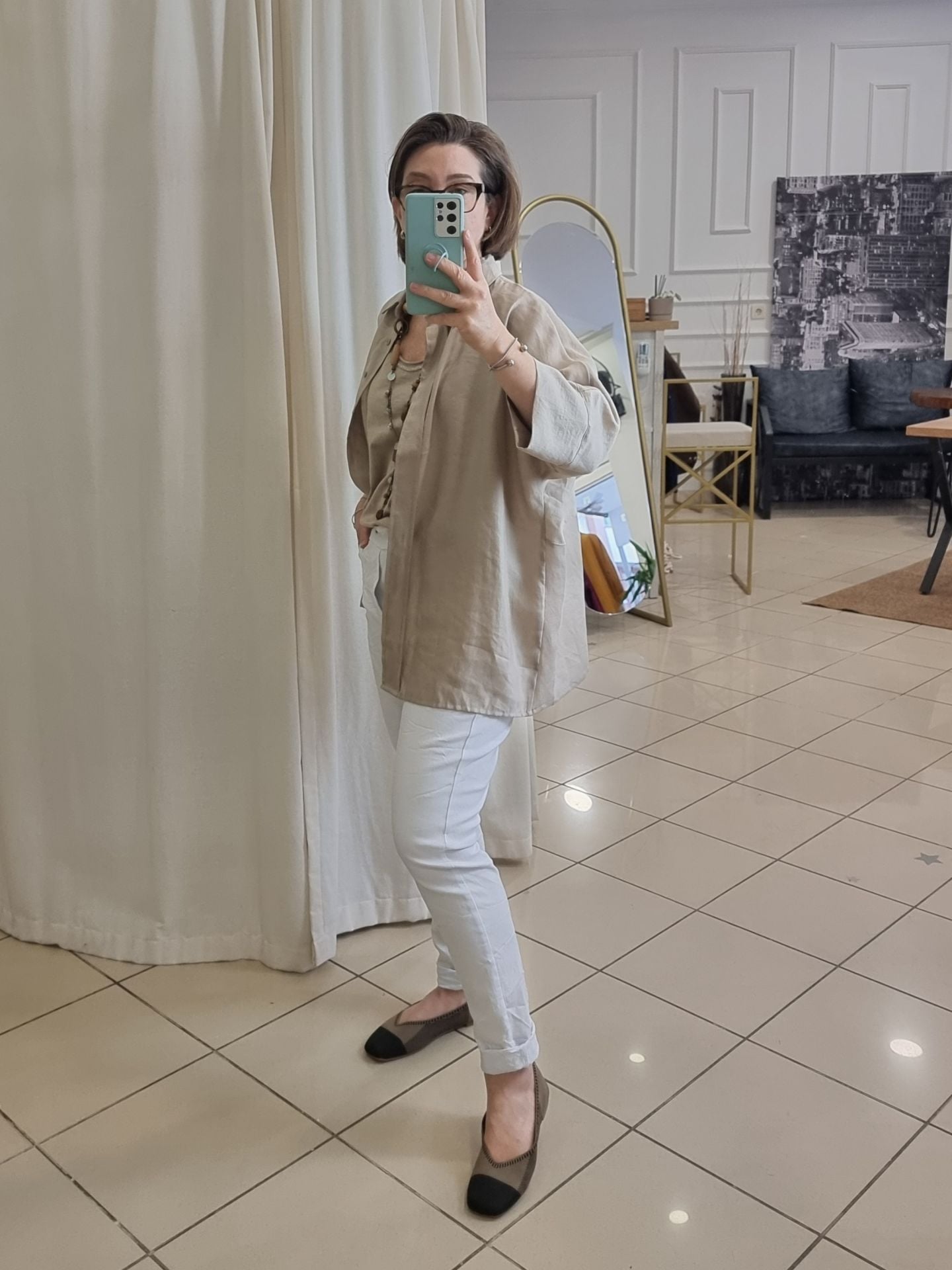 Dökümlü liyosel bej gömlek, zarif duruşuyla günlük ve ofis stiline kolayca uyum sağlar. %86 Lyocell içeriği sayesinde doğal ve nefes alabilir yapıda olan bu gömlek, aynı zamanda çevre dostudur. Gizli patlı düğme detayı ve bol kesimiyle sade ama özenli bir stil sunar. Eksik kol yapısı ve düz kesim etek boyu, minimal bir şıklık arayan kadınlar için idealdir. Farklı beden seçenekleriyle her vücut tipi için uyumlu ve rahattır.