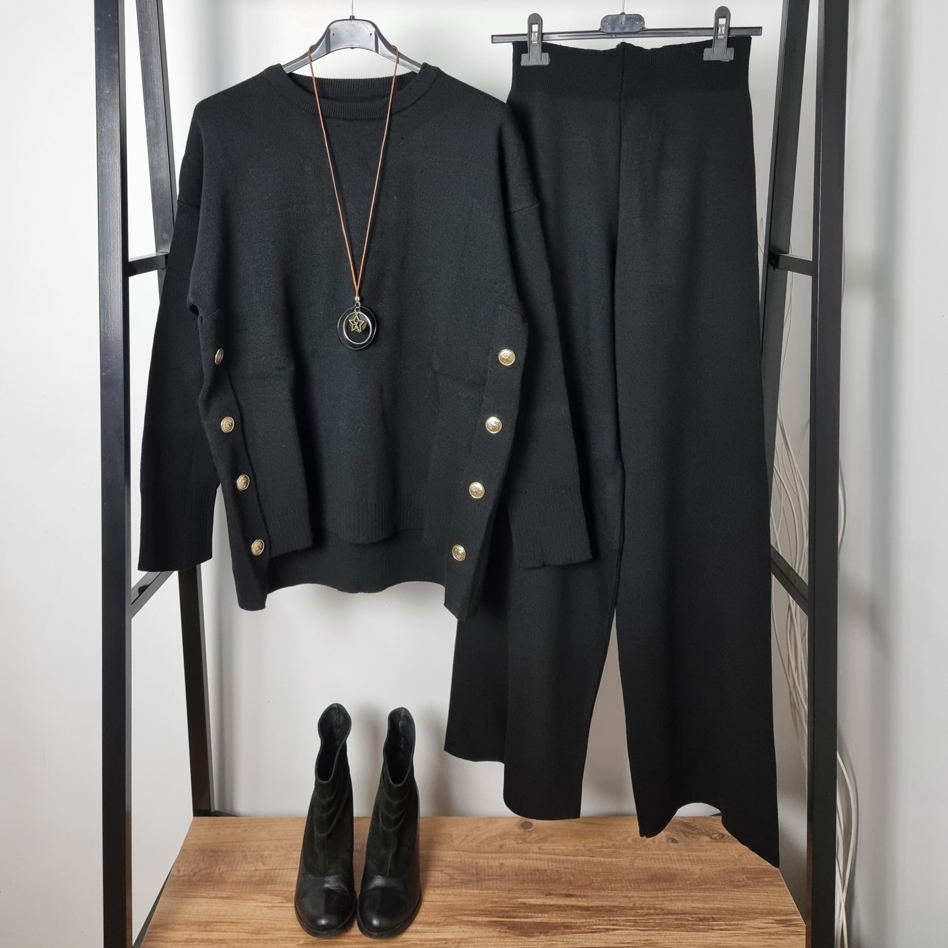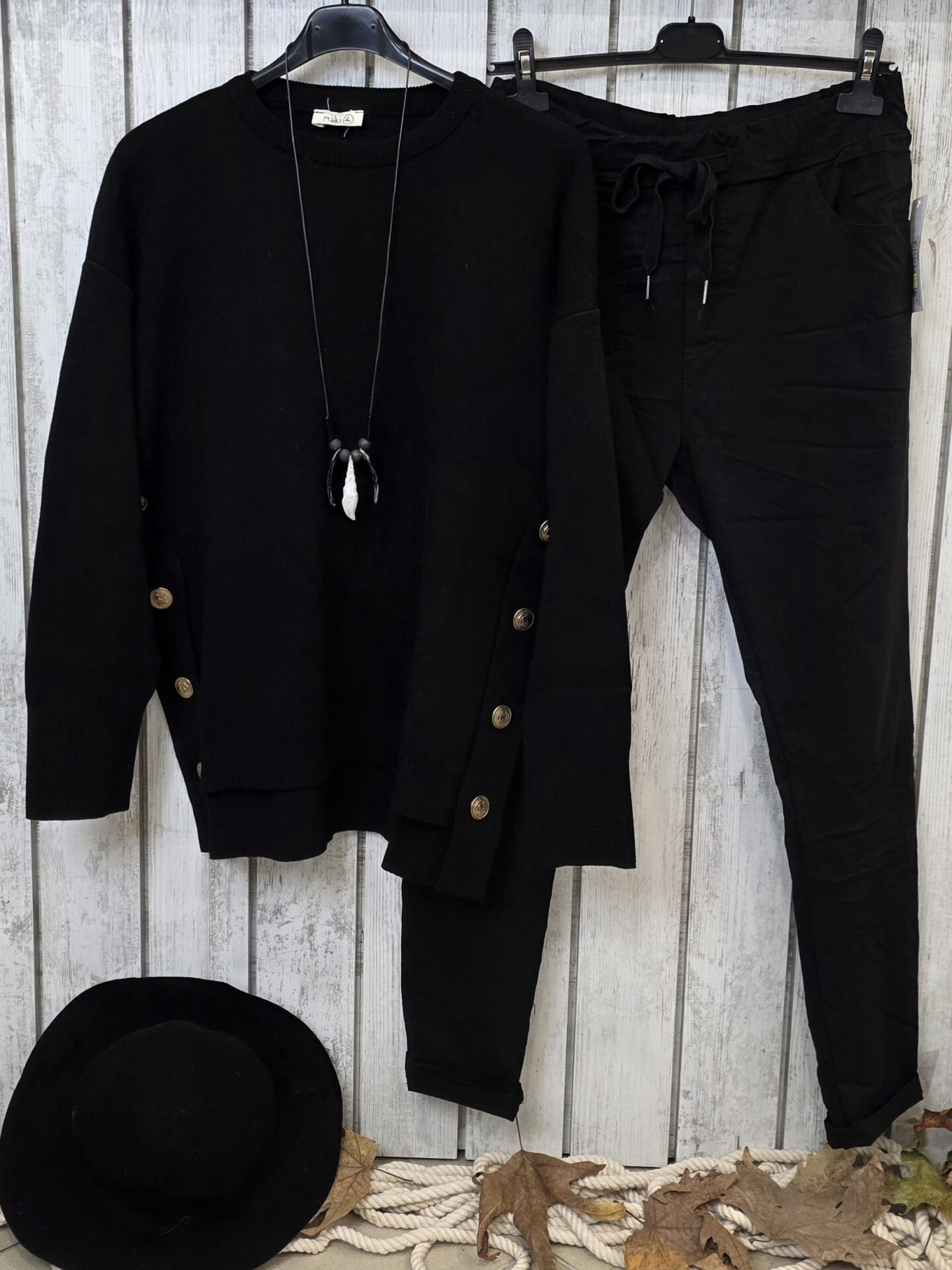 Büyük Beden Düğme Detaylı Siyah Triko Kazak