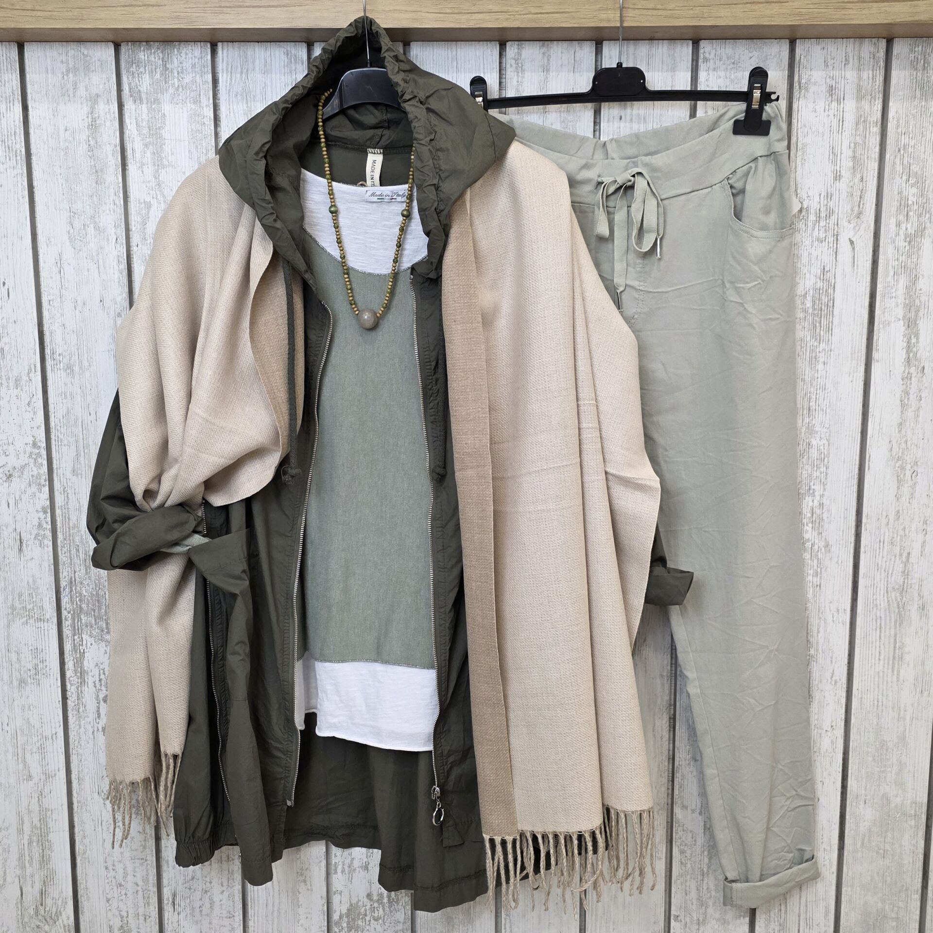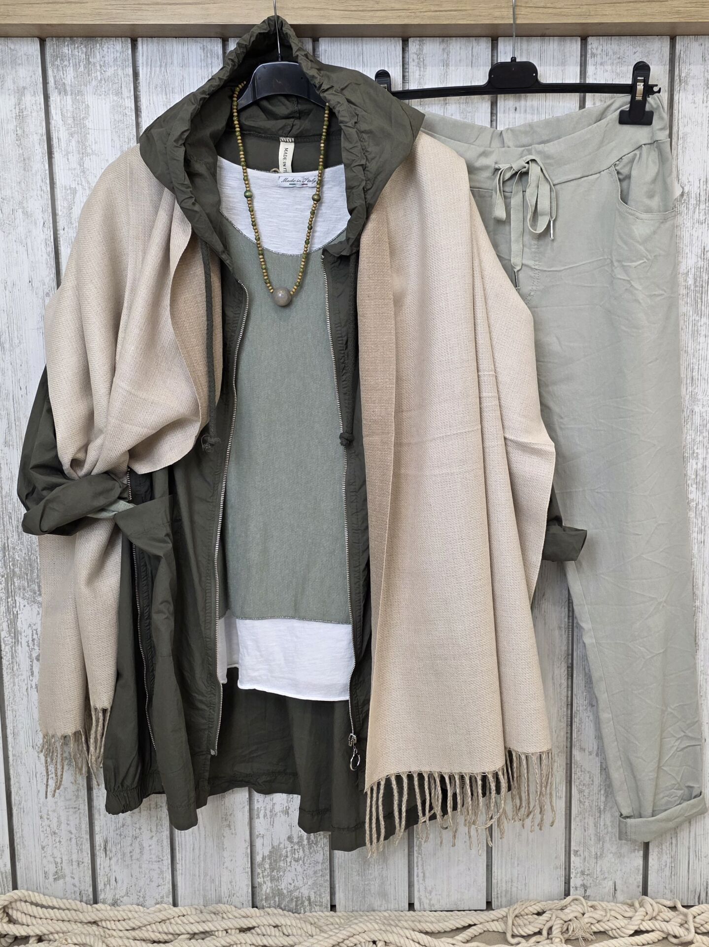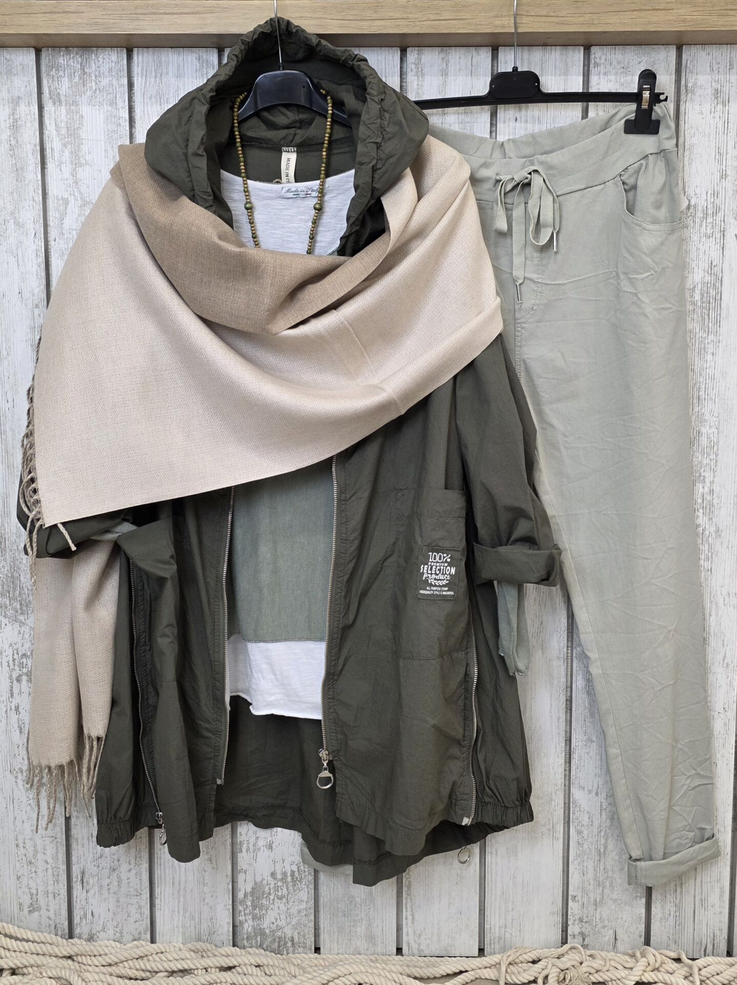 Çift renk kullanımlı bej kaşmir şal.
