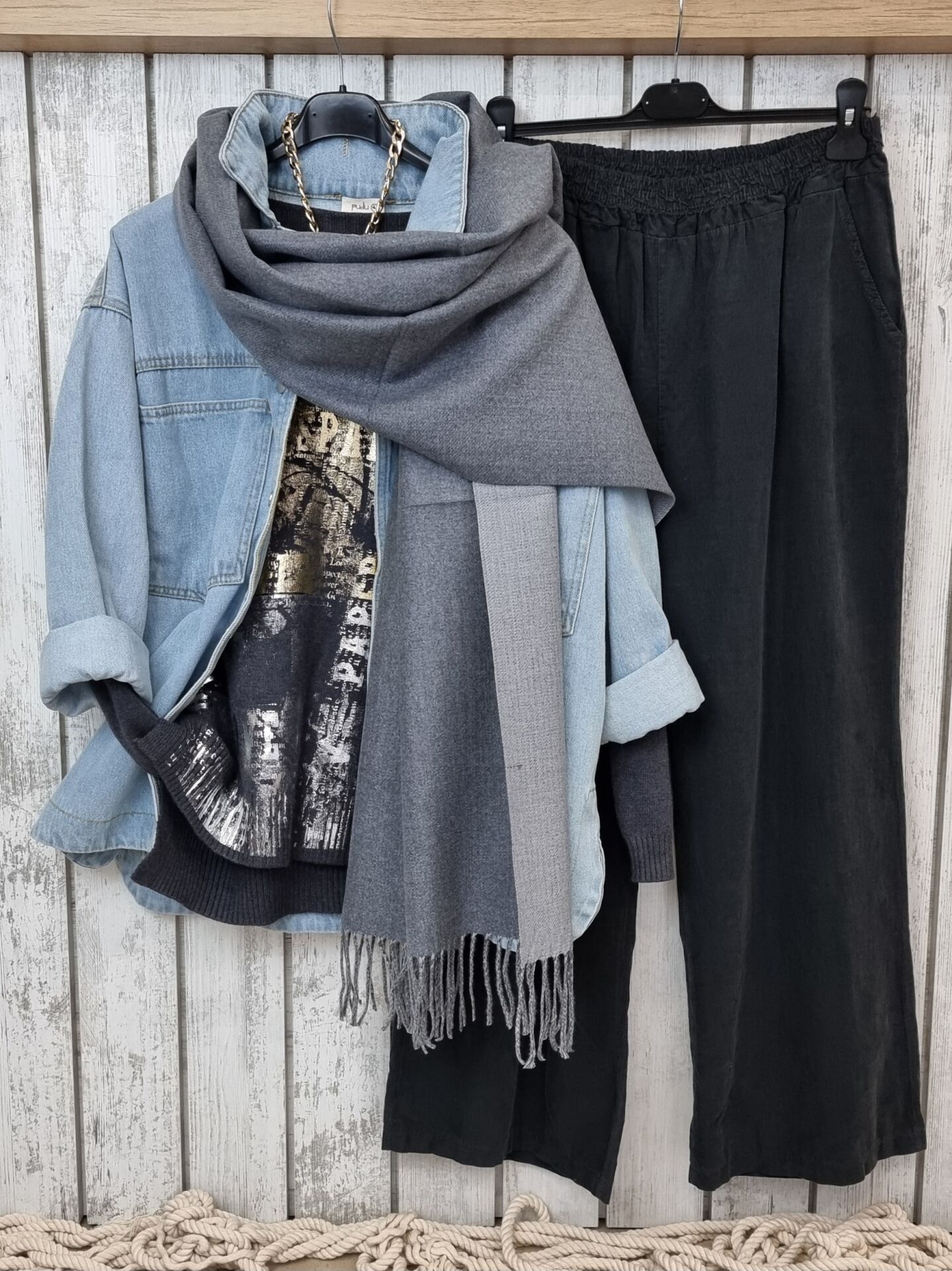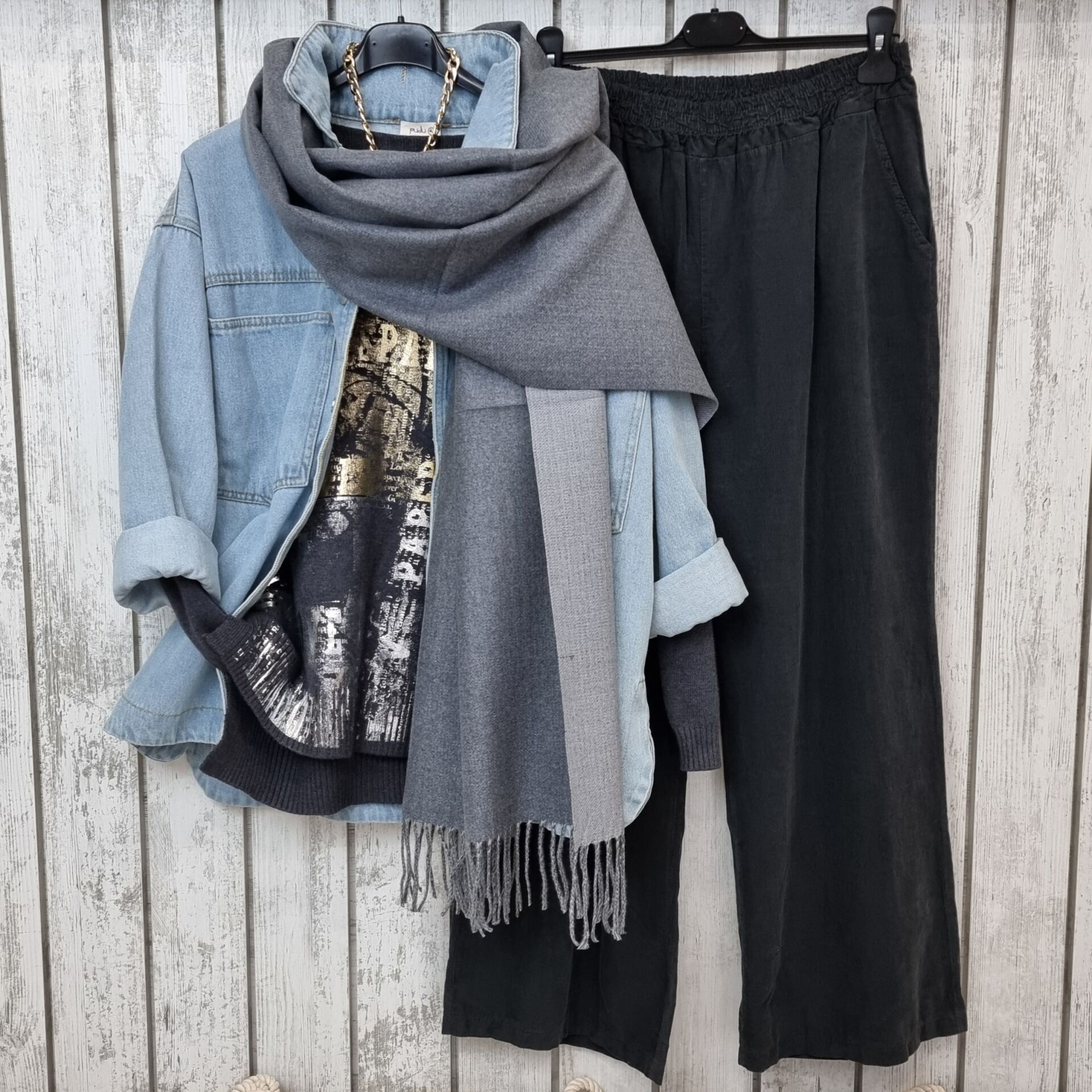 Çift Renk Kullanımlı Kaşmir Şal Gri