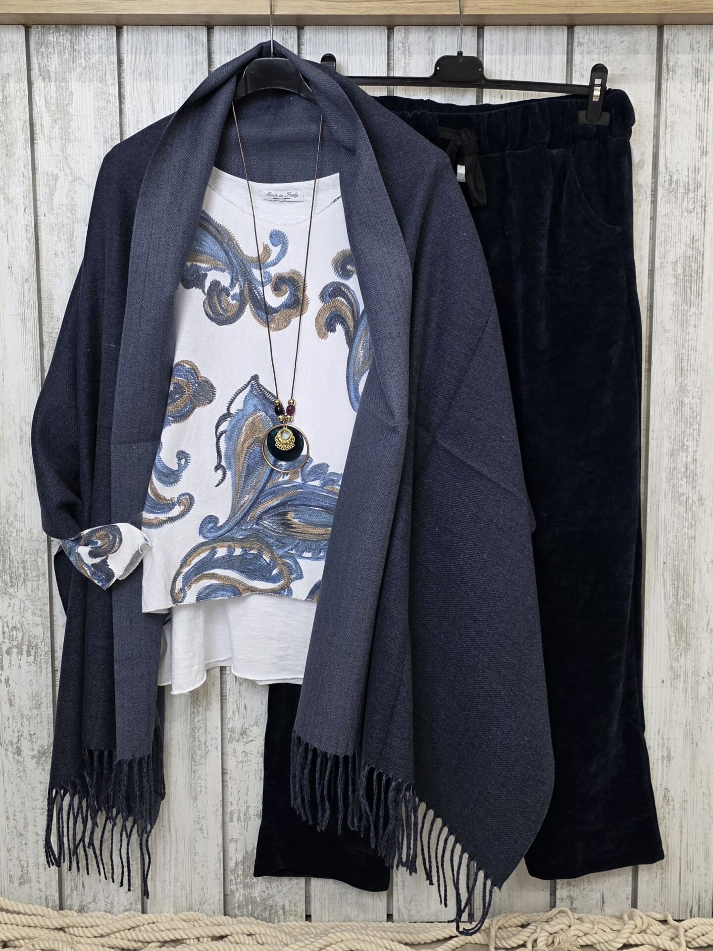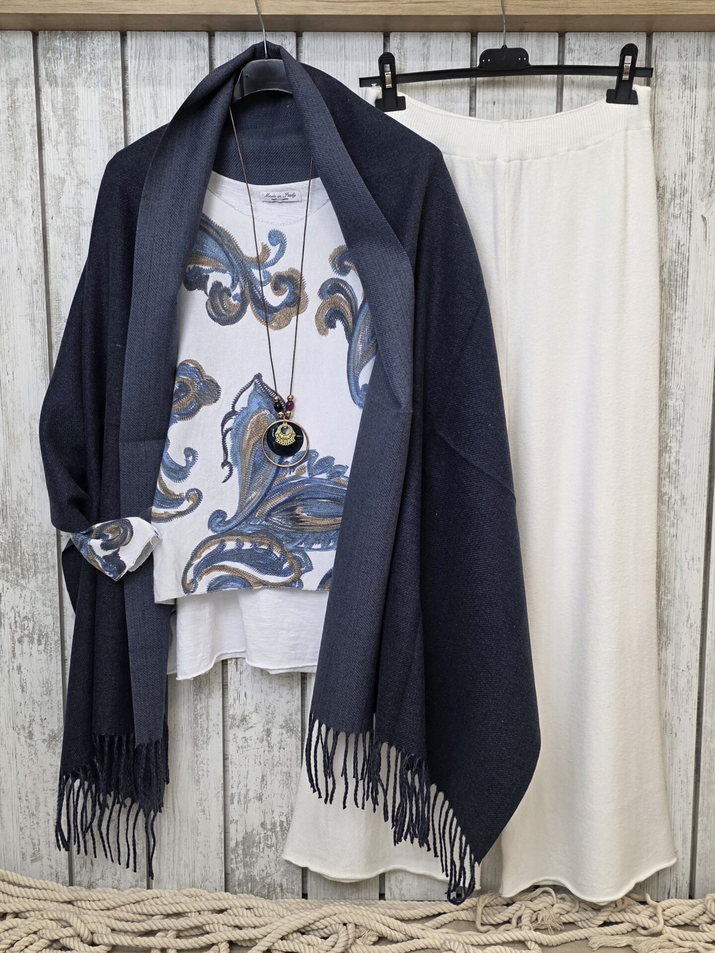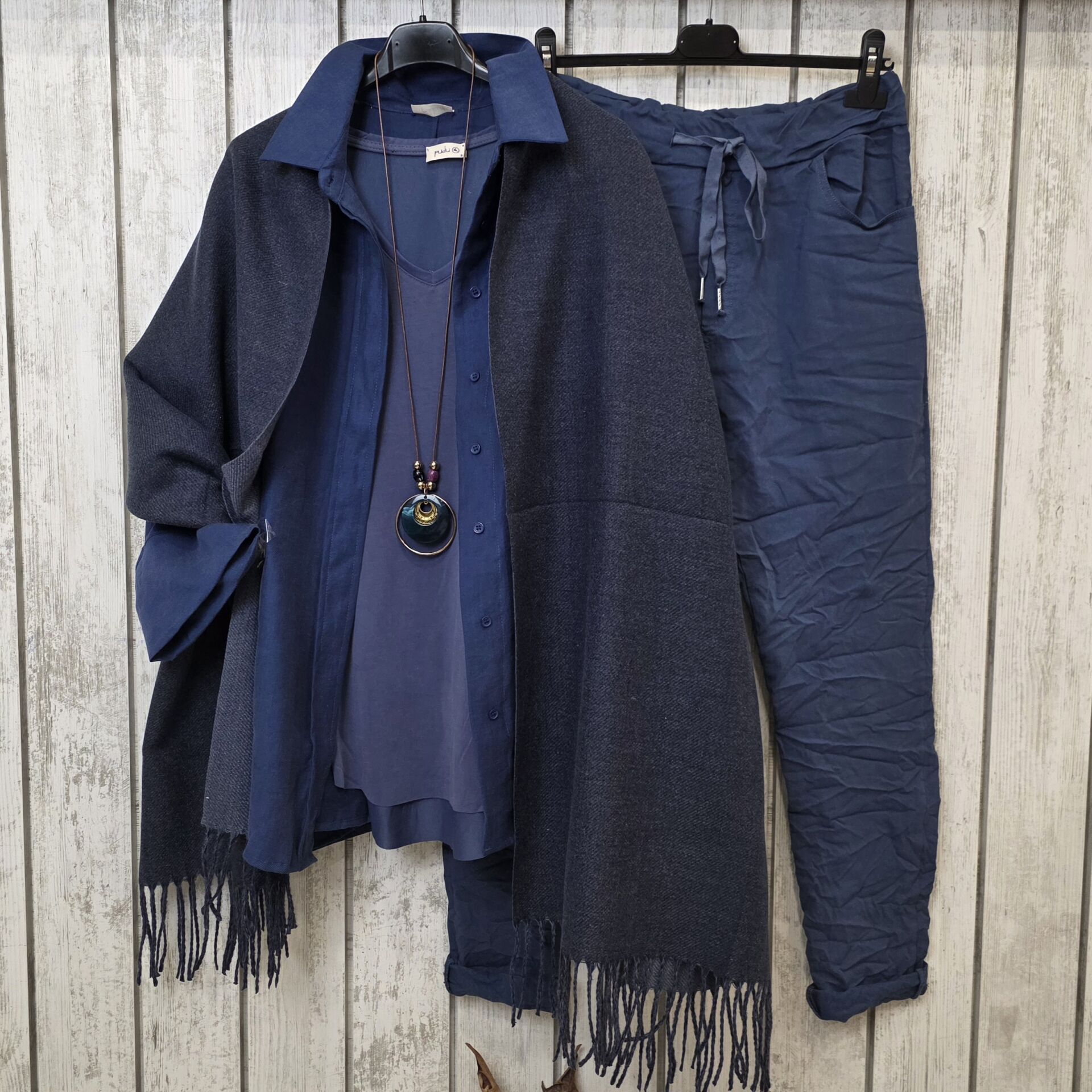 Çift Renk Kullanımlı Kaşmir Lacivert Şal