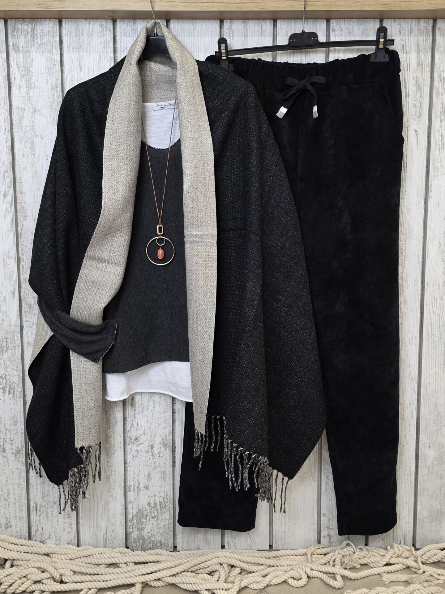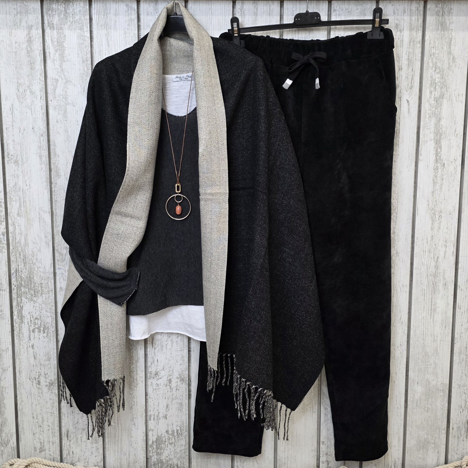 Çift Renk Kullanımlı Kaşmir Siyah Şal