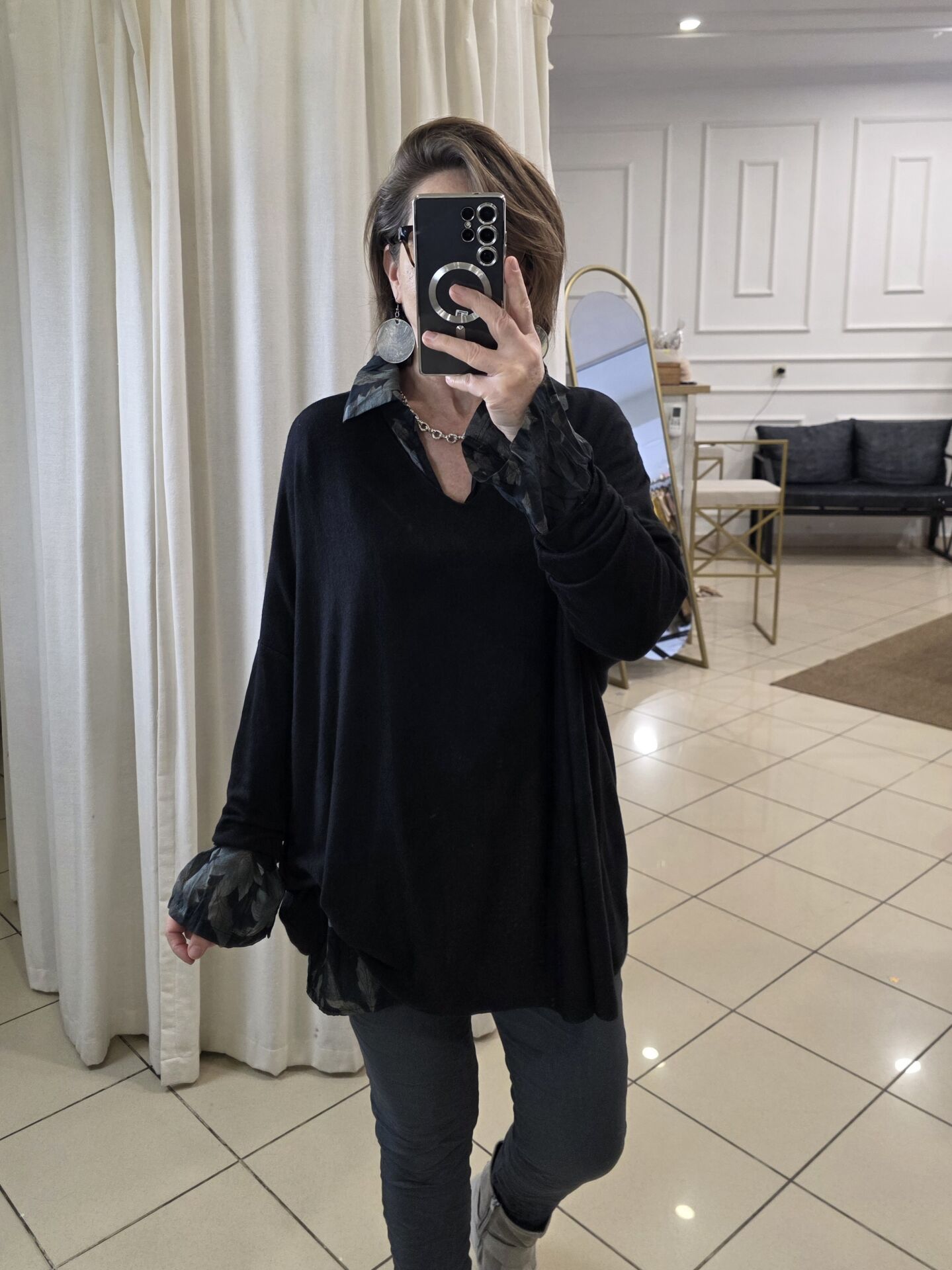 Düz Kesim V Yaka İtalyan Siyah Kazak