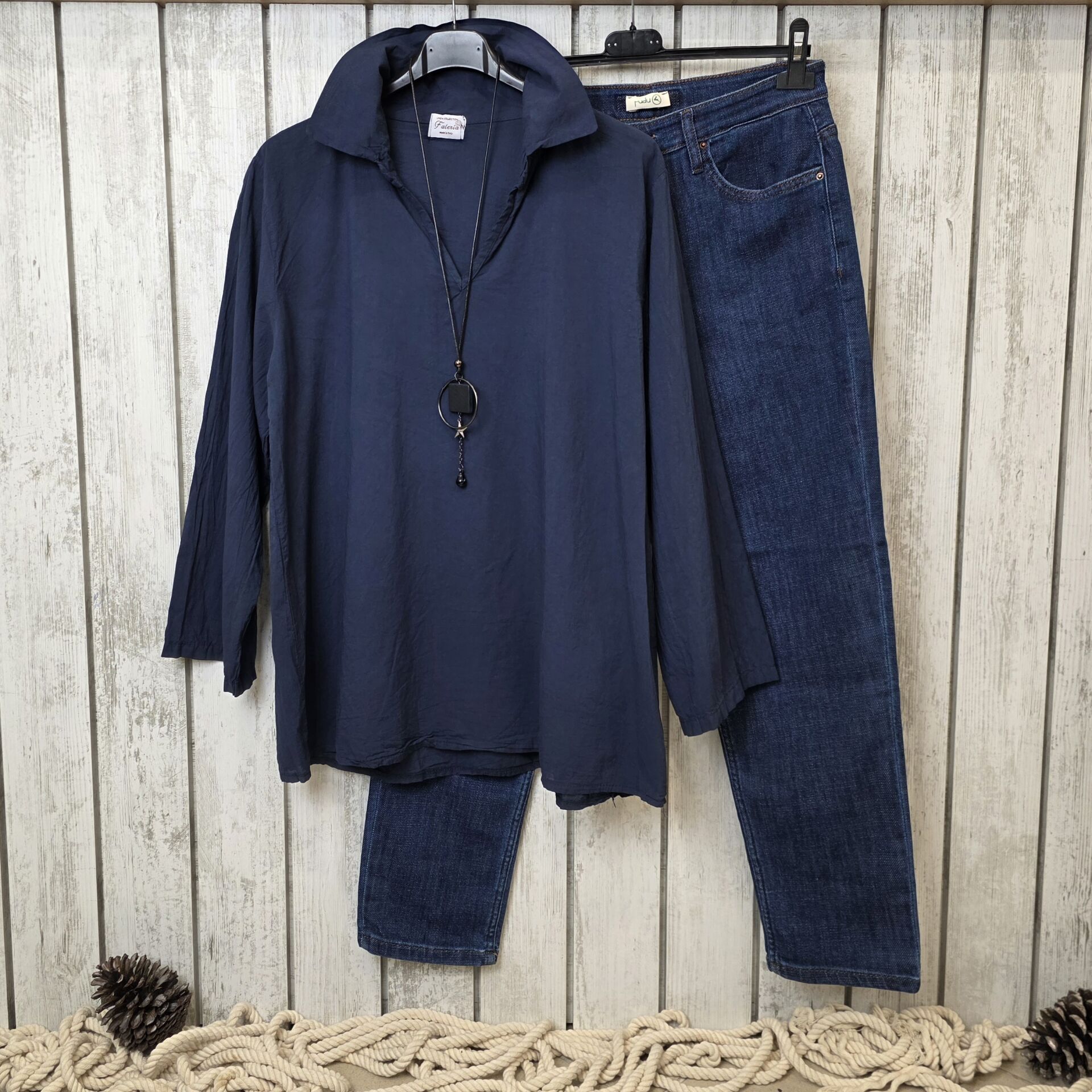 Pamuklu İnce İtalyan Gömlek Lacivert