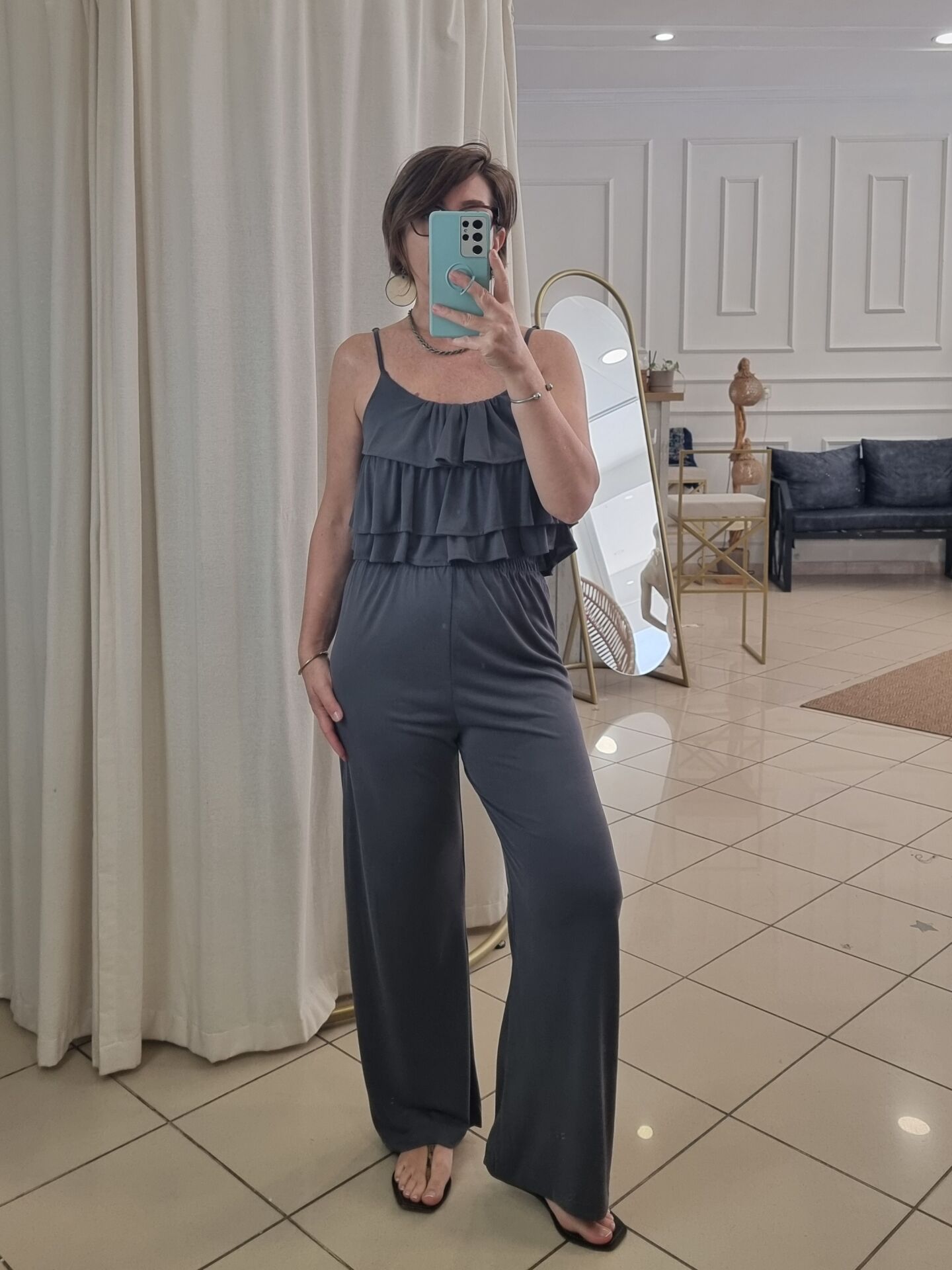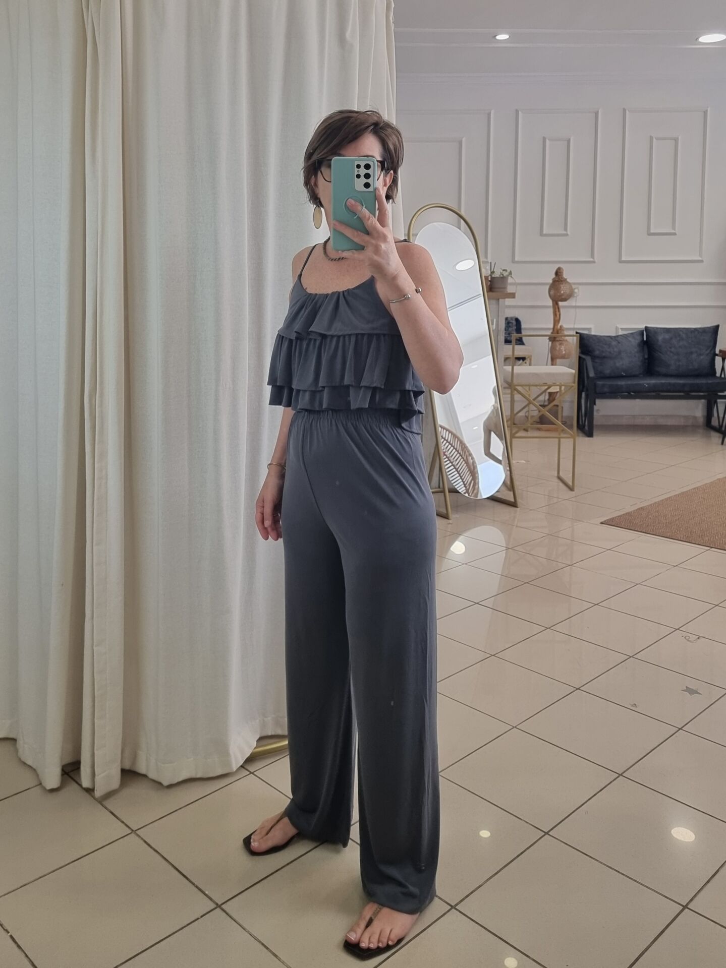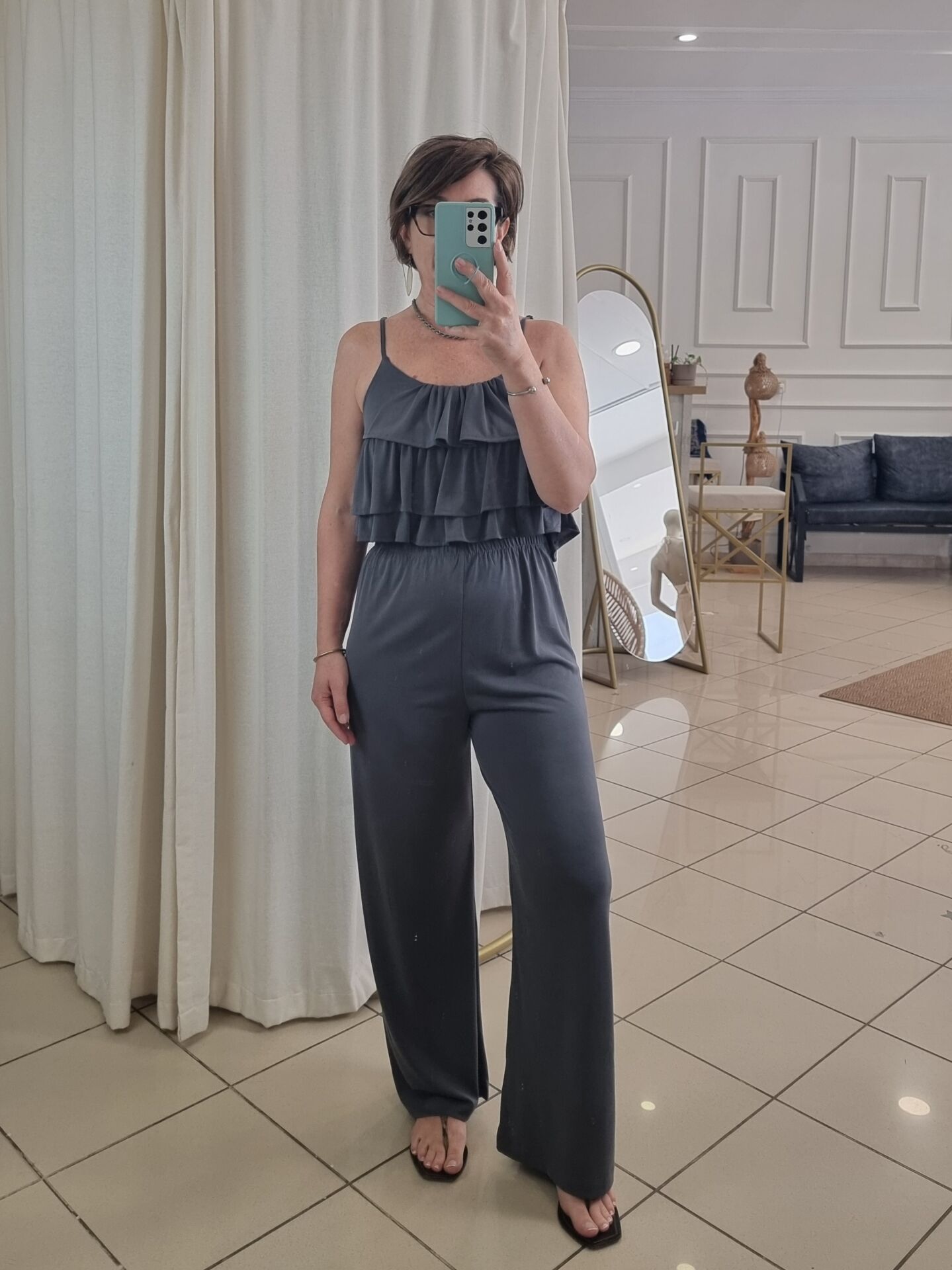 Fırfırlı Askılı Bluz Pantolon Takım Antrasit