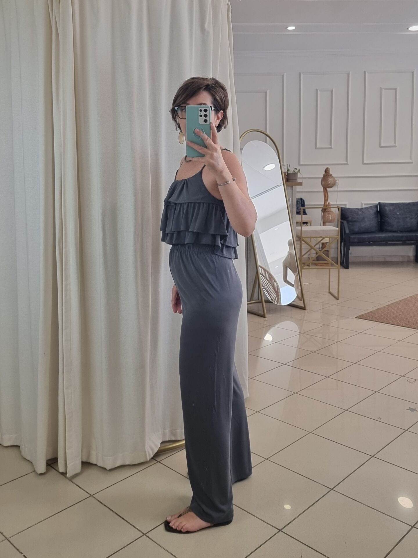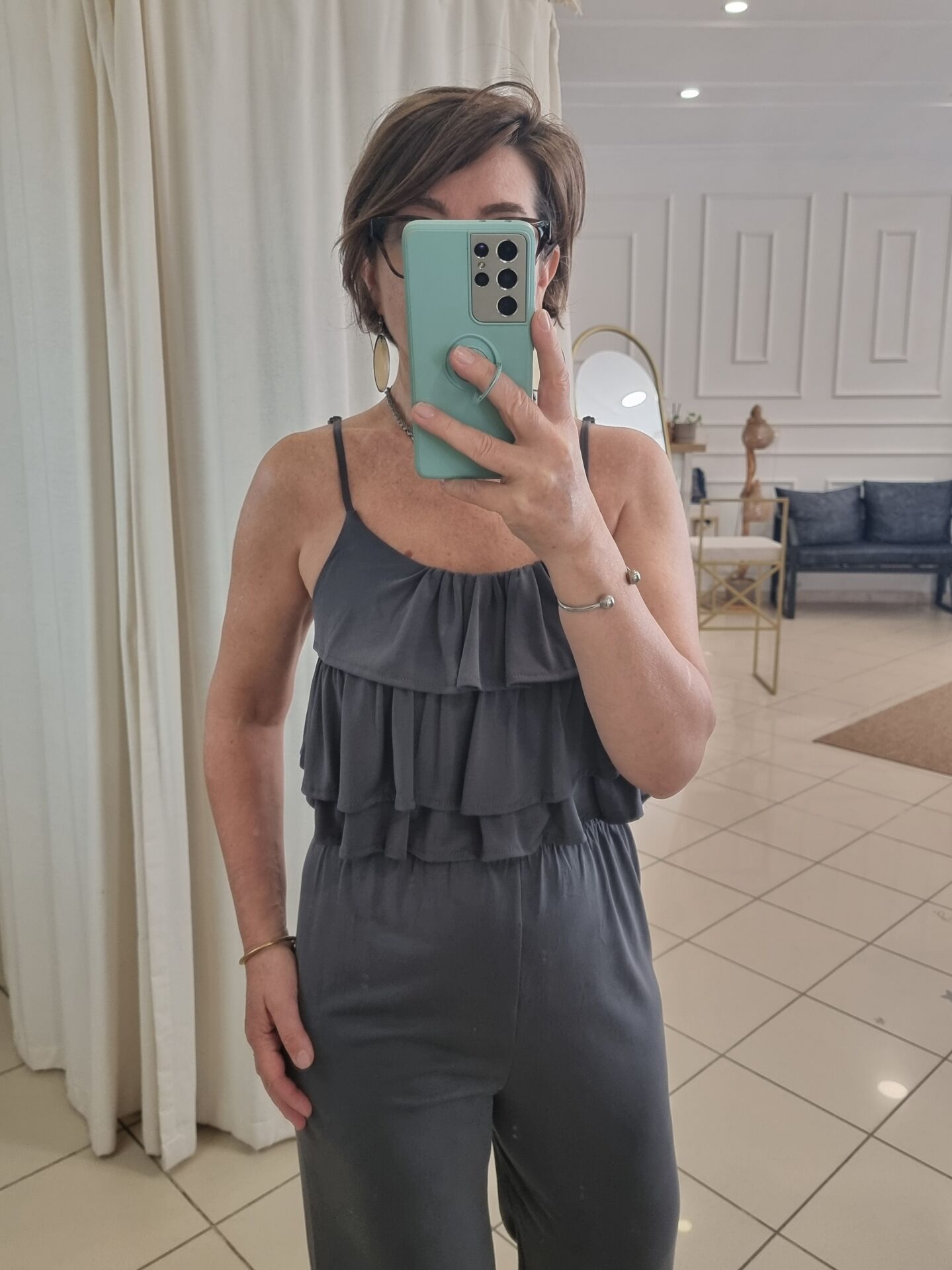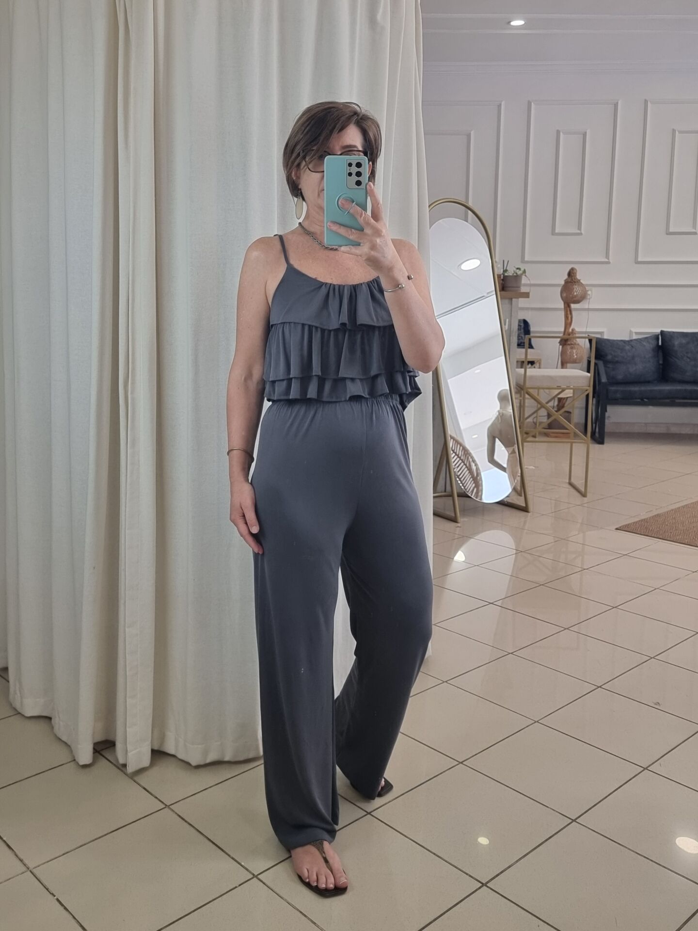 Fırfırlı Askılı Bluz Pantolon Takım Antrasit