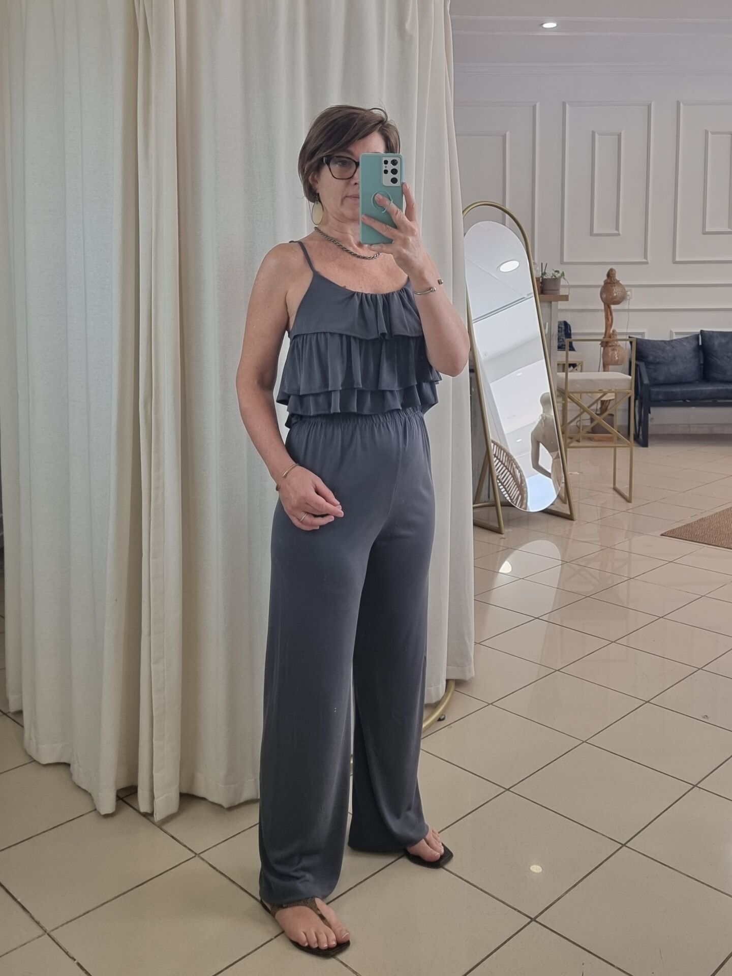 Üstü kat kat fırfırlı askılı bluz.