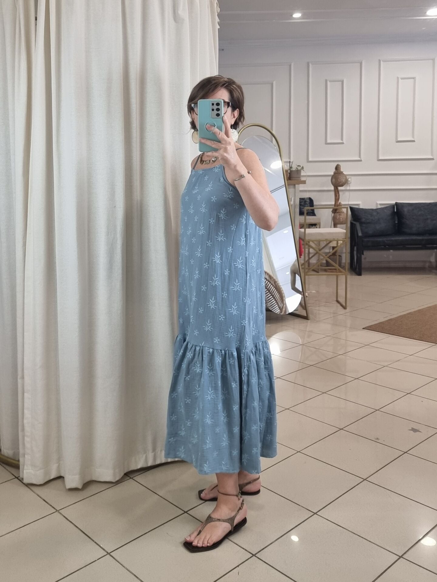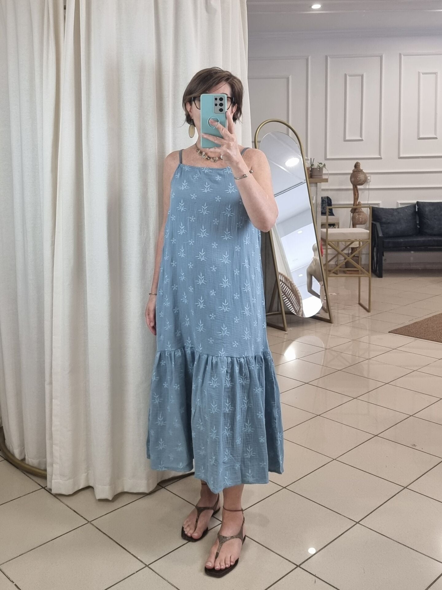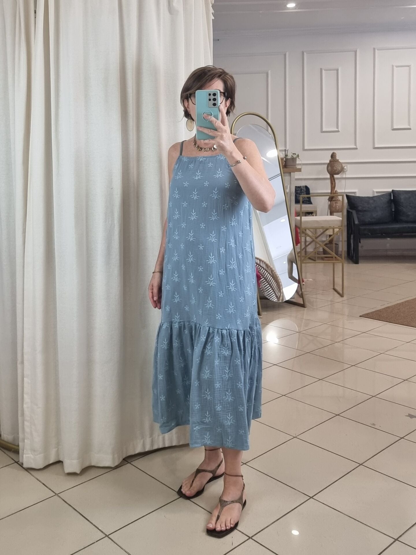 Fistolu Askılı Pamuk Elbise Bebe Mavi