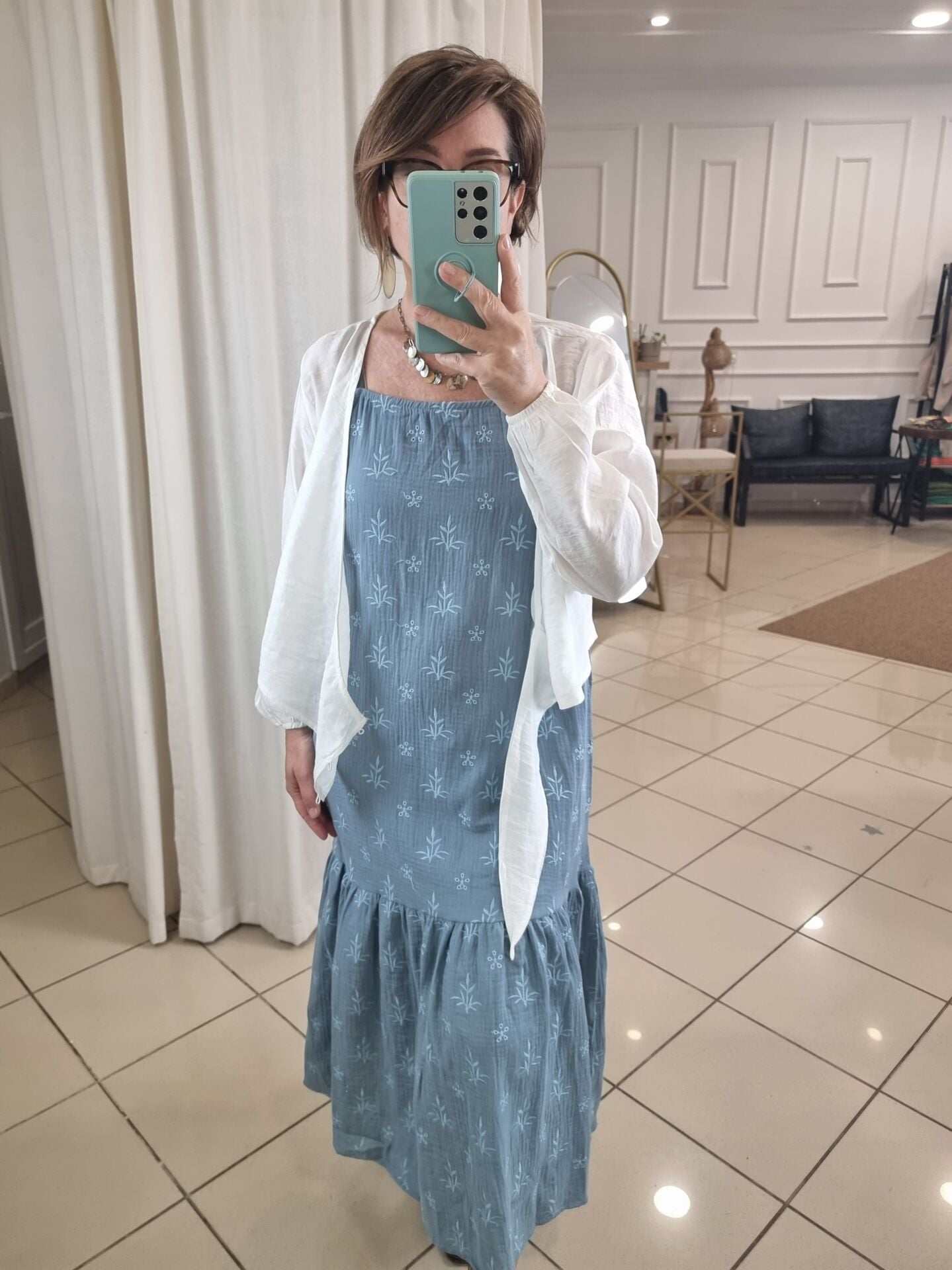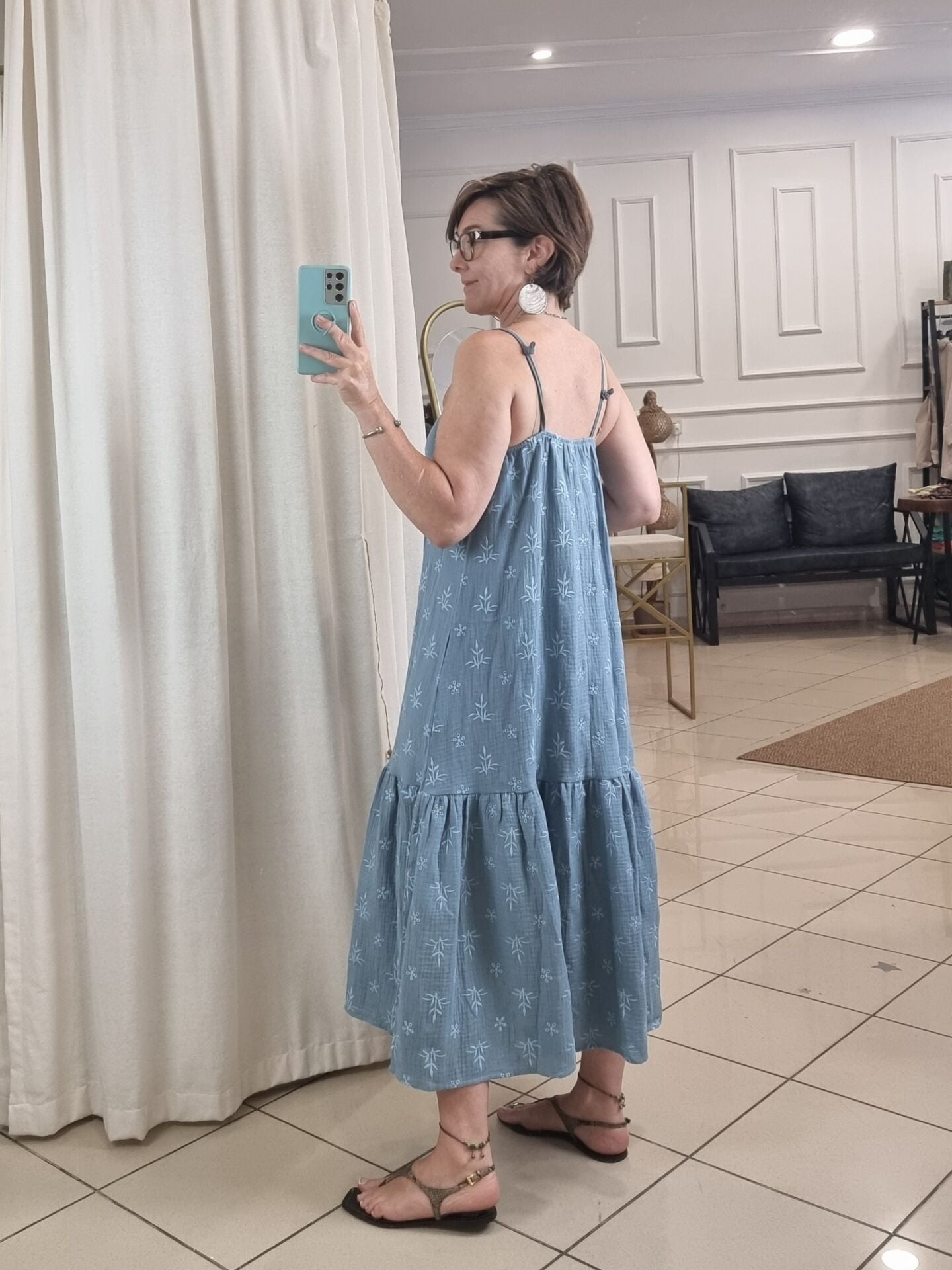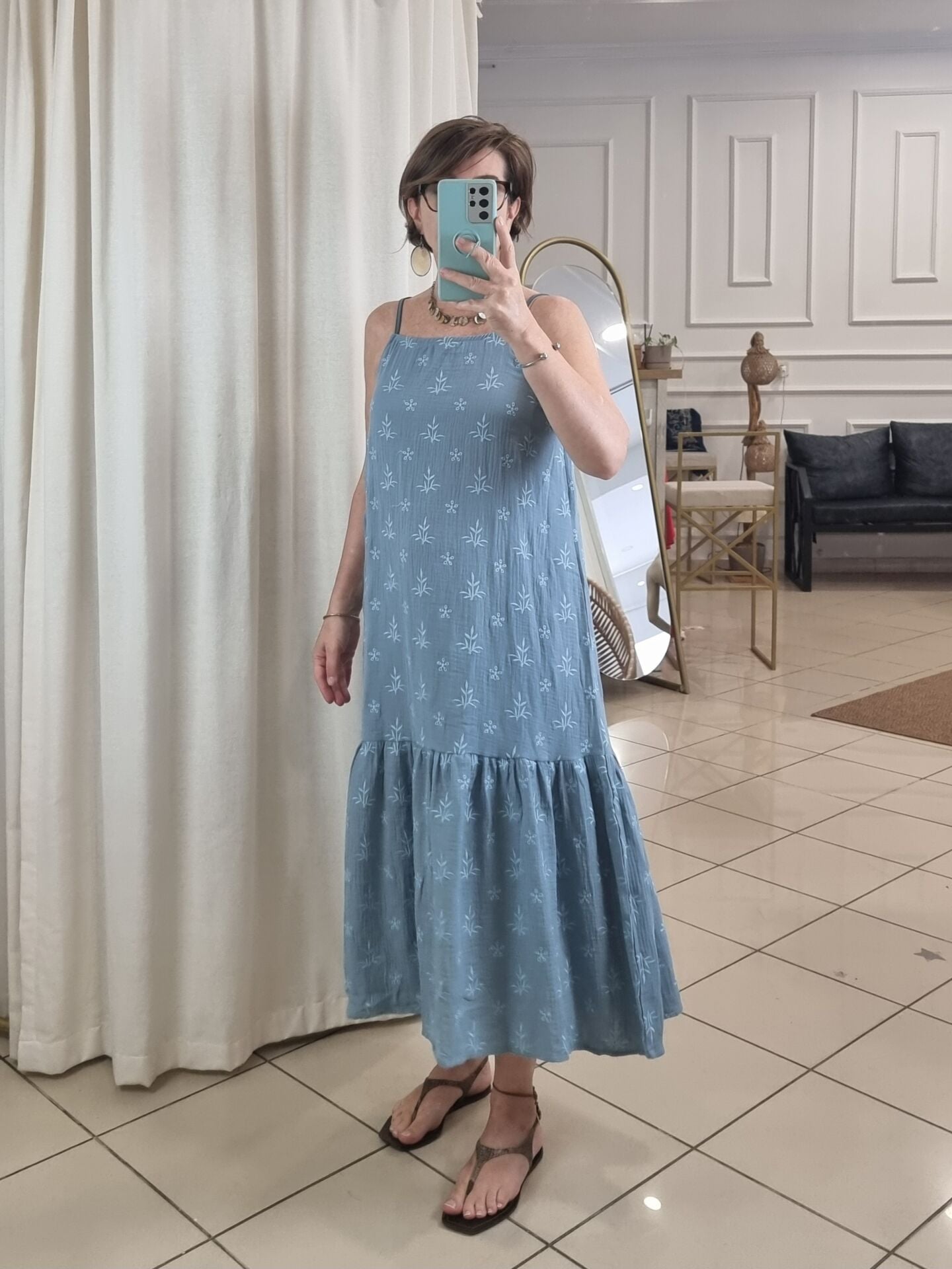 Fistolu Askılı Pamuk Elbise Bebe Mavi