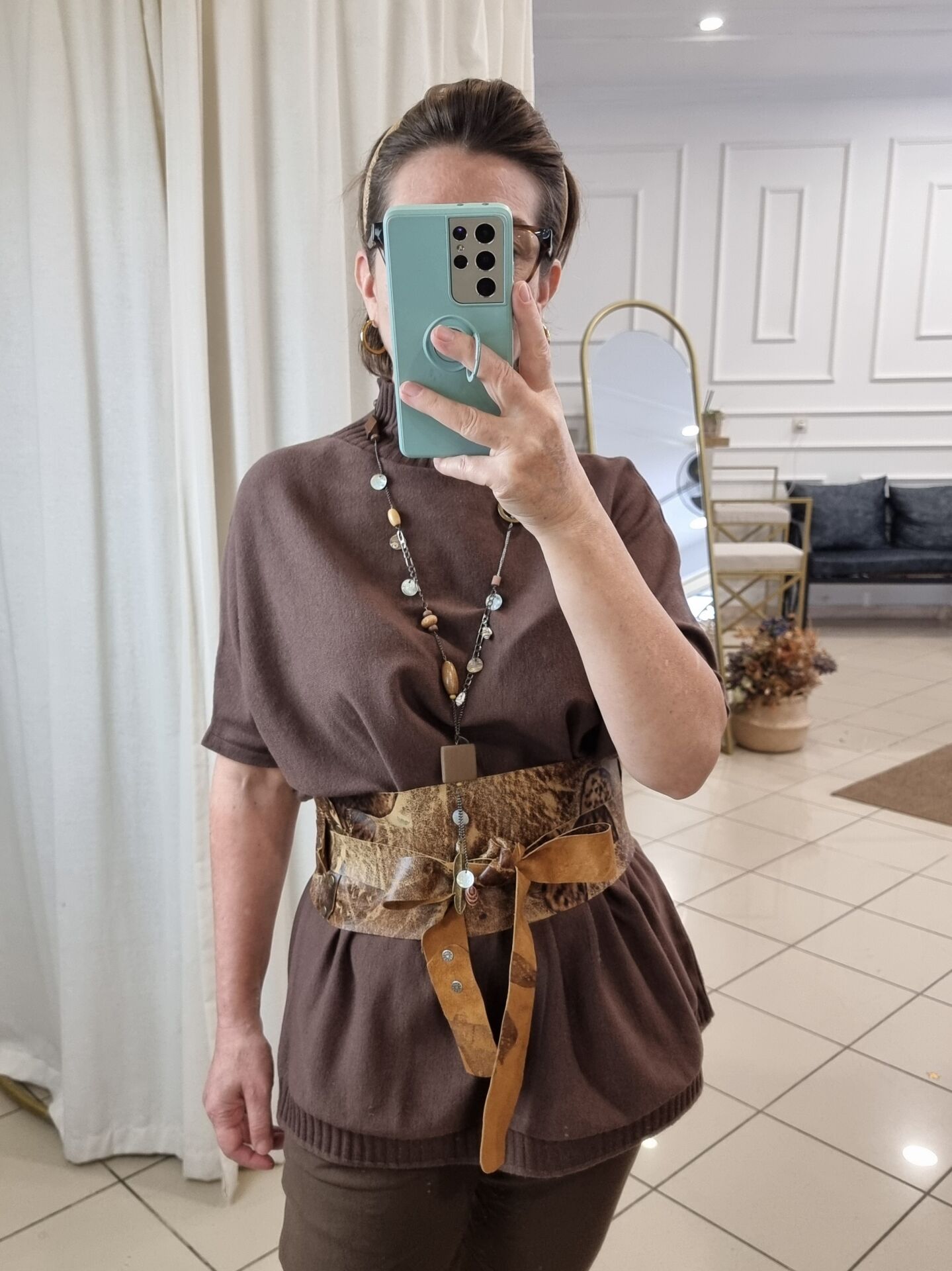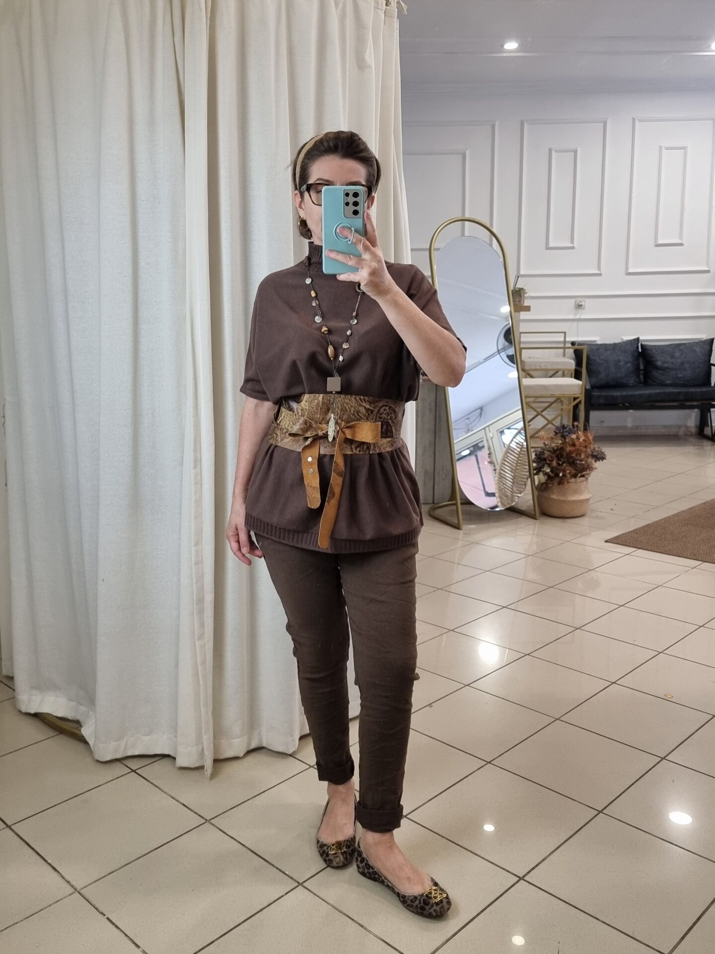 Gerçek Deri Bohemin Leopar Desenli Kalın Kemer Kahve