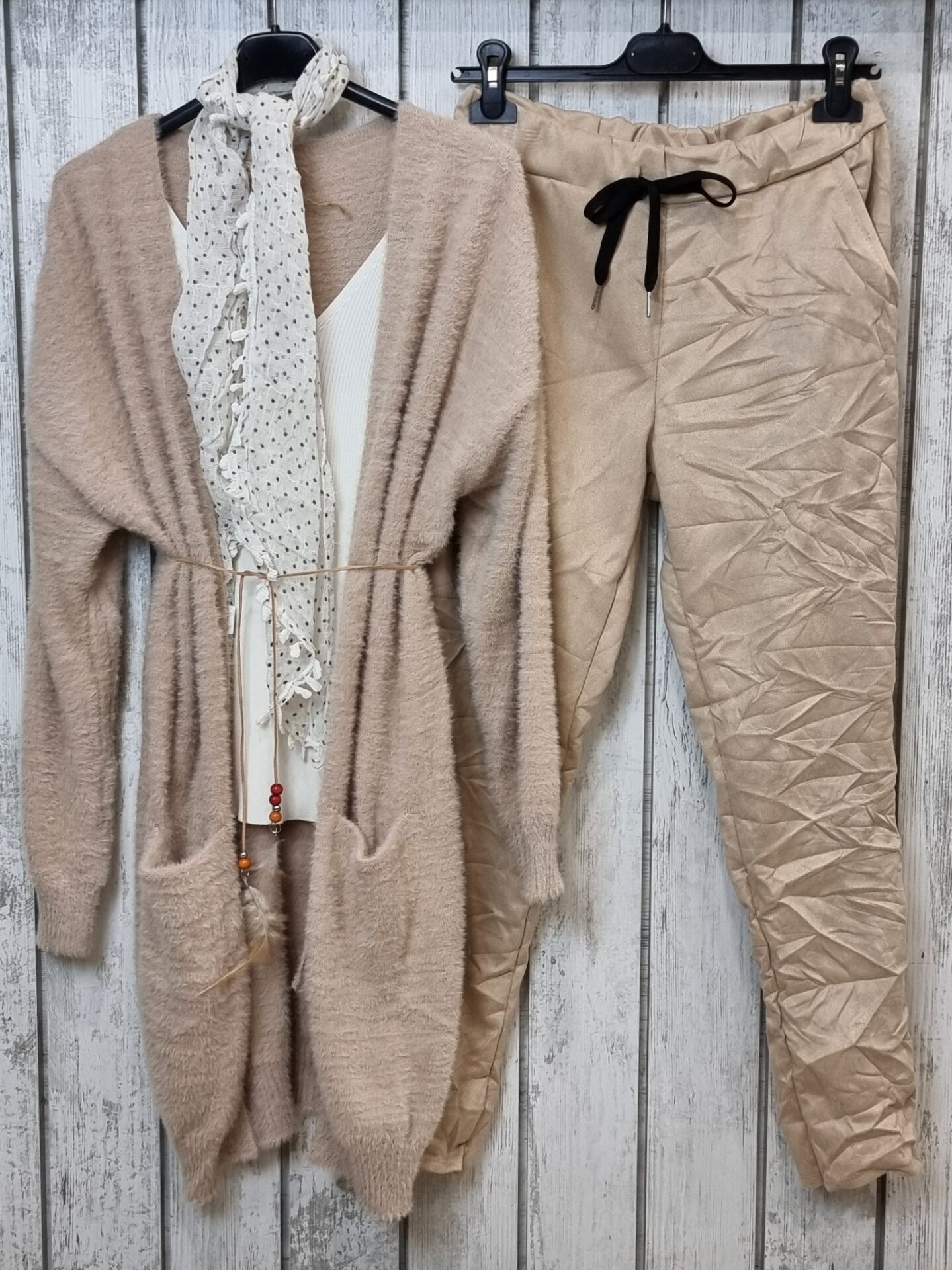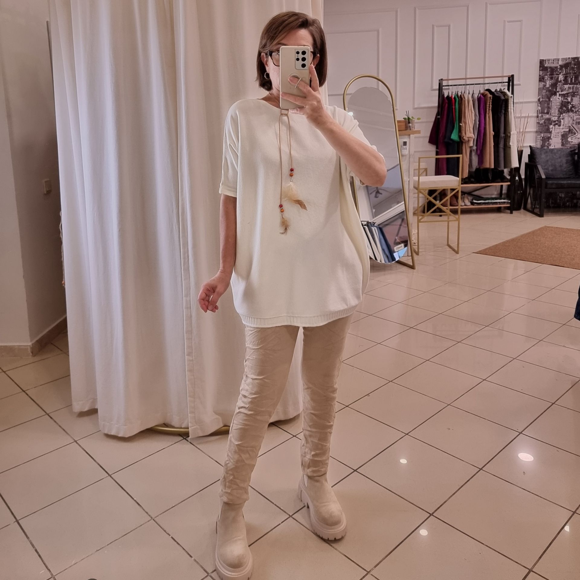 Kadınlar için tasarlanan güderi dokulu likralı İtalyan pantolon açık bej, şık ve rahat bir tasarım sunar. Esnek dokusu ve lastikli beli sayesinde 36 bedenden 44 bedene kadar uyum sağlar. Suni güderi dokusuyla zarif bir görünüm kazandırırken, cep detayları ve esnek yapısıyla konforlu bir kullanım sunar.
