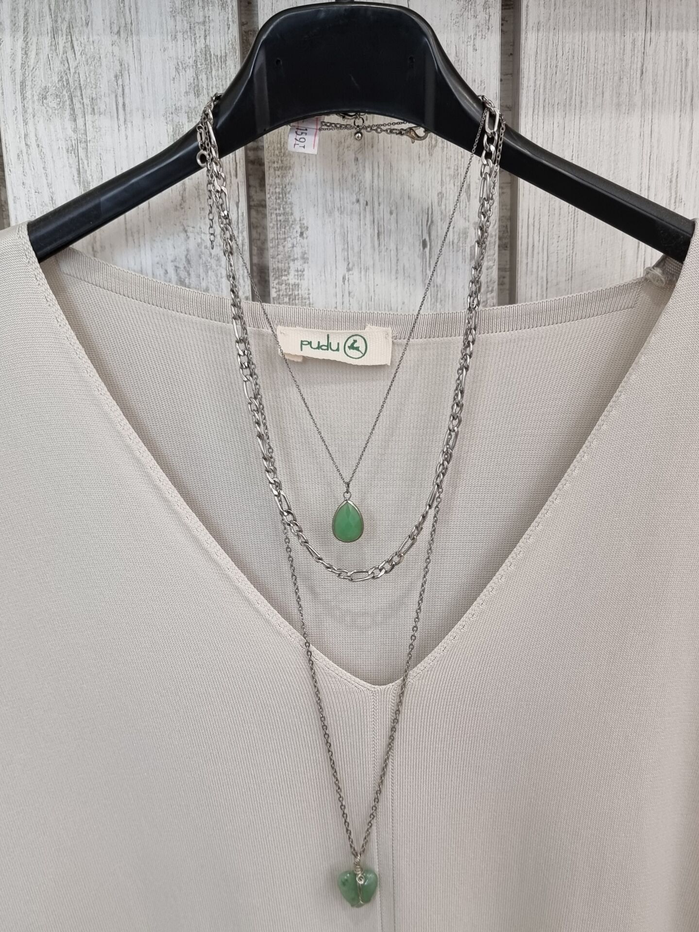 Gümüş renk zincirli kolyemizi tek veya üçlü olarak kulanabilirsiniz.